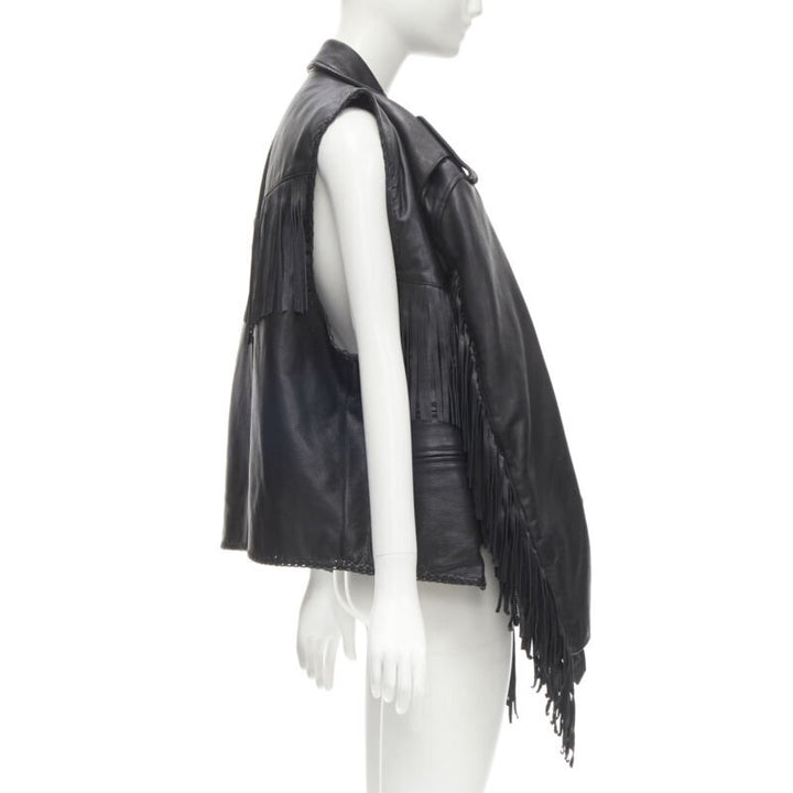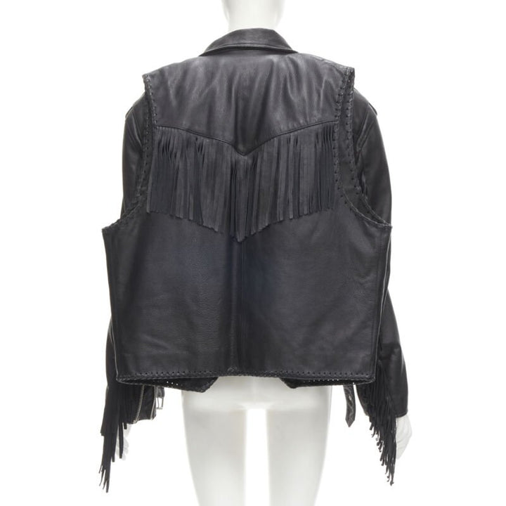 BALENCIAGA 2017 Runway 3-way draped hanging fringed biker jacket FR36 S