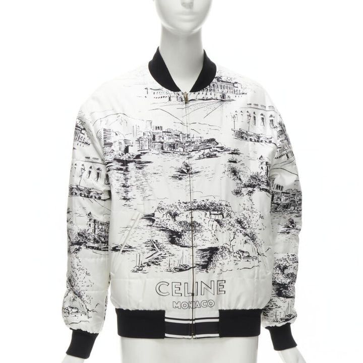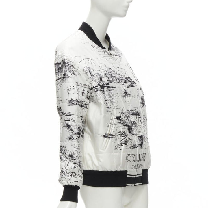 CELINE Hedi Slimane Runway Casaque white silk foulard reversible bomber FR34