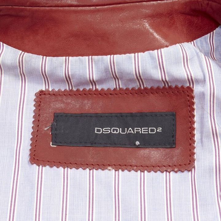 DSQUARED2 Y2K distressed red leather hook bar cropped vest S