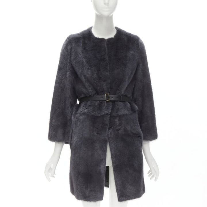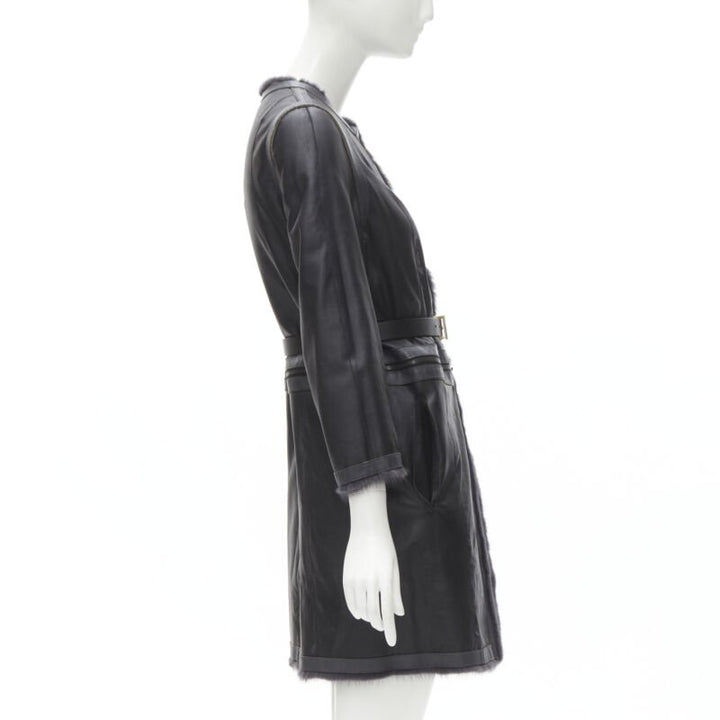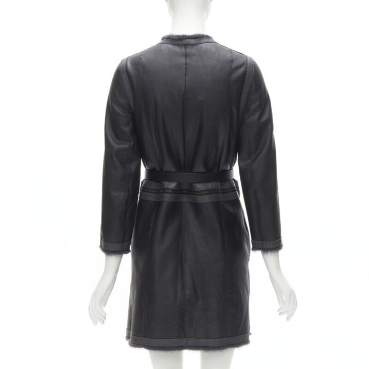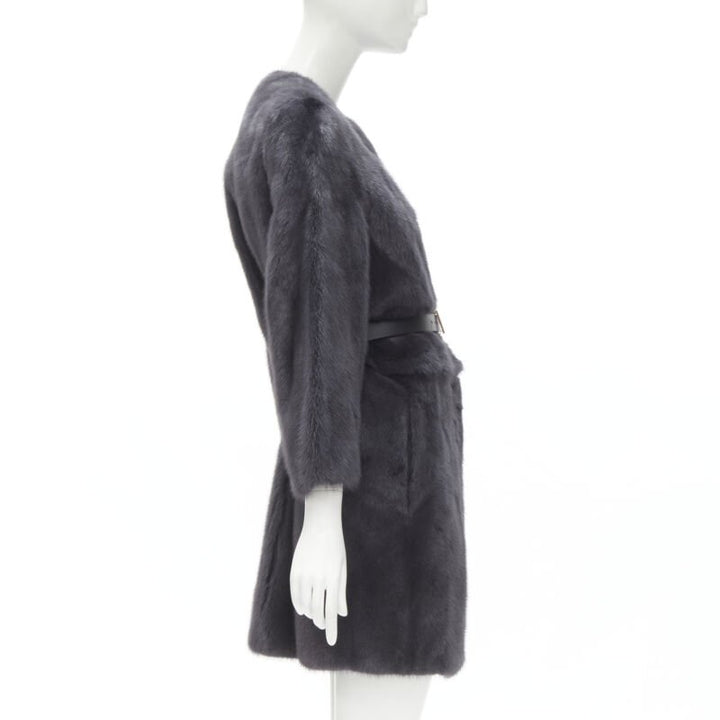 FENDI grey black fur leather 4-way reversible zip belted coat jacket IT38