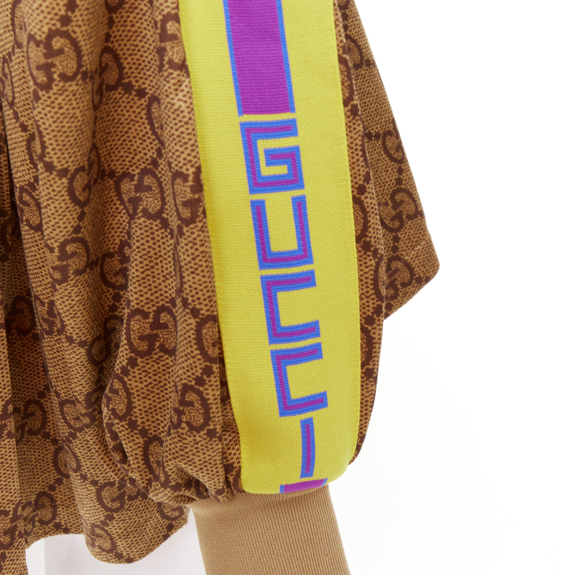 GUCCI 2019 Michele Runway GG Technical Pleats brown pink GG monogram flared track jacket XS