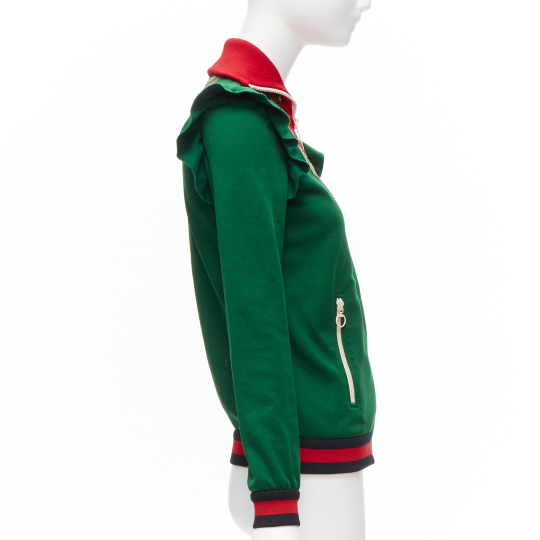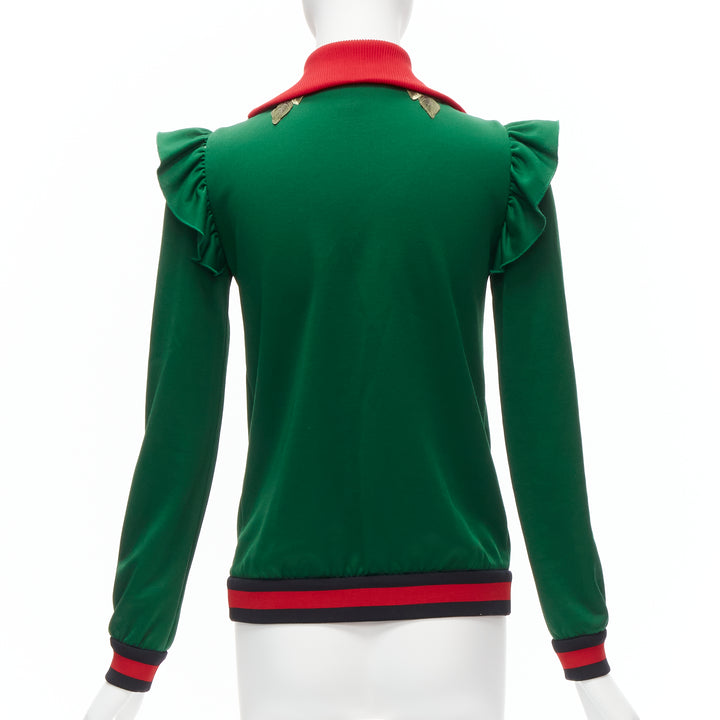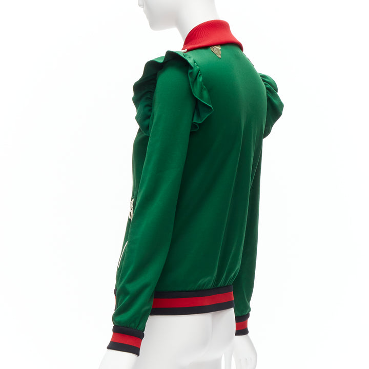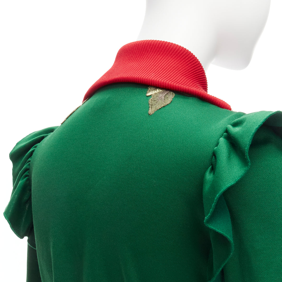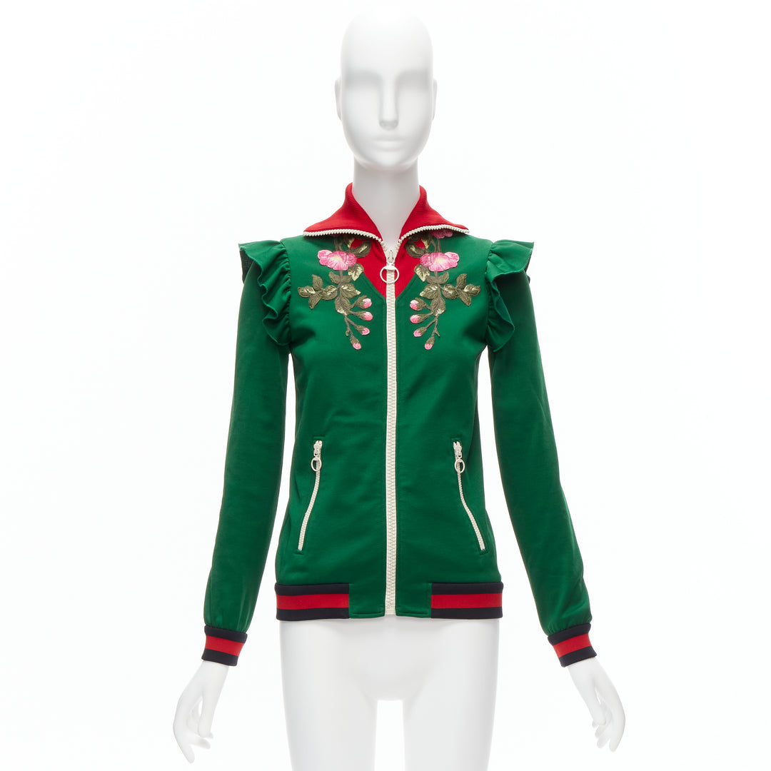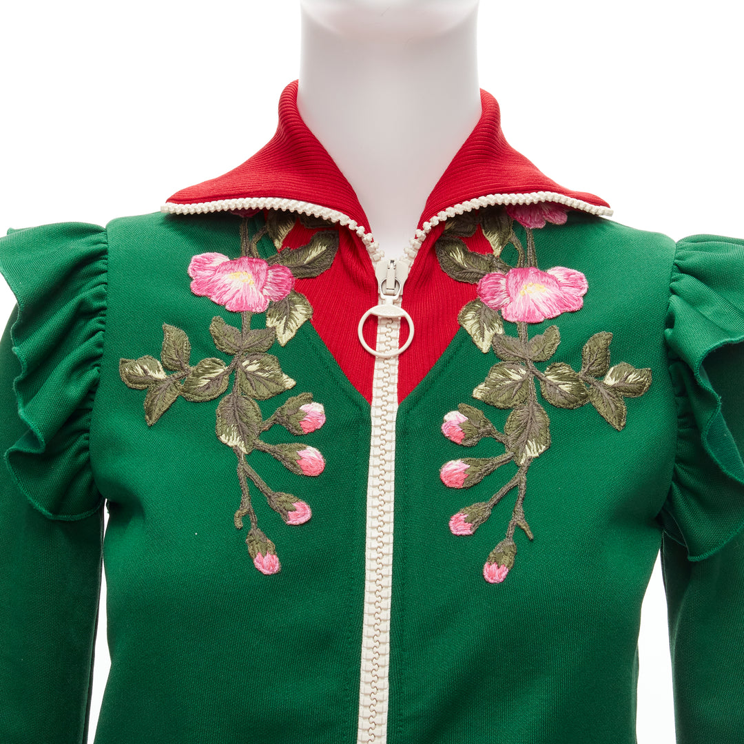 GUCCI Alessandro Michele green pink floral applique ruffled track jacket XS