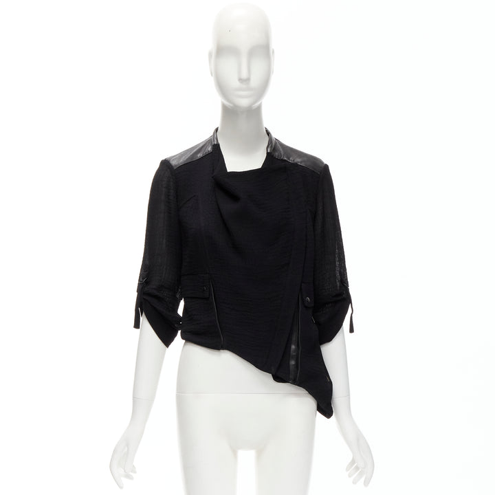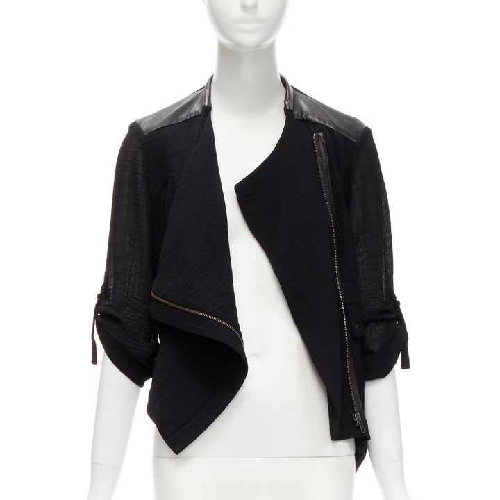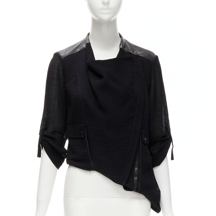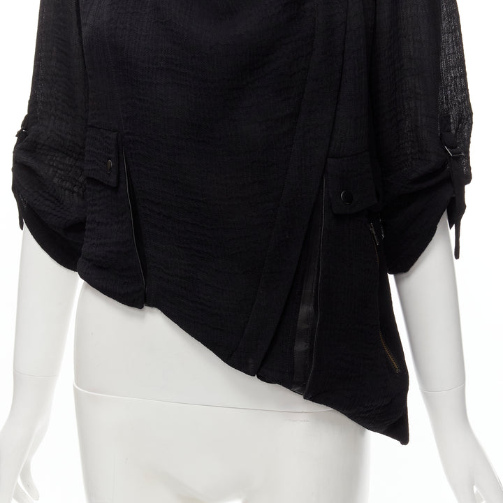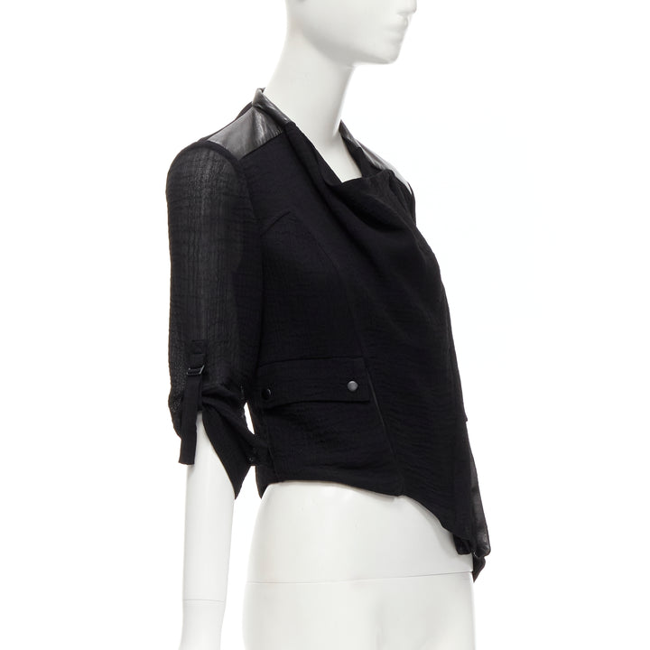 HELMUT LANG black sheep leather detail bias drape biker jacket S