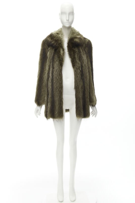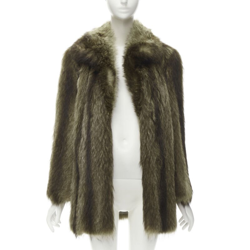 HURTIQ brown fur long sleeve collar hook eye jacket coat
