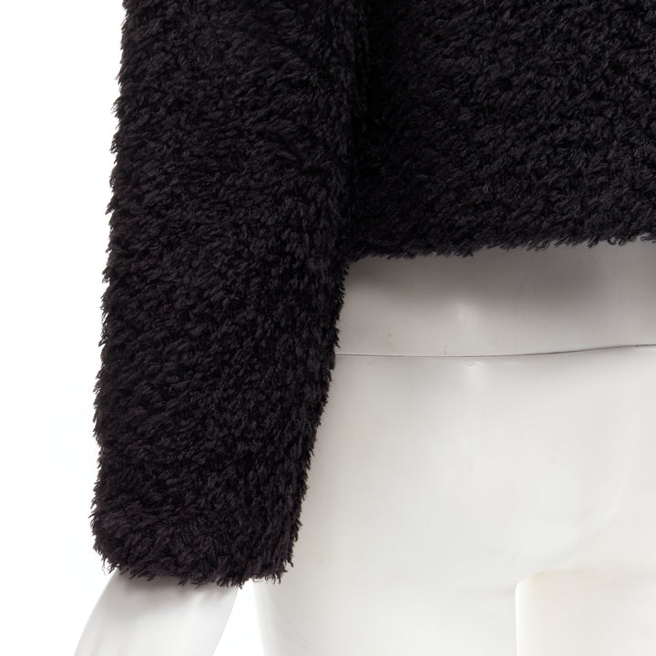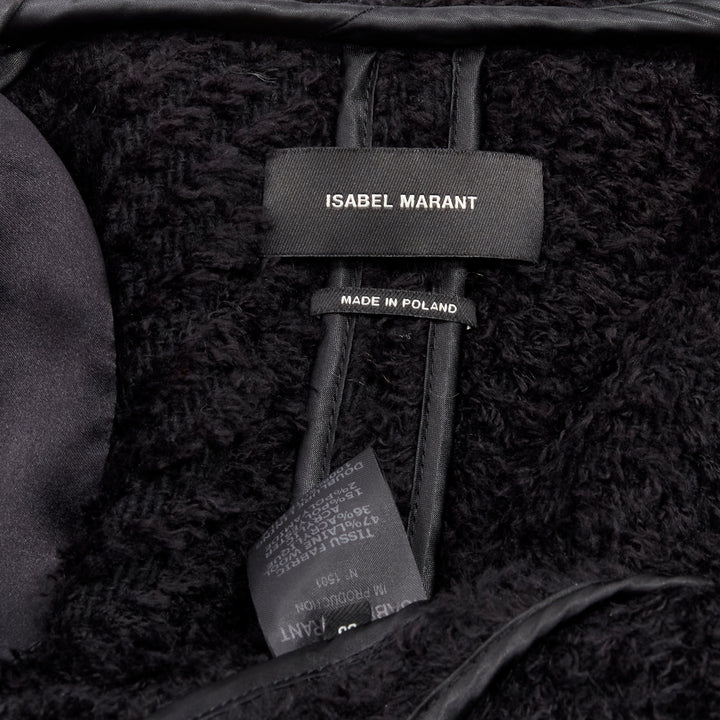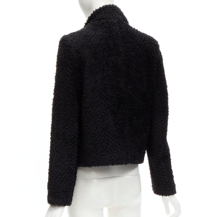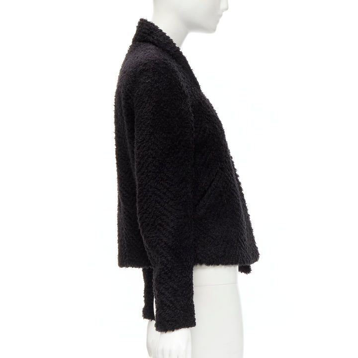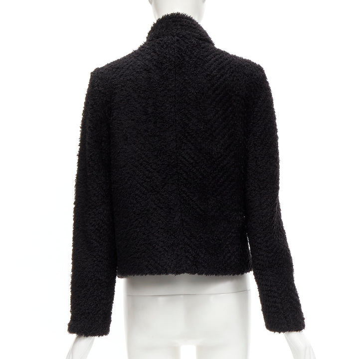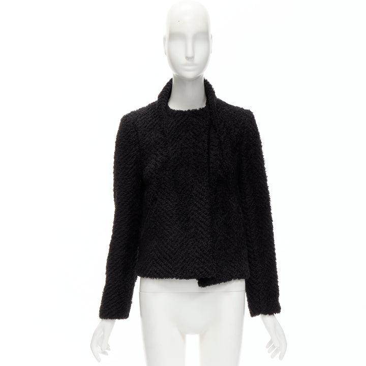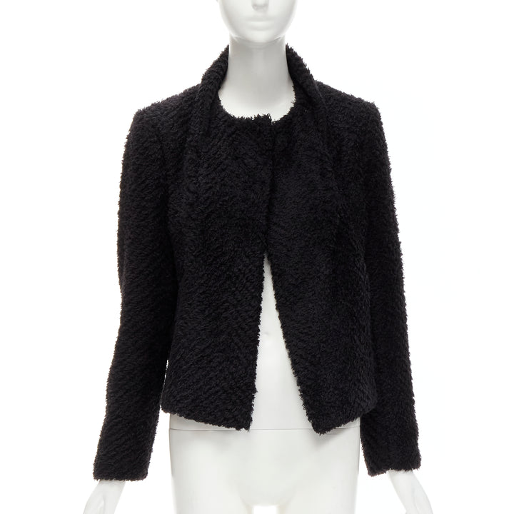 ISABEL MARANT black wool blend fluffy stand collar minimal jacket FR36 S