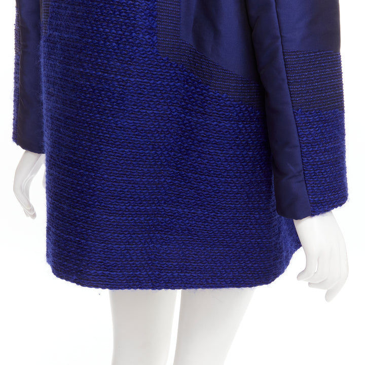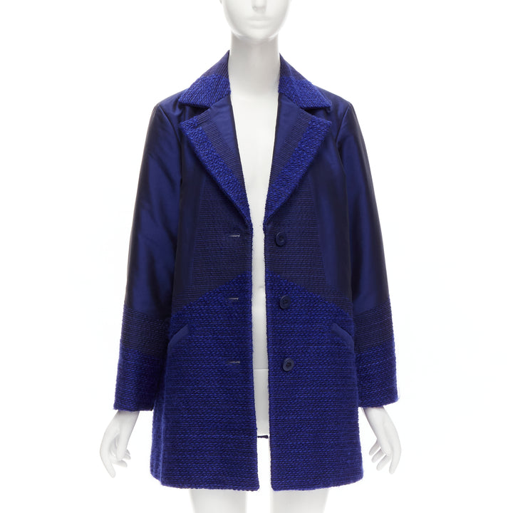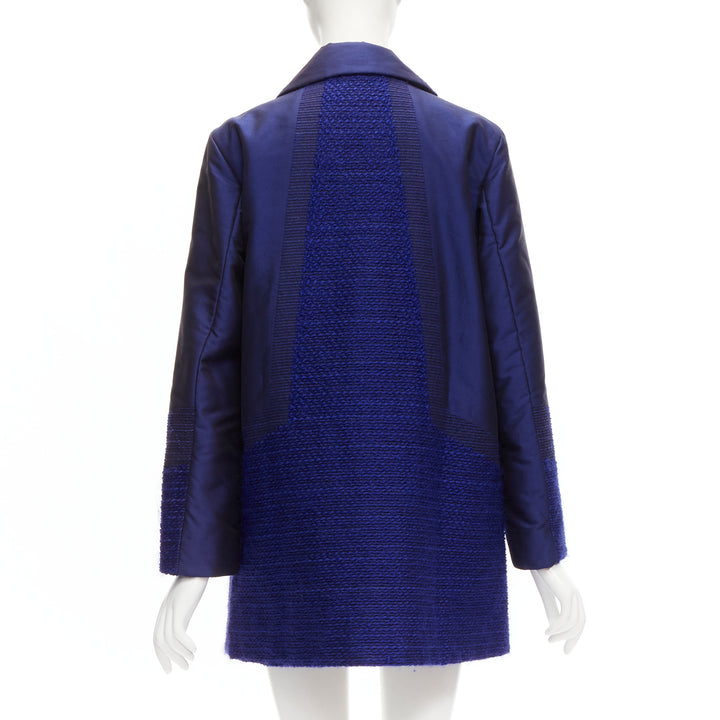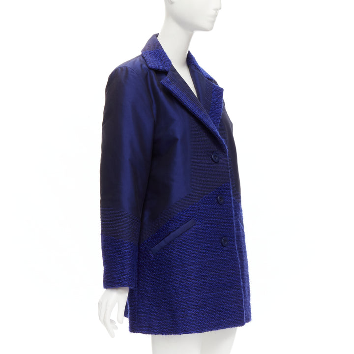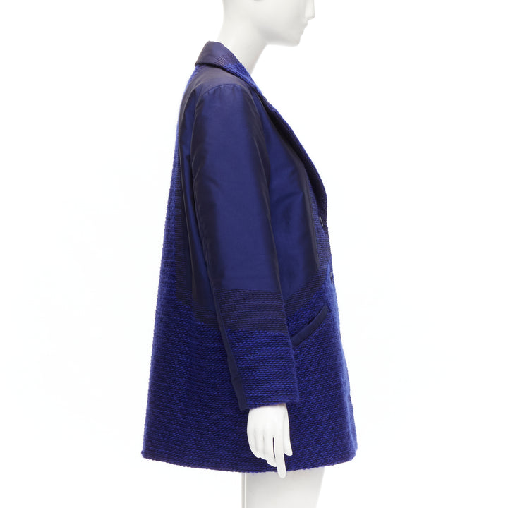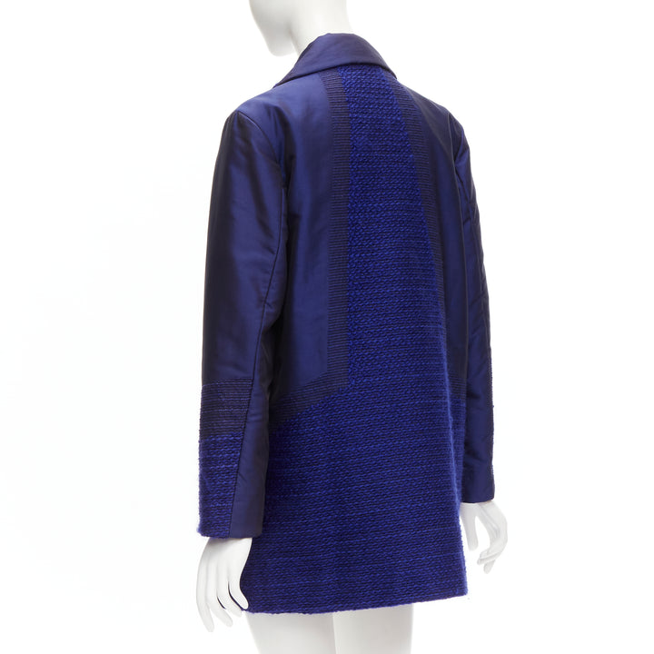ISSEY MIYAKE cobalt blue taffeta tweed multi texture cocoon jacket coat M