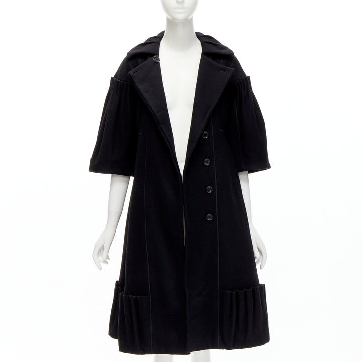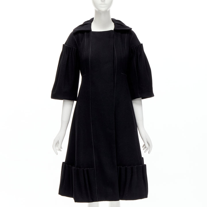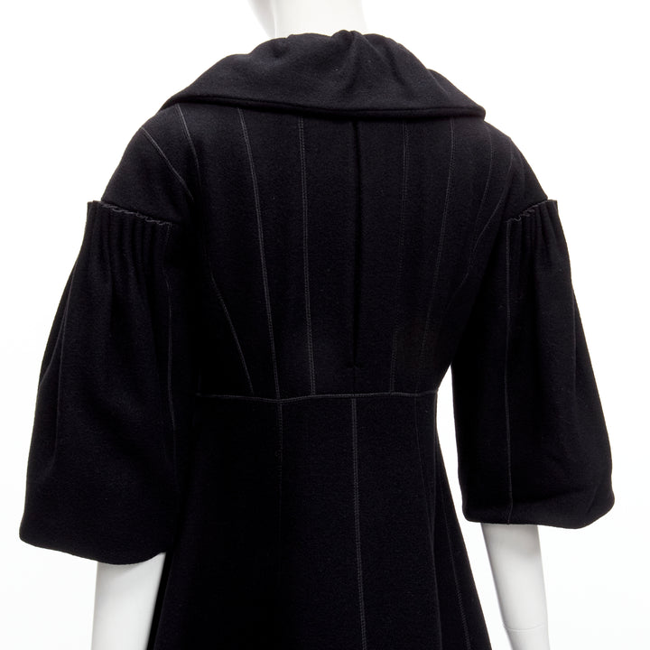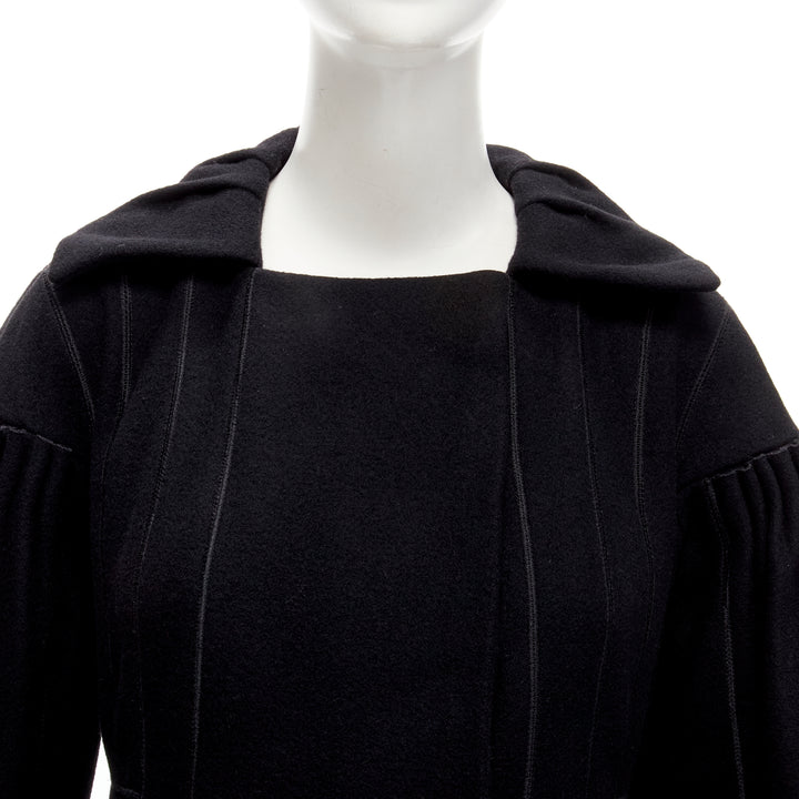 LOUIS VUITTON 2007 Runway black wool pleated Victorian coat dress FR34 XS