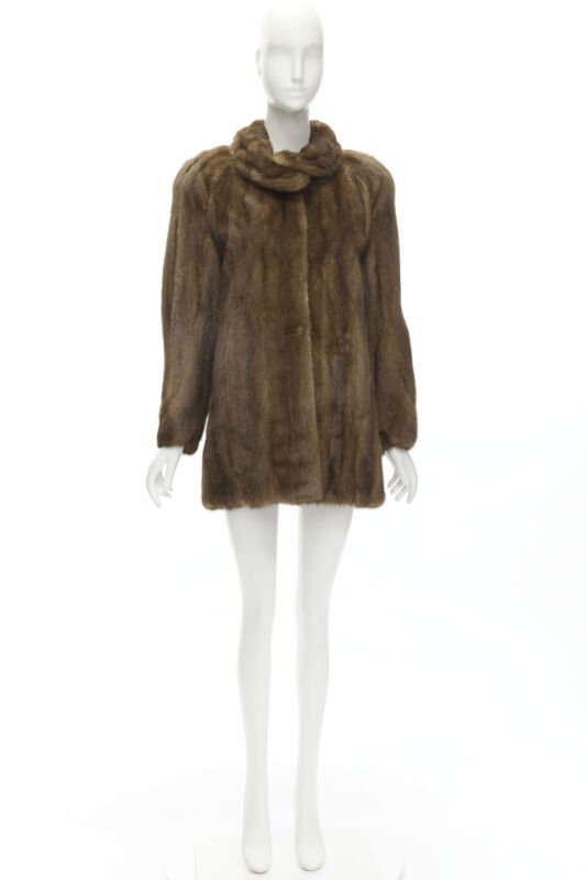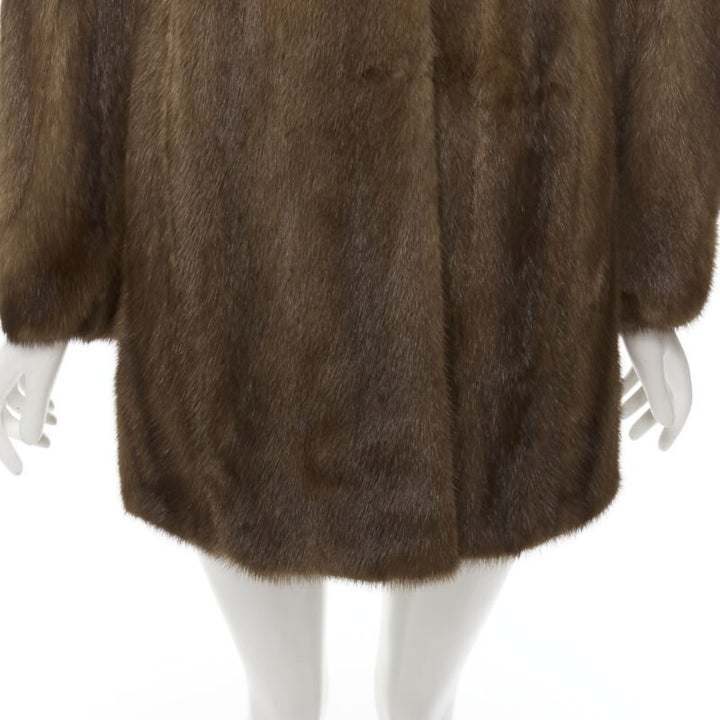 M JACQUES brown fur peter pan collar long sleeve hook eye coat jacket
