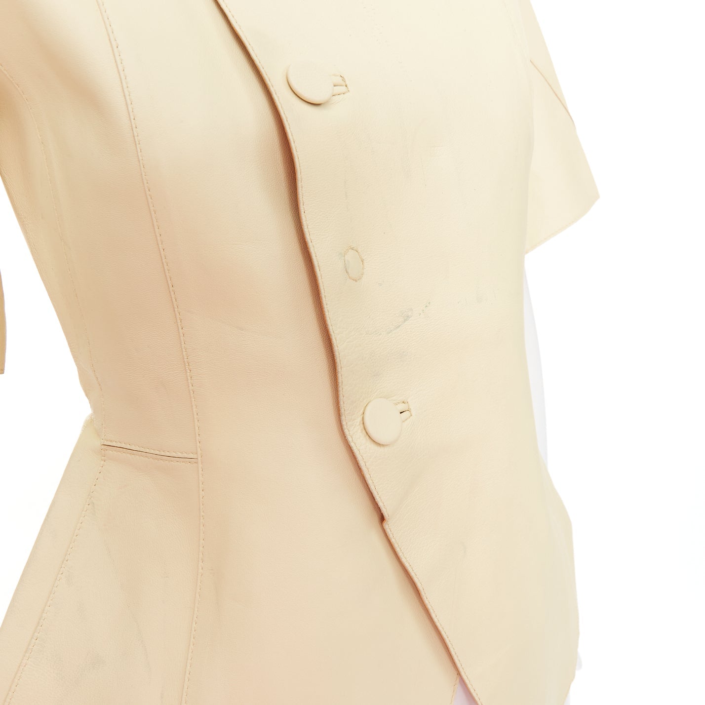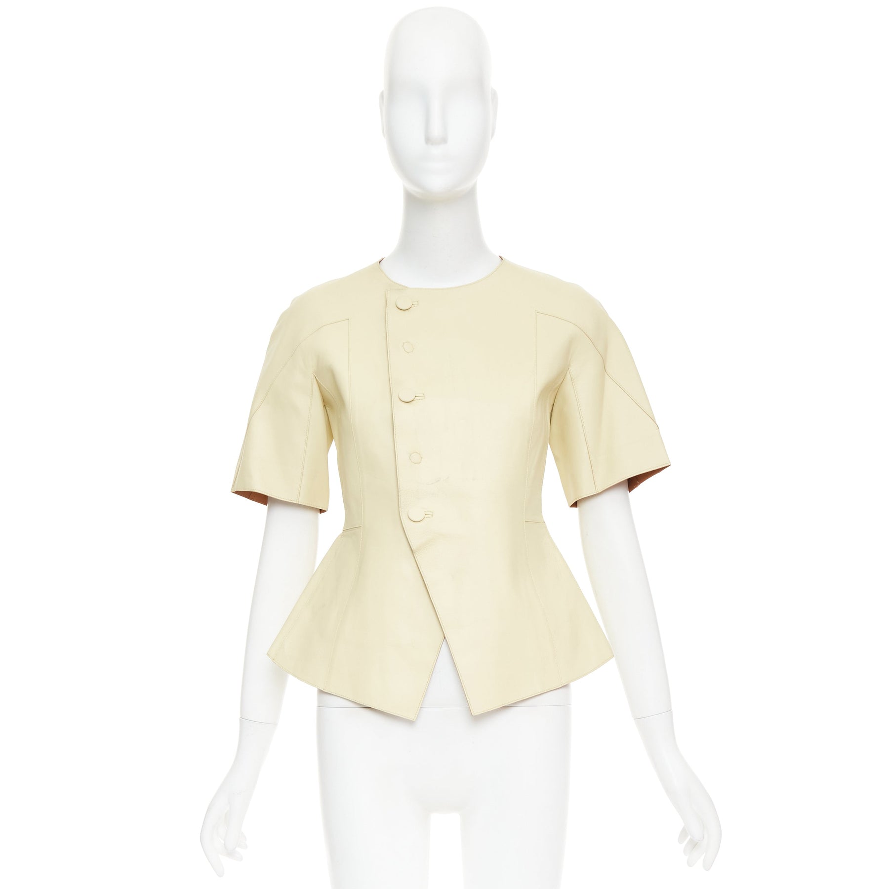 MARNI buttery yellow lamb leather round sleeve peplum asymmetrical jacket IT38 XS