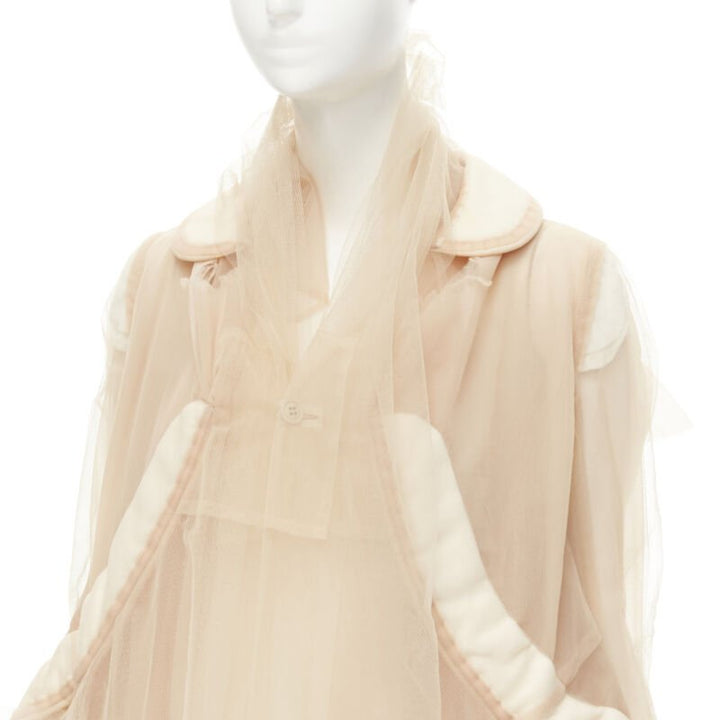 rare COMME DES GARCONS 2009 Runway nude inside out sheer tulle long jacket XS