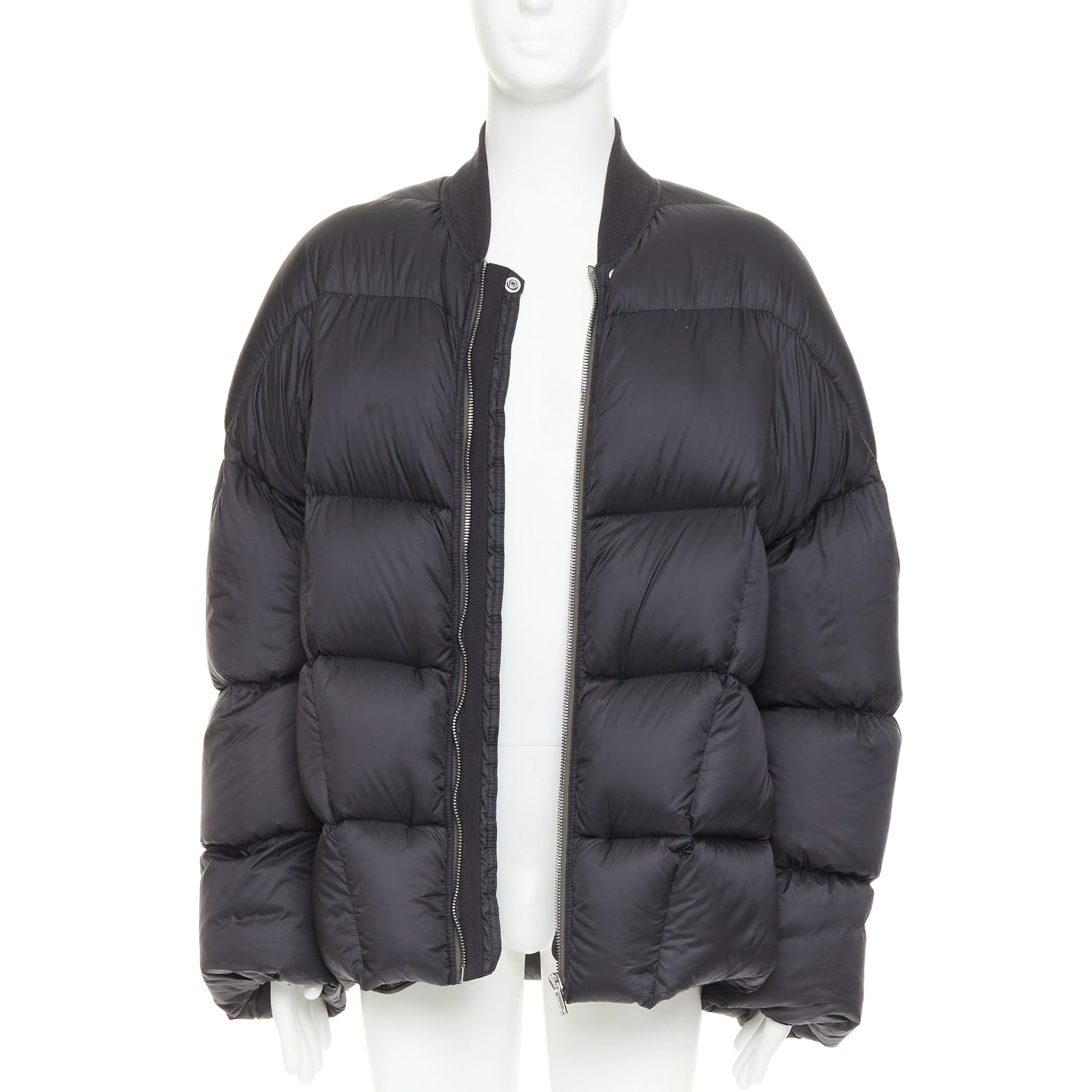 RICK OWENS 2022 Strobe black goose down oversized cocoon boxy puffer bomber IT48 M