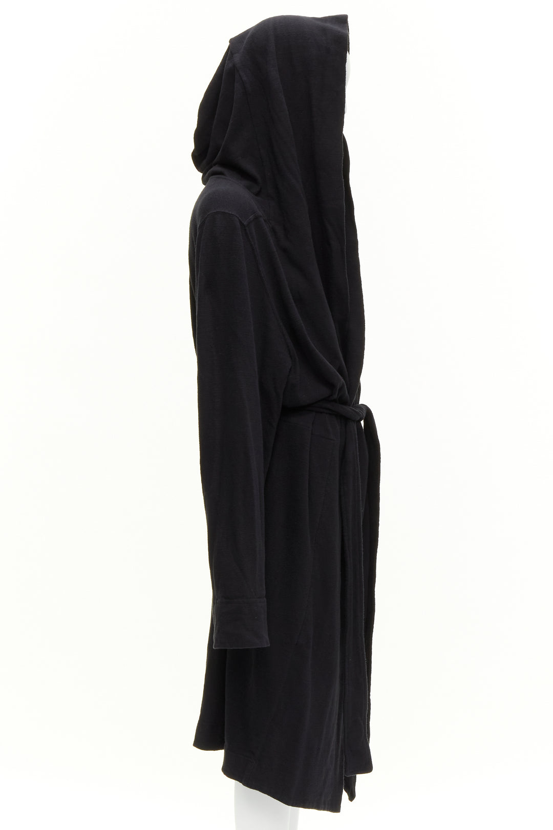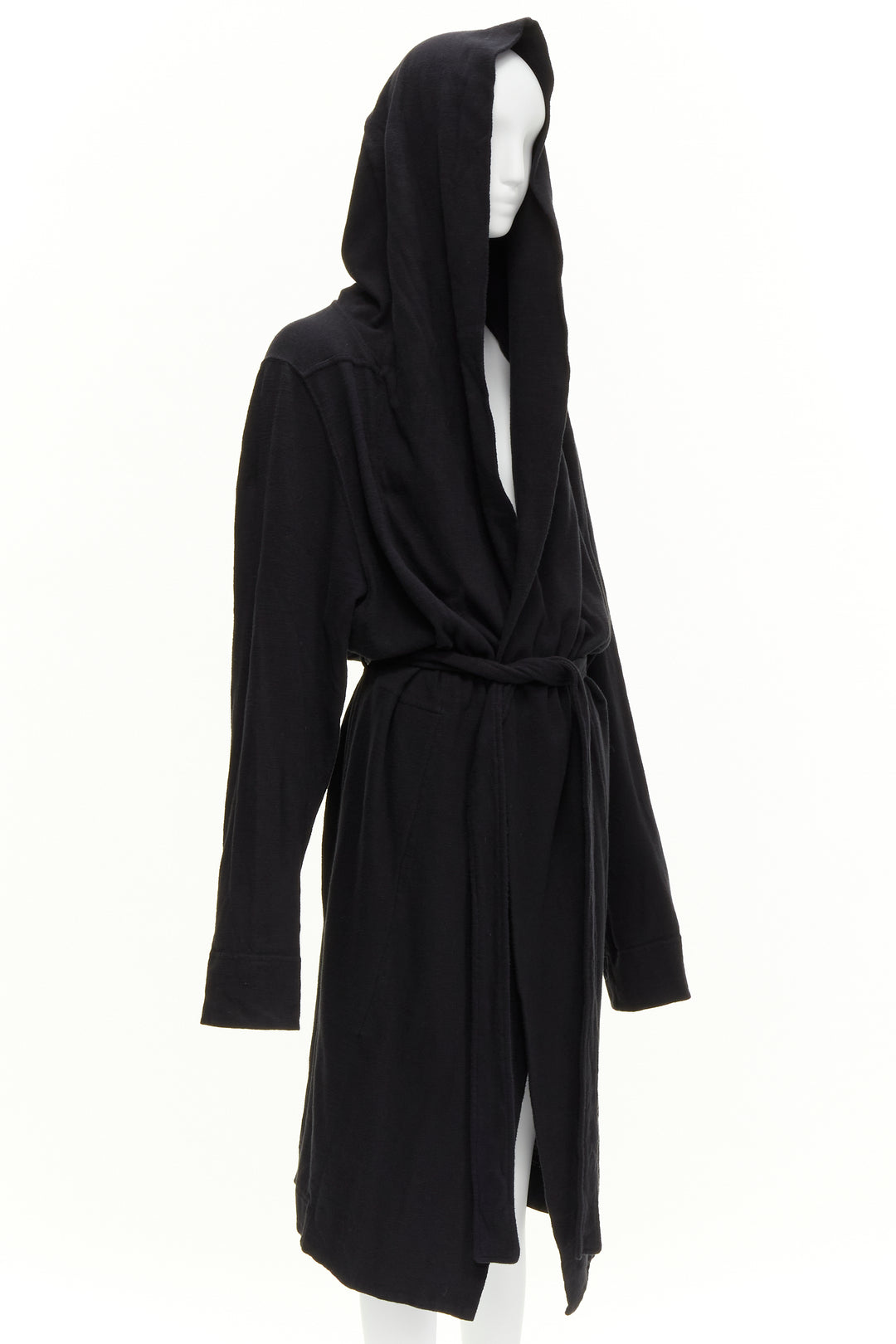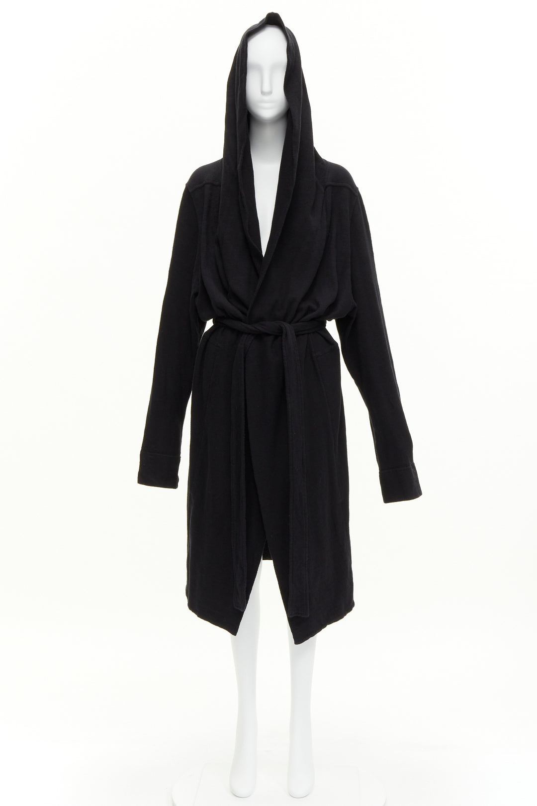 RICK OWENS DRKSHDW black cotton thick jersey hooded belted robe jacket S