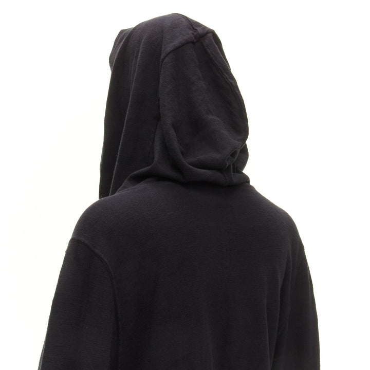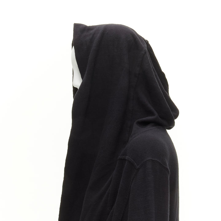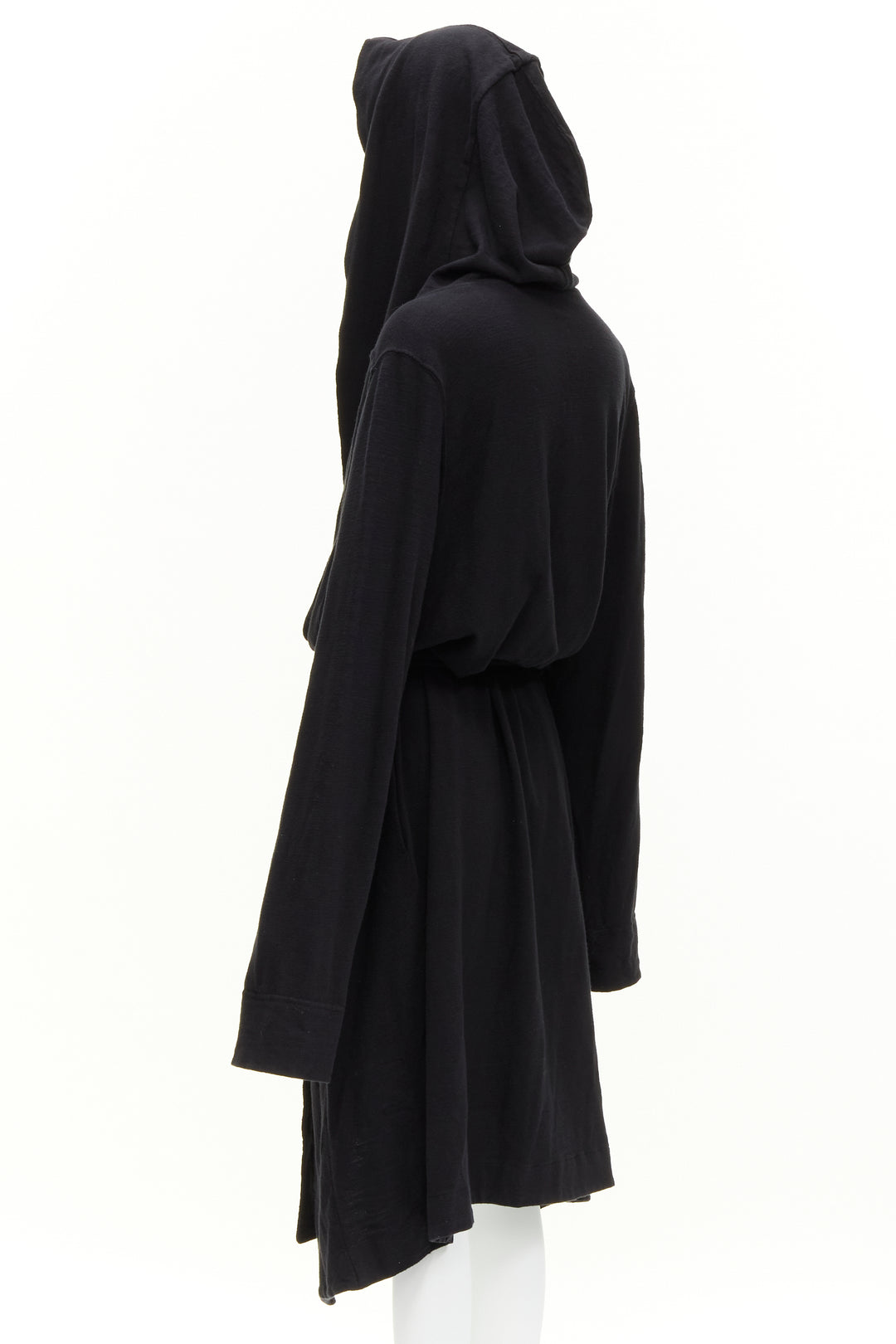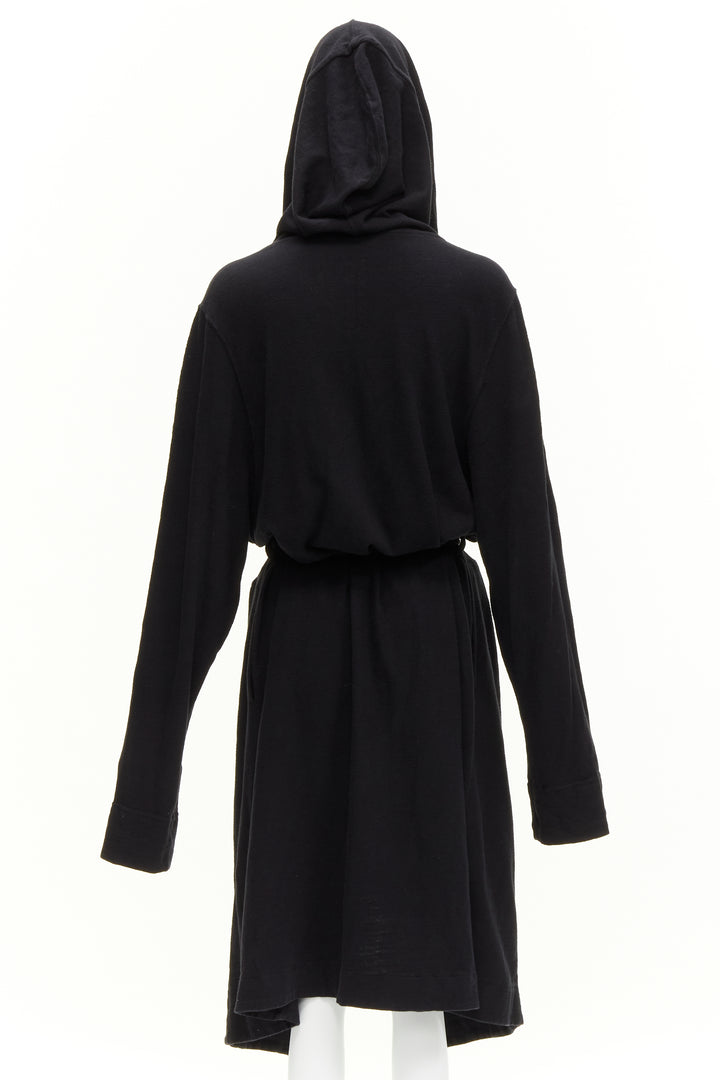 RICK OWENS DRKSHDW black cotton thick jersey hooded belted robe jacket S