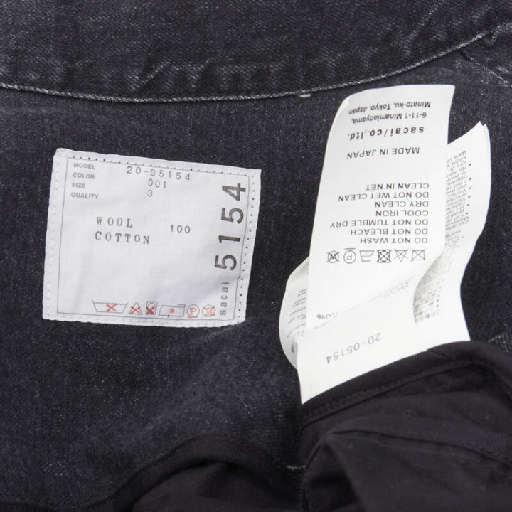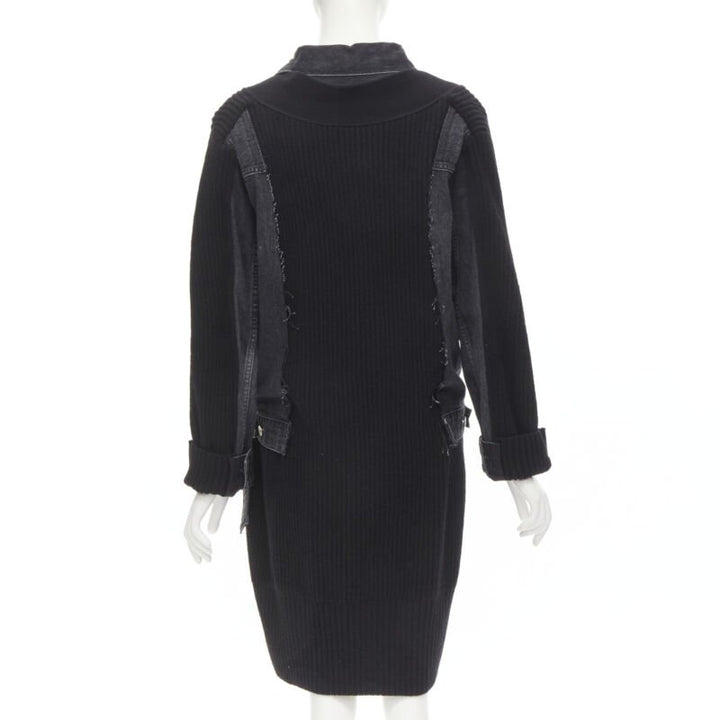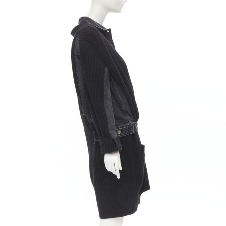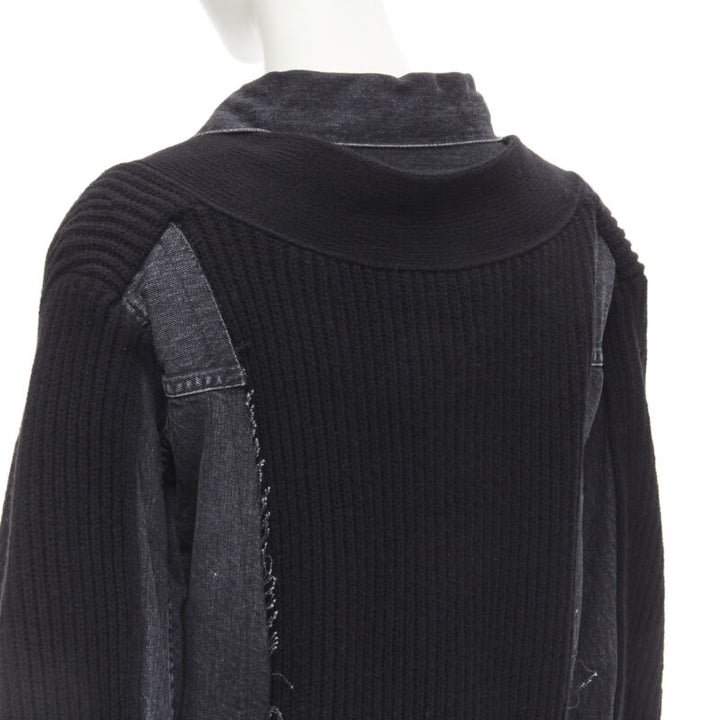 SACAI 2020 black reconstructed washed denim ribbed cardigan coat JP3 L