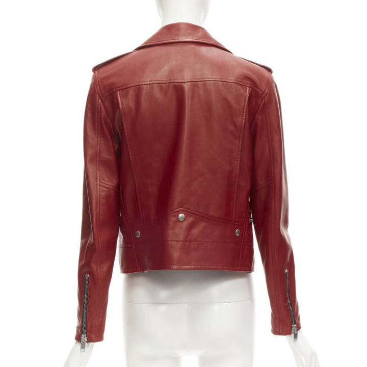 SAINT LAURENT 2013 Hedi Slimane red lambskin leather moto biker jacket FR38 S