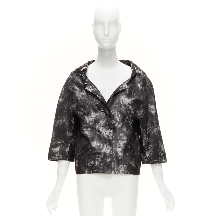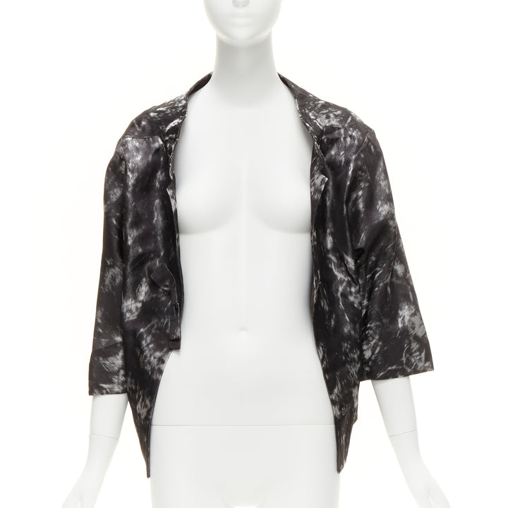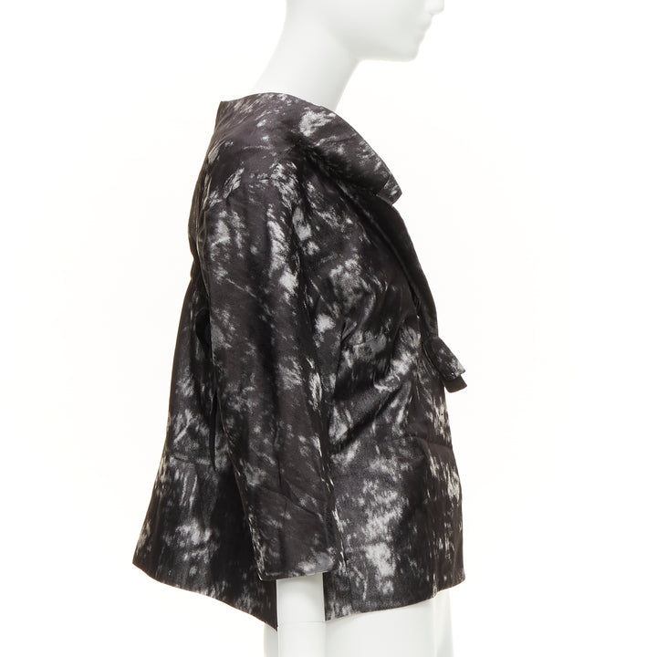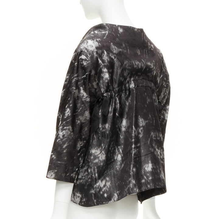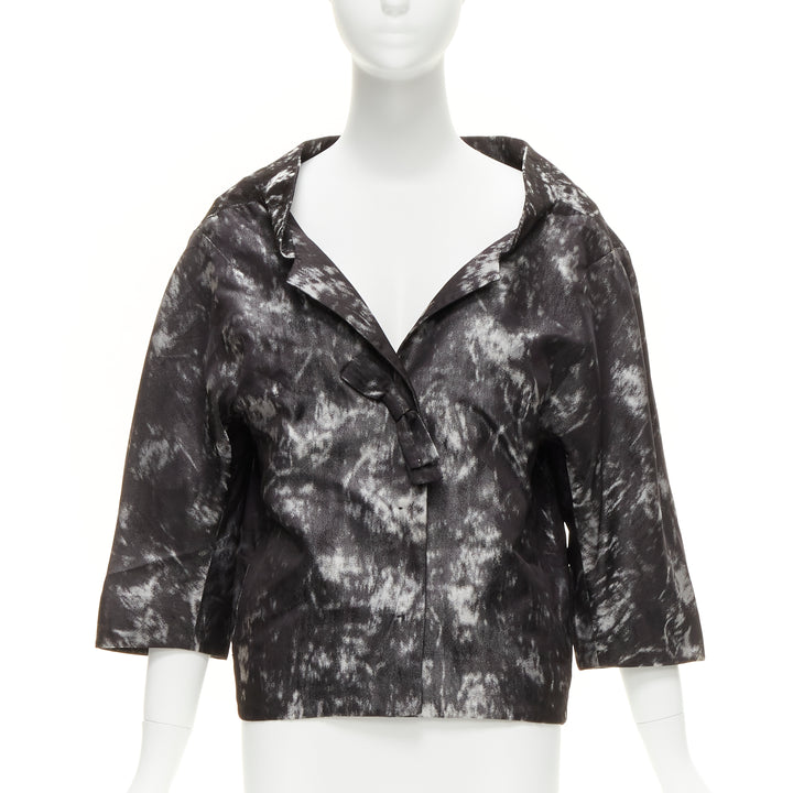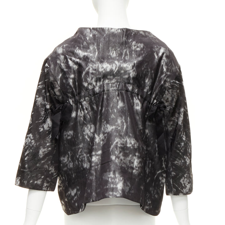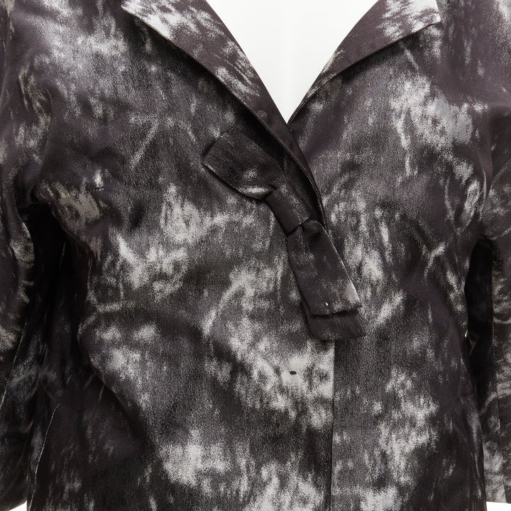 SHIATZY CHEN 100% silk grey black bow detail round cut cocoon jacket IT42 M