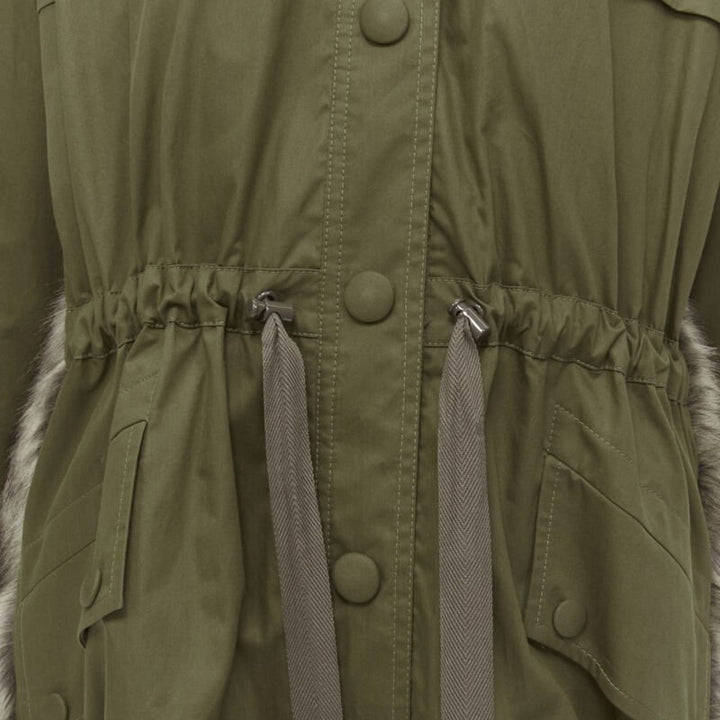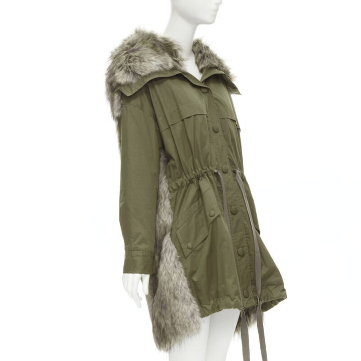 STELLA MCCARTNEY brown faux fur military green drawstring parka FR34 XS