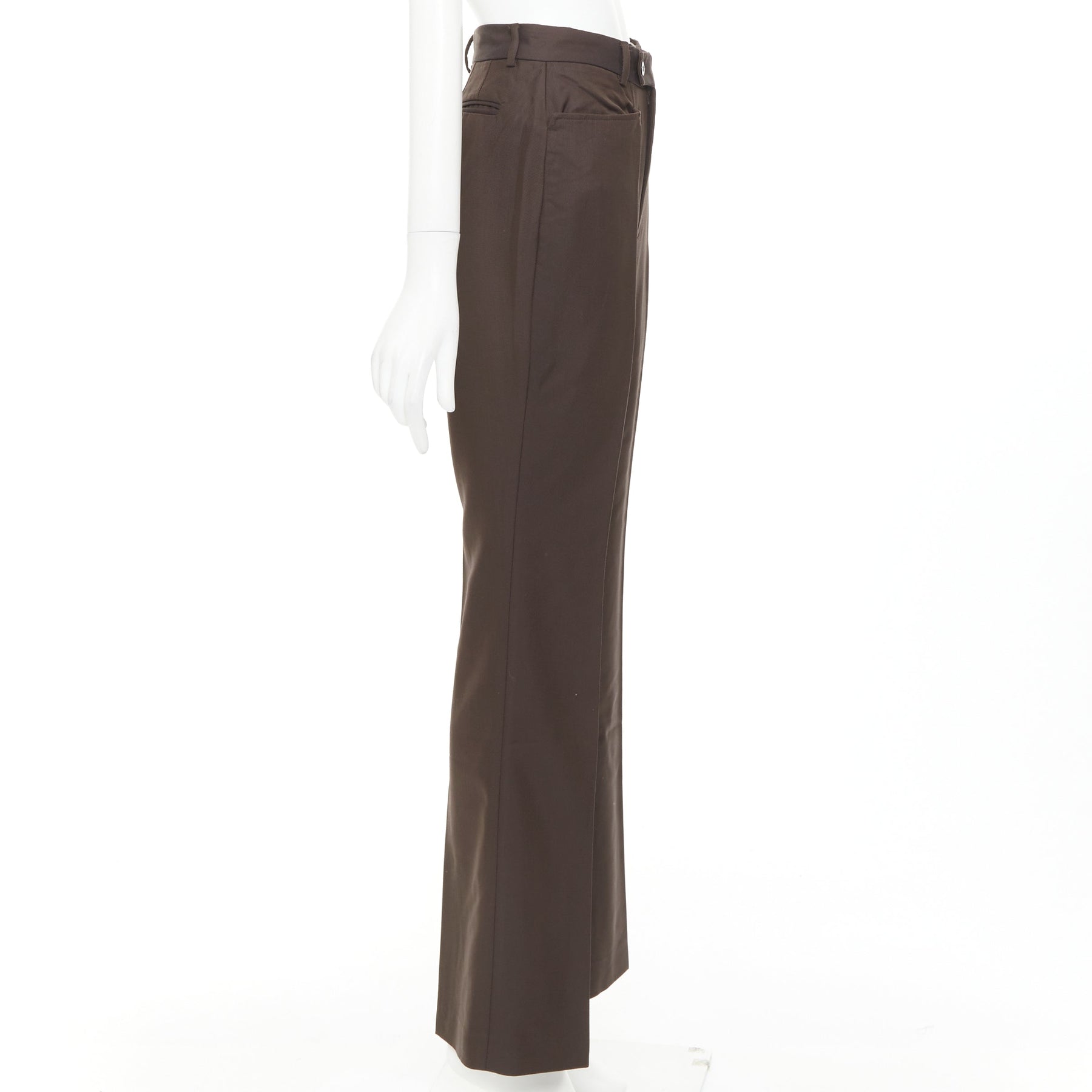 GUCCI Tom Ford chocolate brown curved pocket high waist flare trousers IT40 S