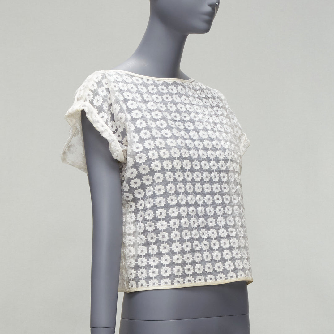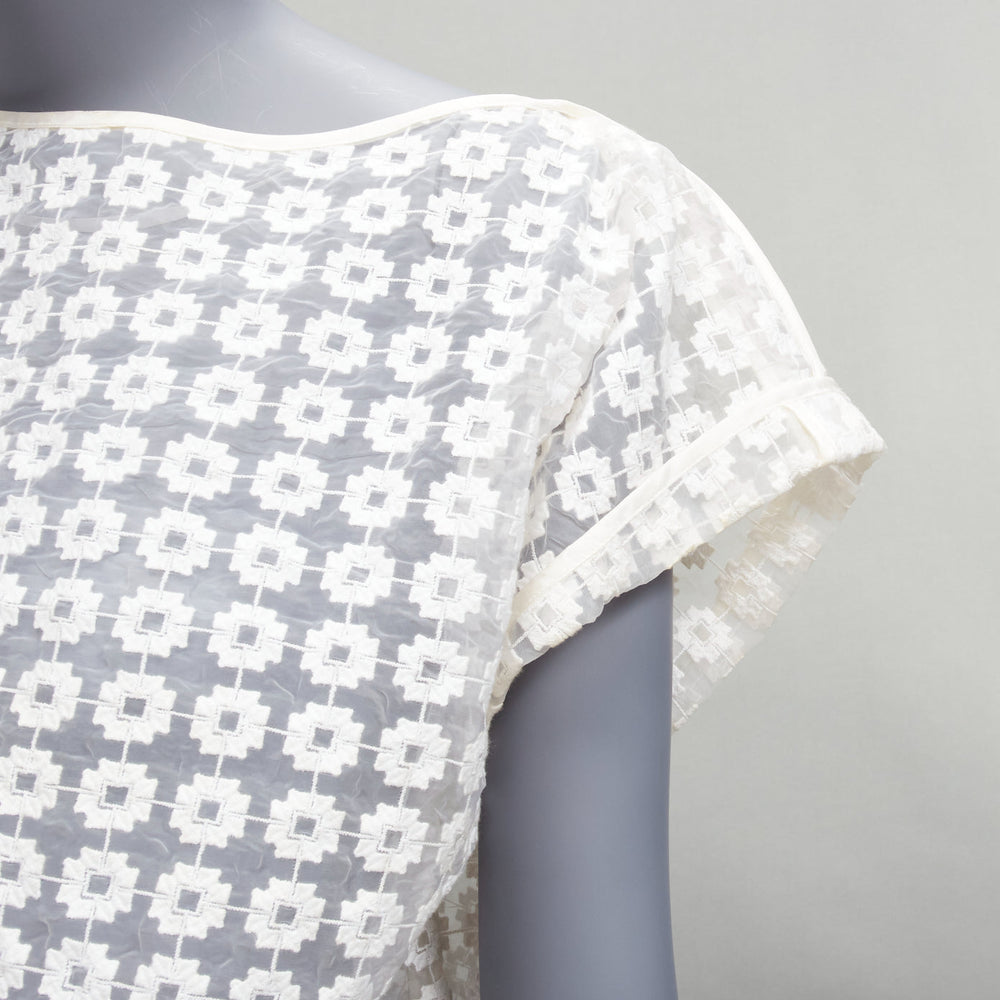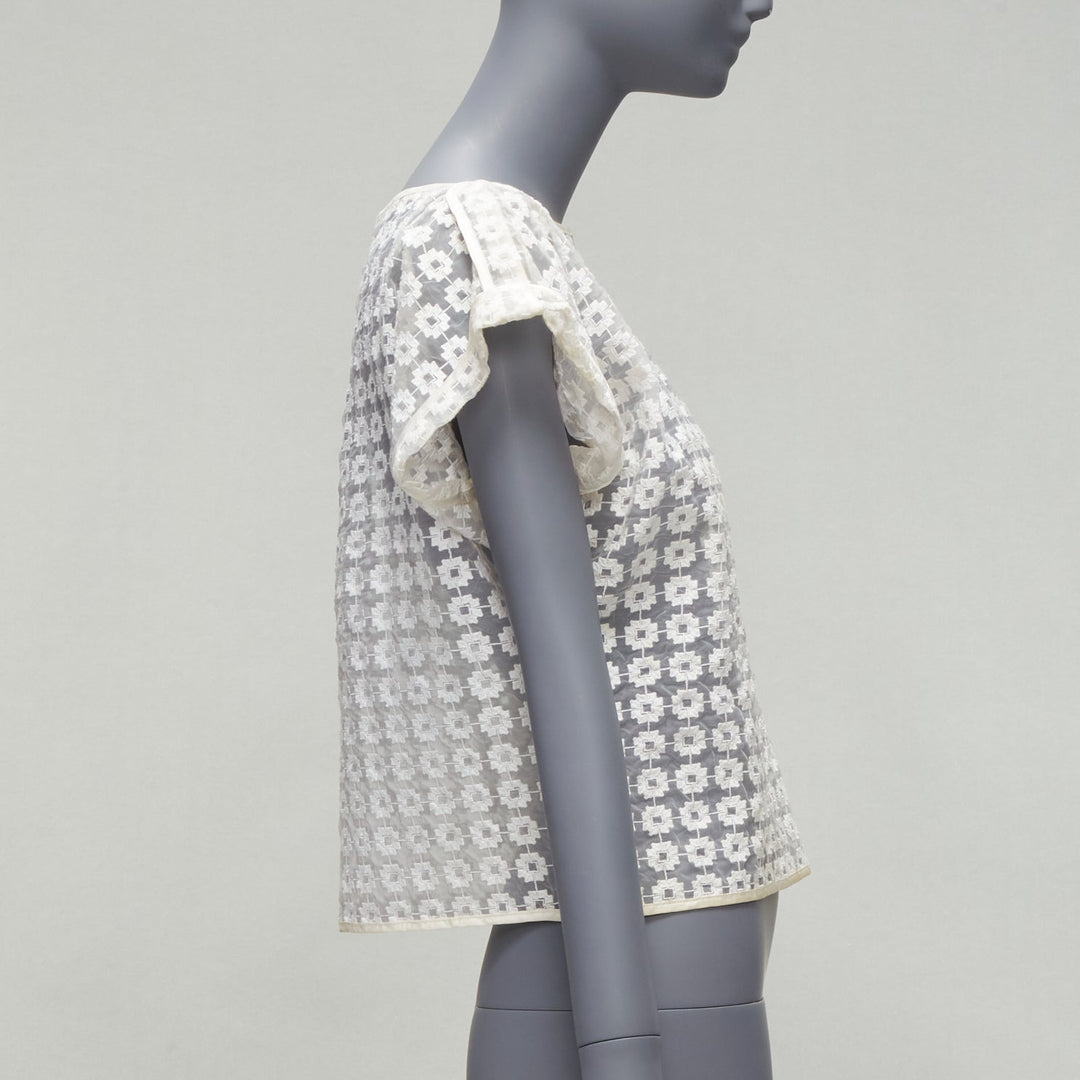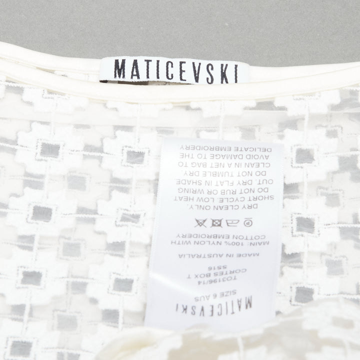 MATICEVSKI 2016 Cortes Box cream cotton embroidery cap sleeves sheer top AUS6 S