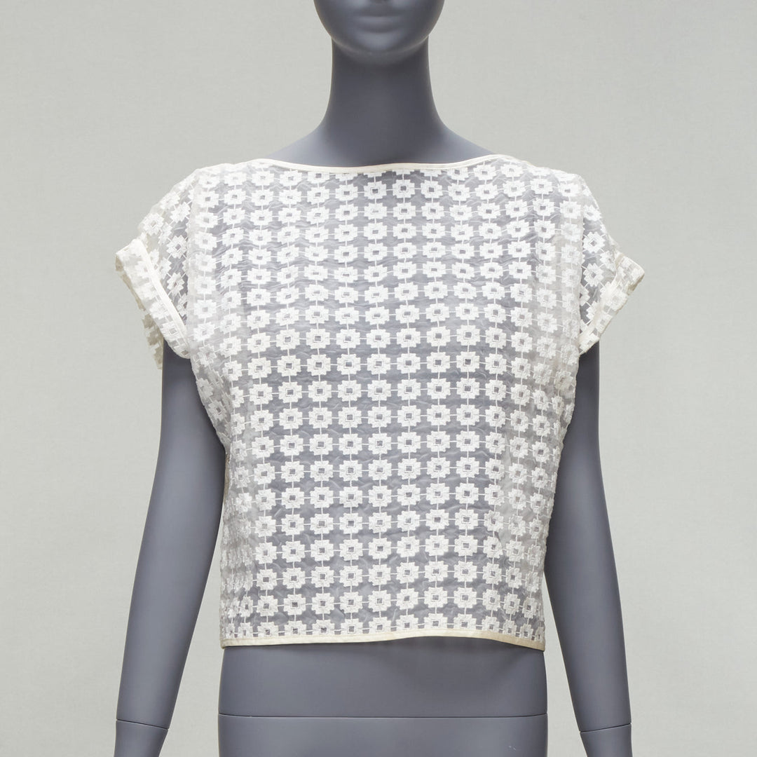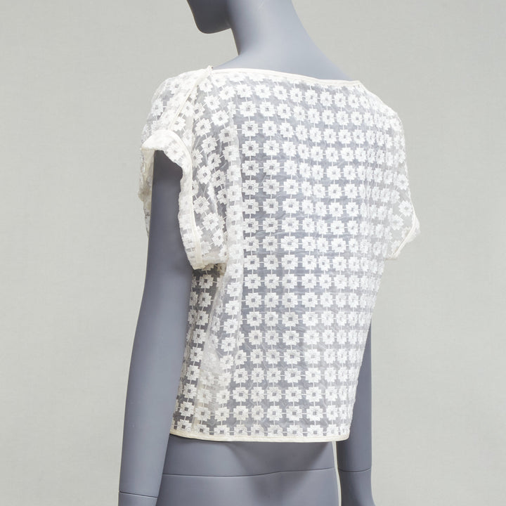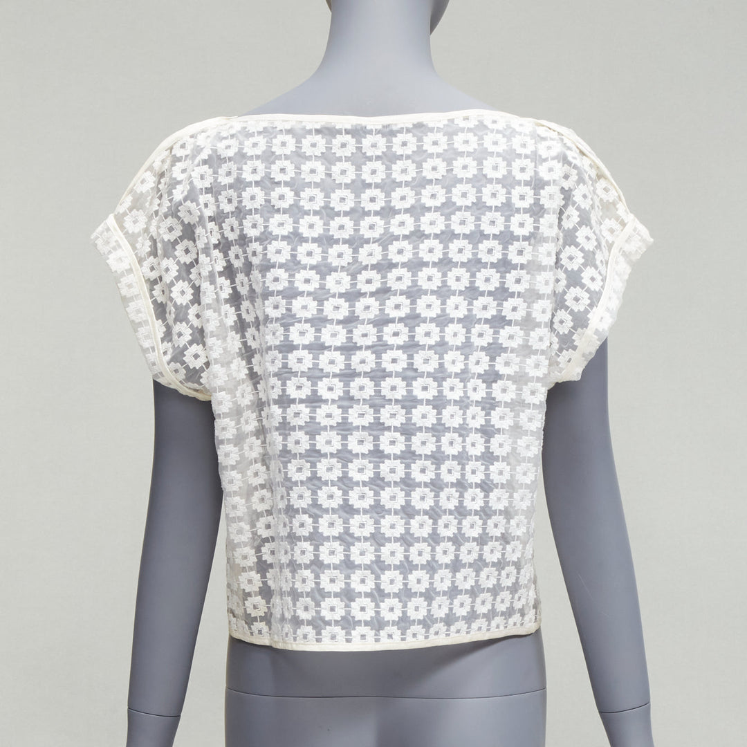 MATICEVSKI 2016 Cortes Box cream cotton embroidery cap sleeves sheer top AUS6 S