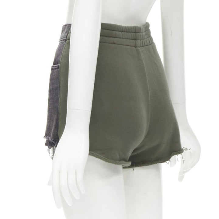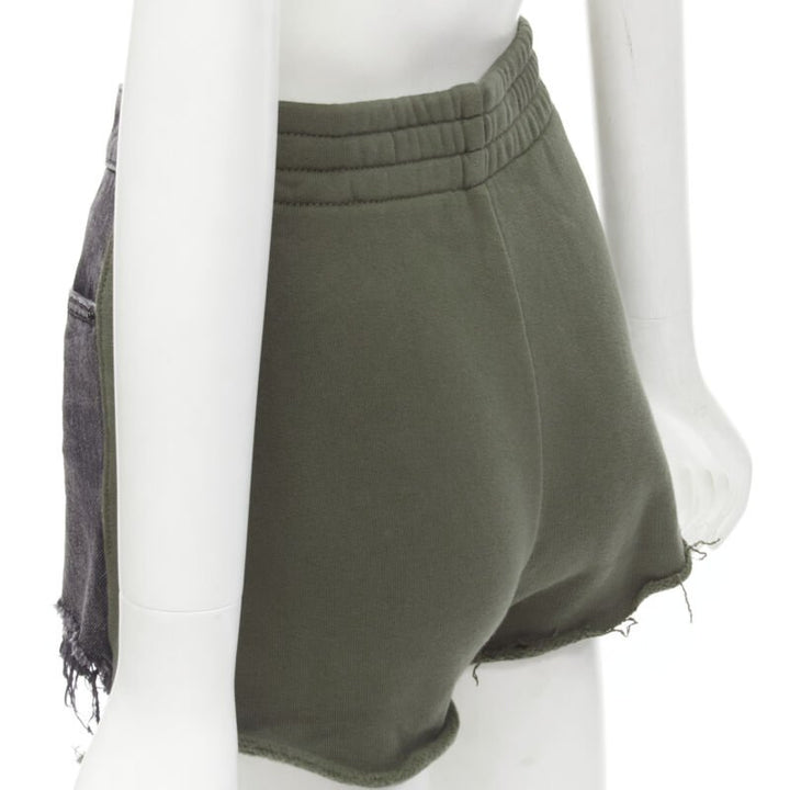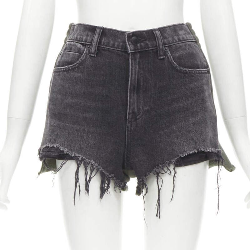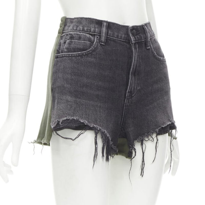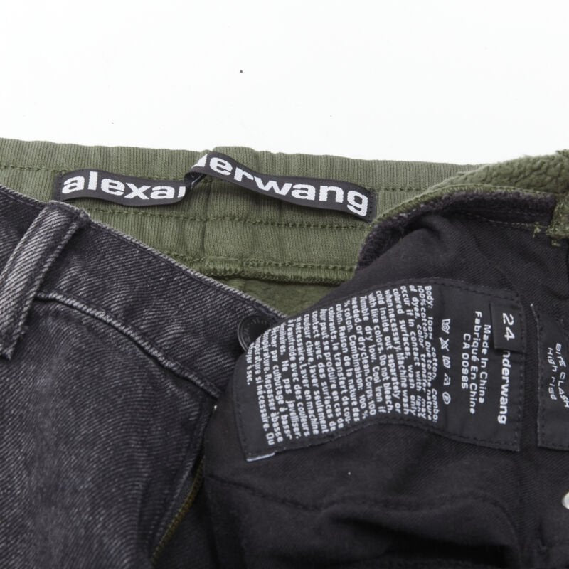 ALEXANDER WANG Bite Clash High Rise black denim green sweats cut off shorts 24"