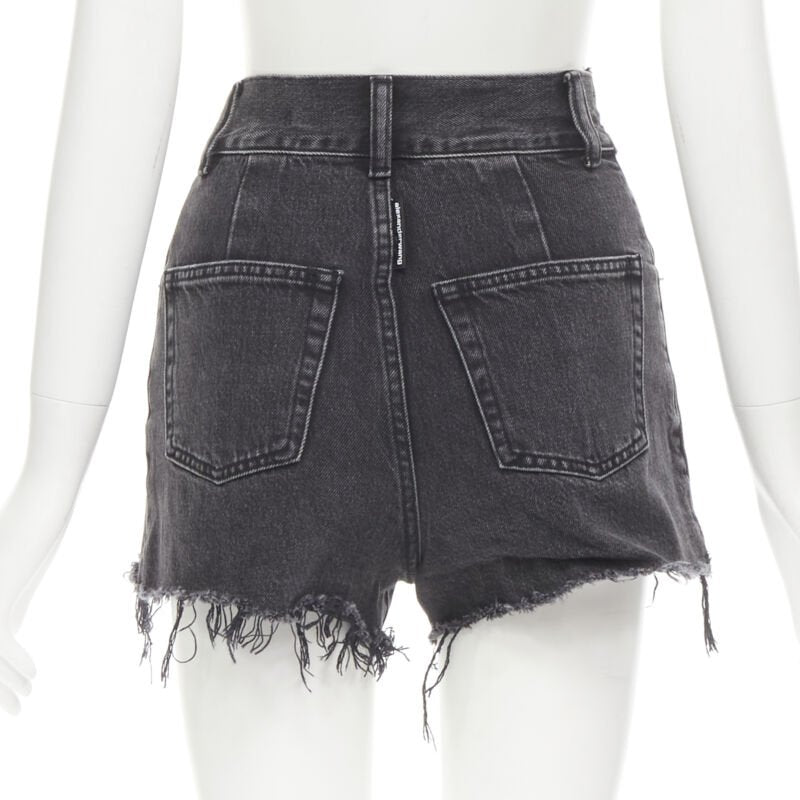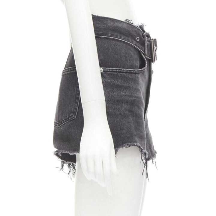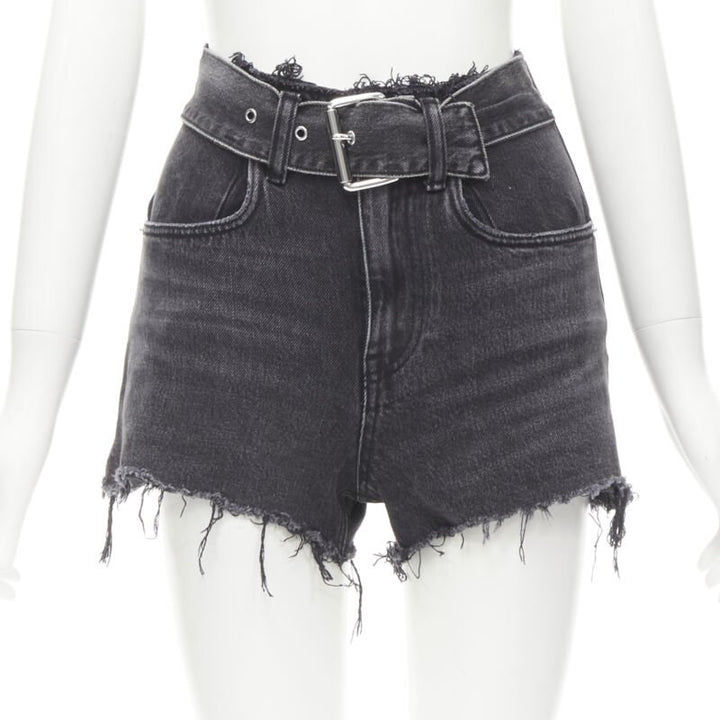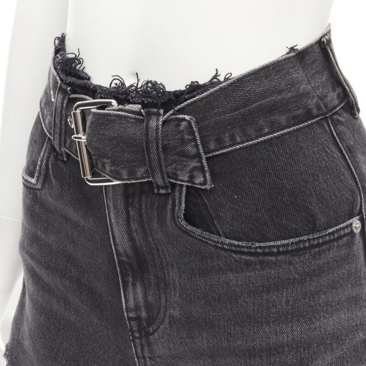 ALEXANDER WANG black washed denim silver buckle cut off frayed shorts 24"