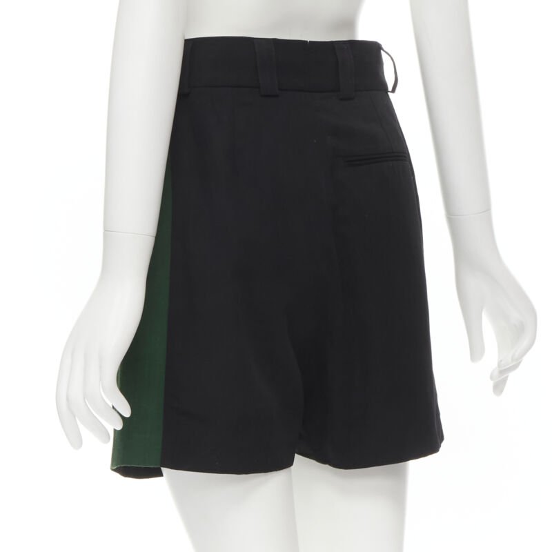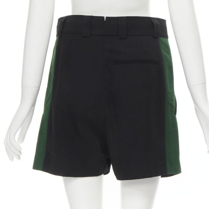 HAIDER ACKERMANN black green grosgrain trimmed side pleated front shorts FR34 XS