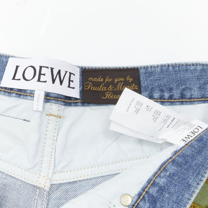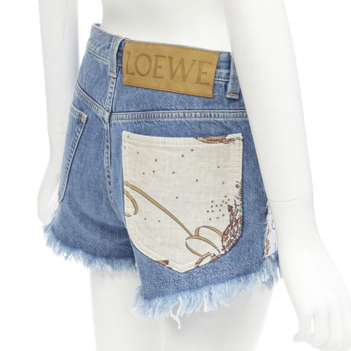 LOEWE PAULA'S IBIZA blue denim sequnis patchwork cut off shorts FR36 S