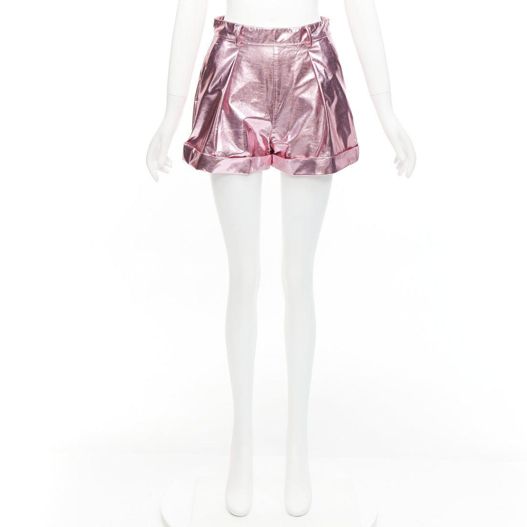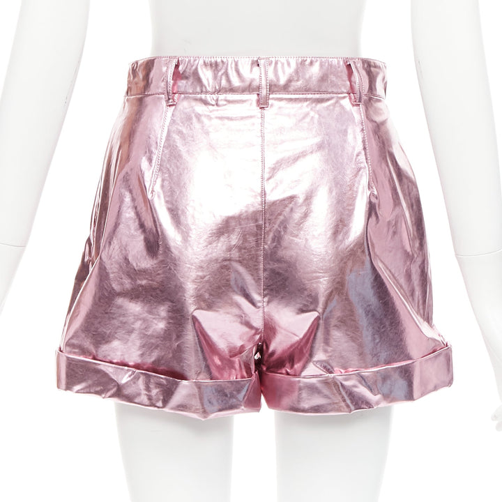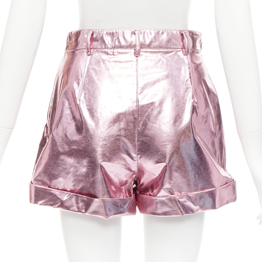 PHILOSOPHY LORENZO SERAFINI metallic pink PU high waisted cuffed shorts IT40 XS