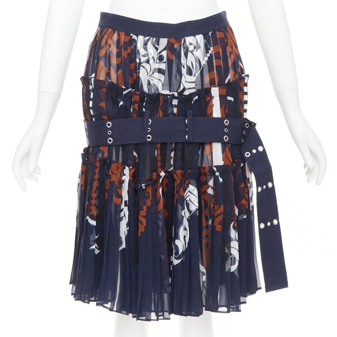 SACAI 2016 navy orange white printed pleated cotton eyelet belt skirt JP1 S