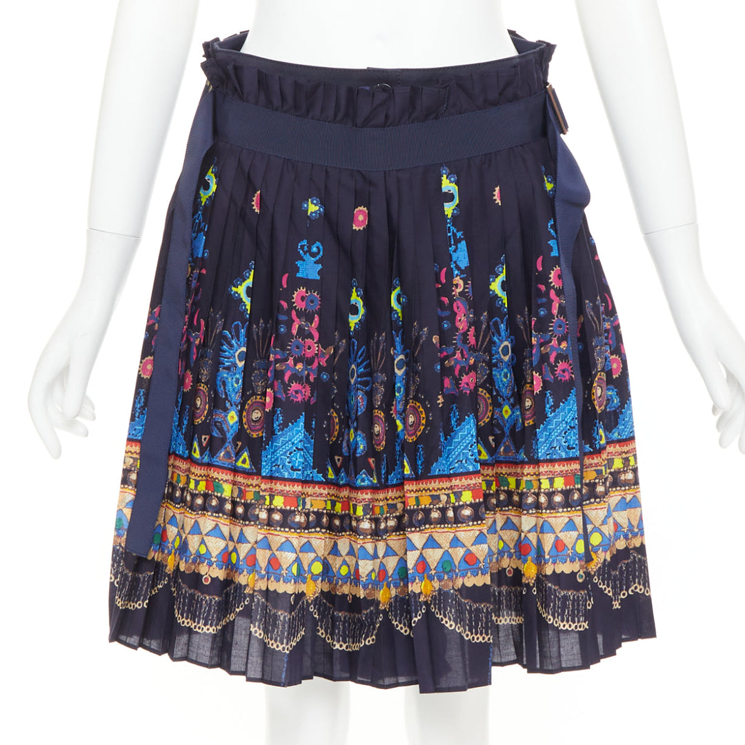SACAI 2017 navy multicolor circus print belted pleated wrap skorts JP1 S