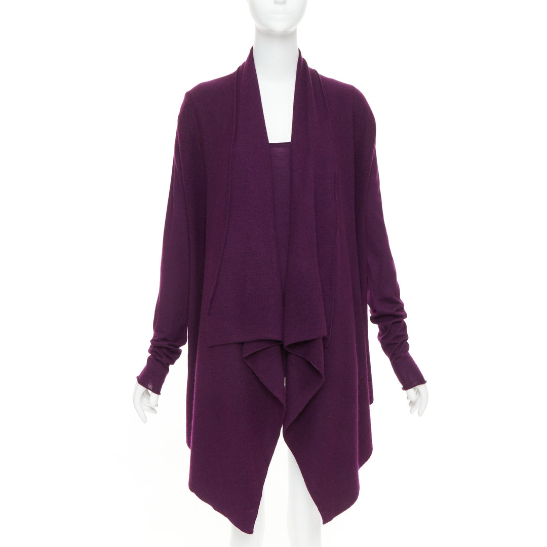 DONNA KARAN maroon purple cashmere wool silk sweater draped cardigan twin set L