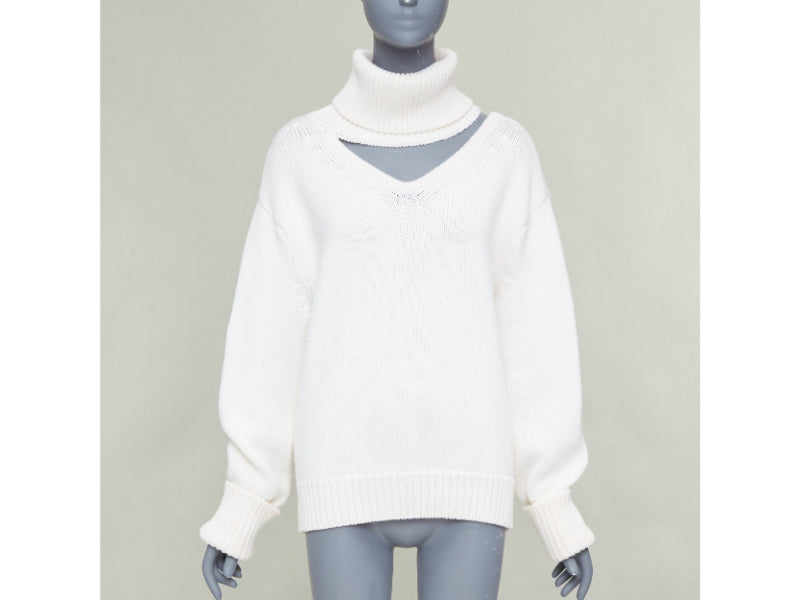 MONSE 100% wool cream deconstructed cut out turtleneck sweater XS
