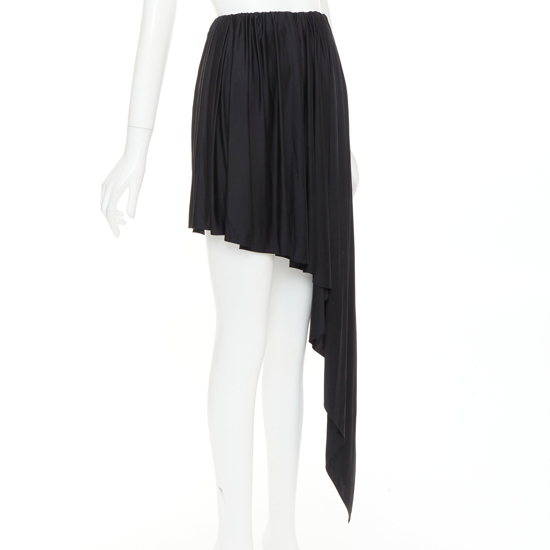 ALEXANDRE VAUTHIER black shiny stretch jersey asymmetric drape skirt