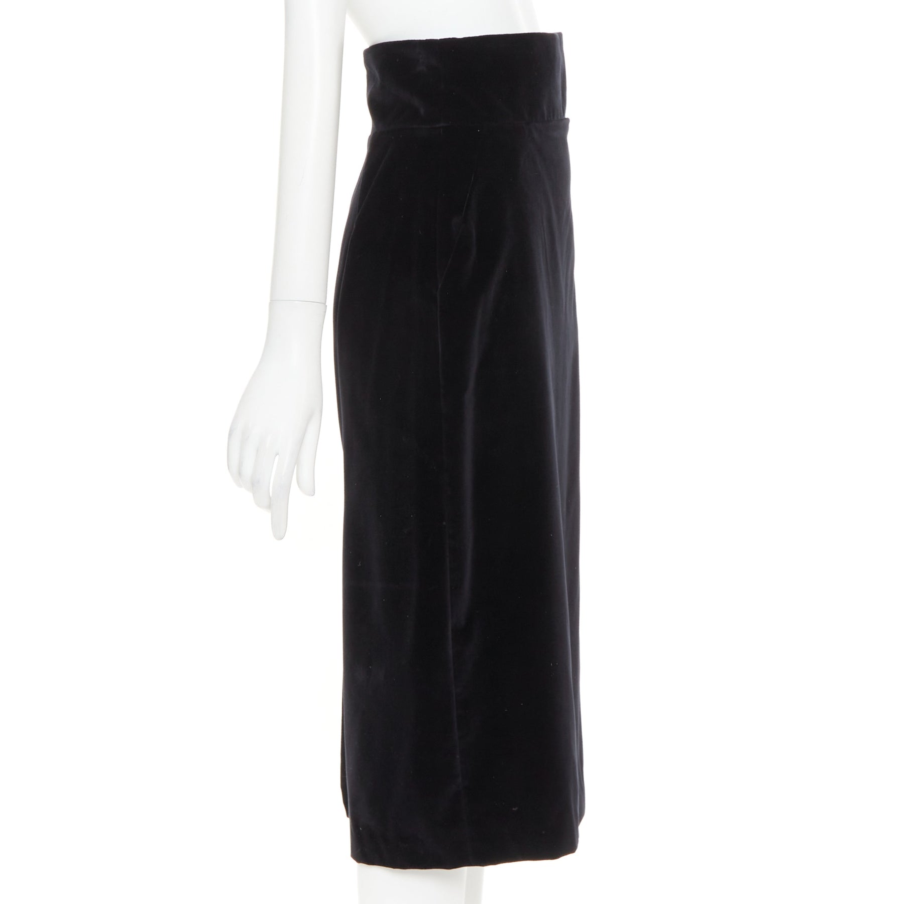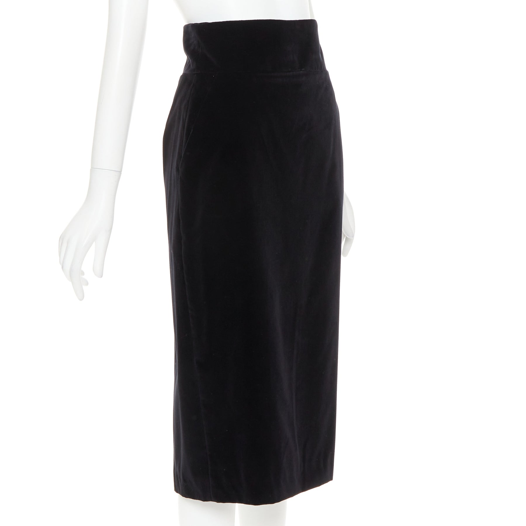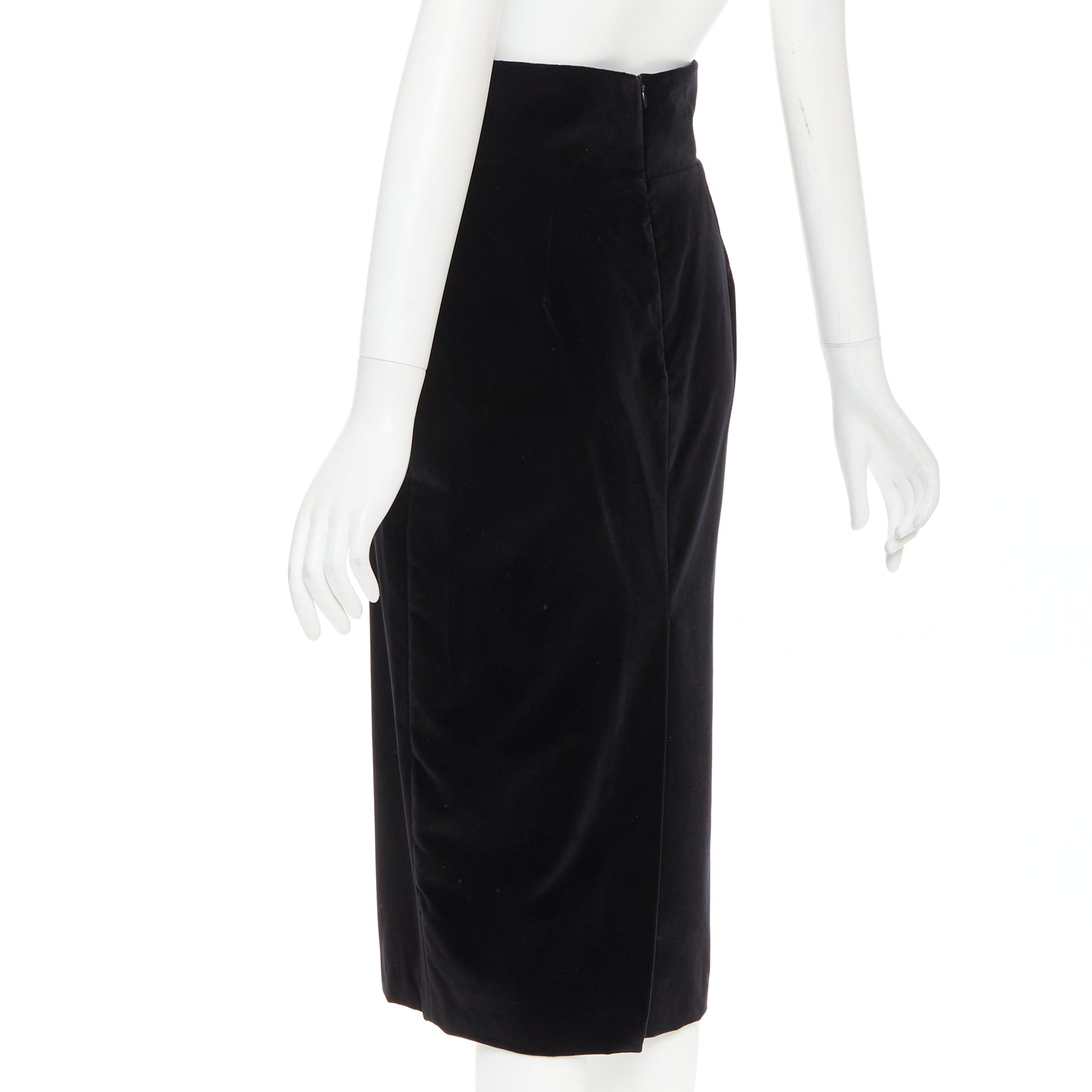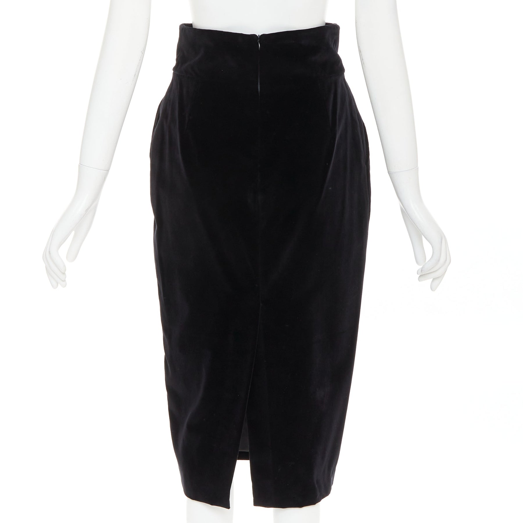 ALEXANDRE VAUTHIER black velvet high waisted duo pocket back slit pencil skirt