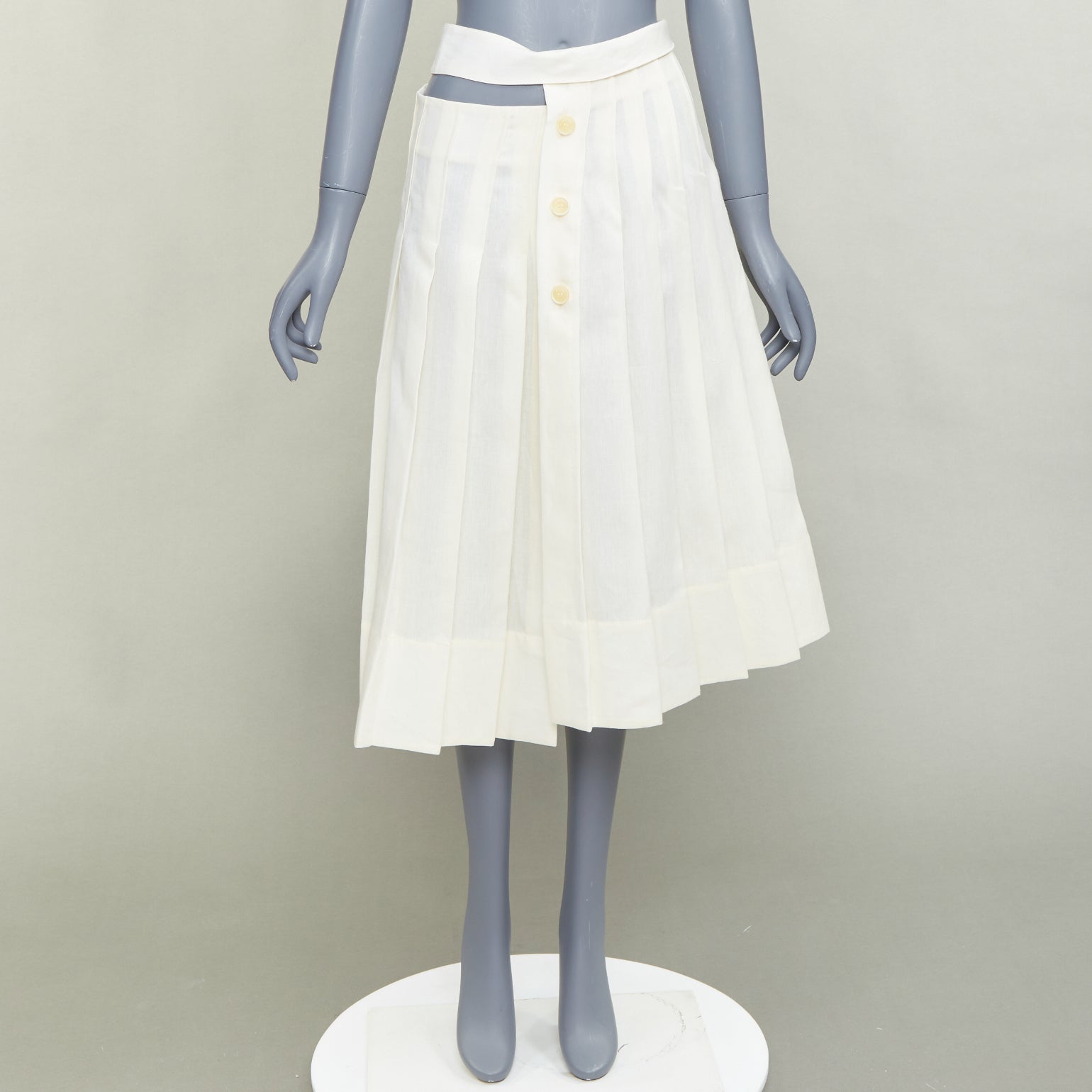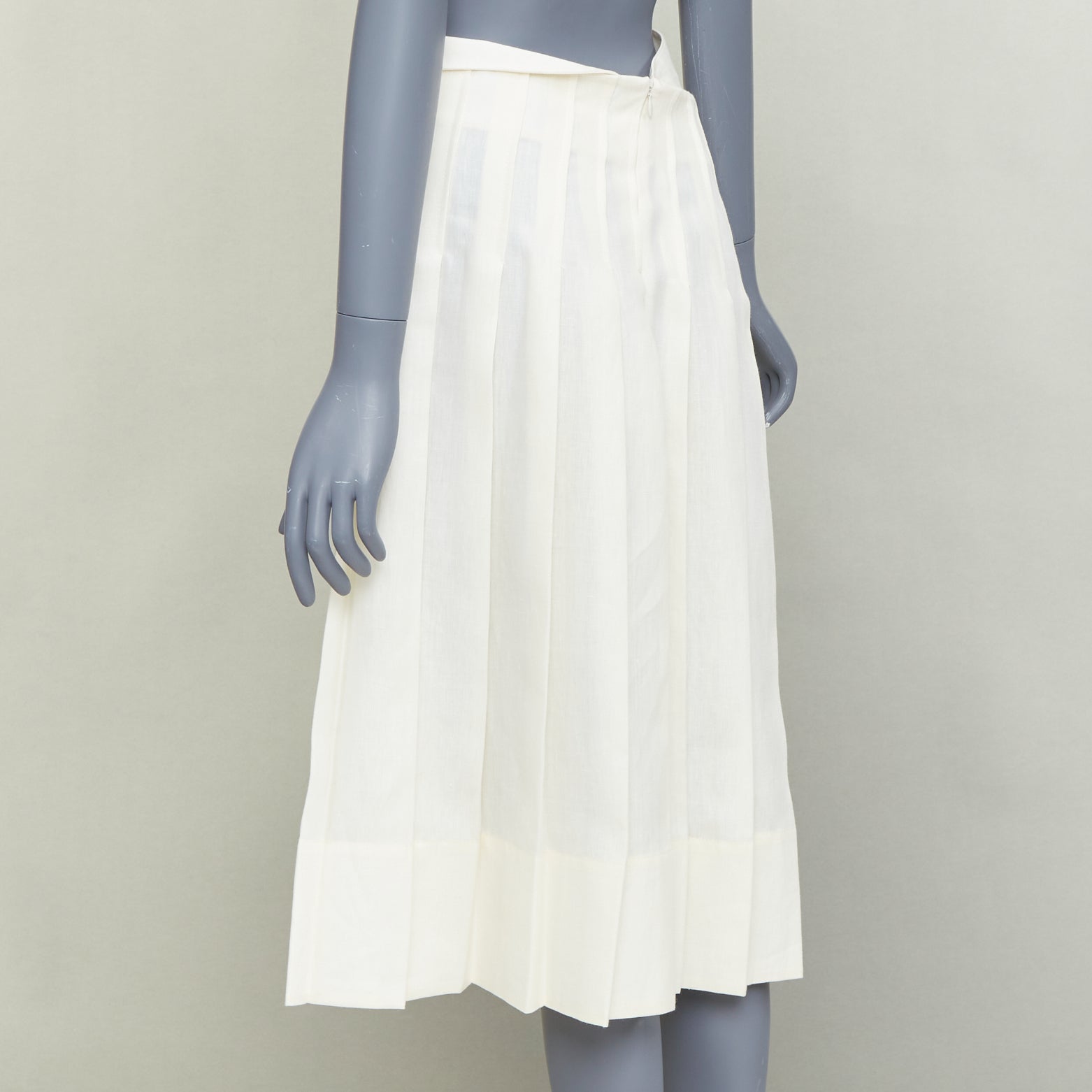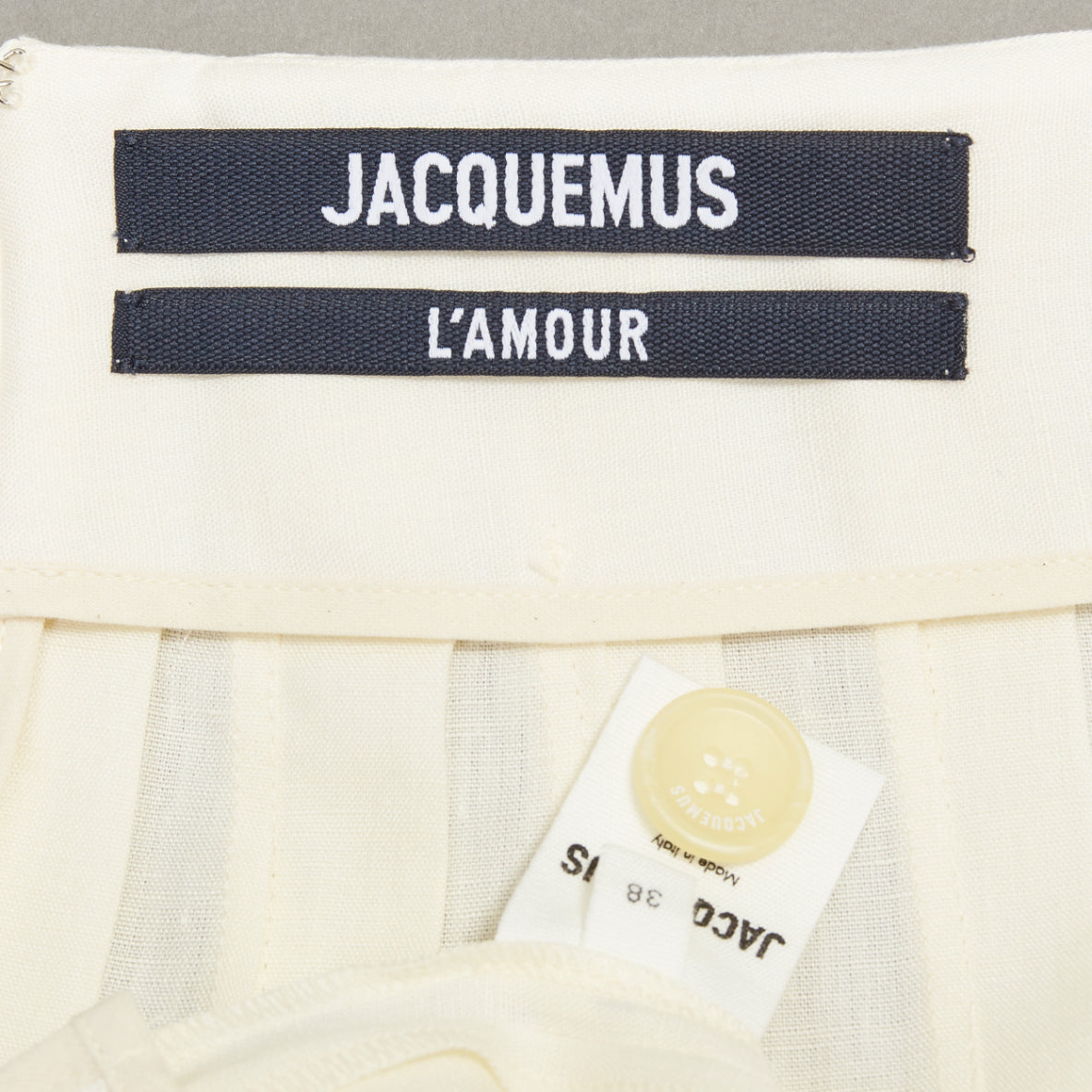 JACQUEMUS L'Amour cream linen asymmetric pleated cut out midi skirt FR38 M
