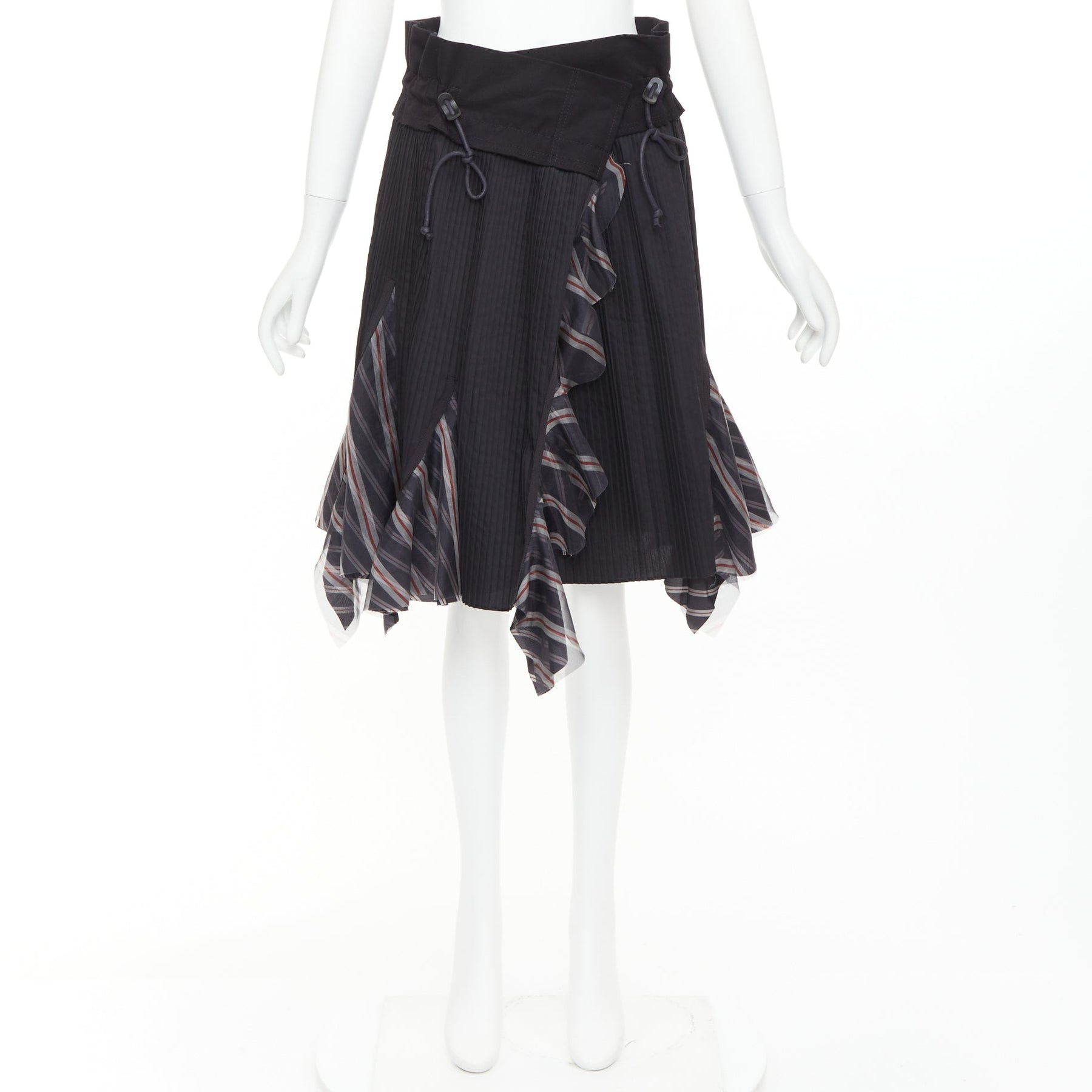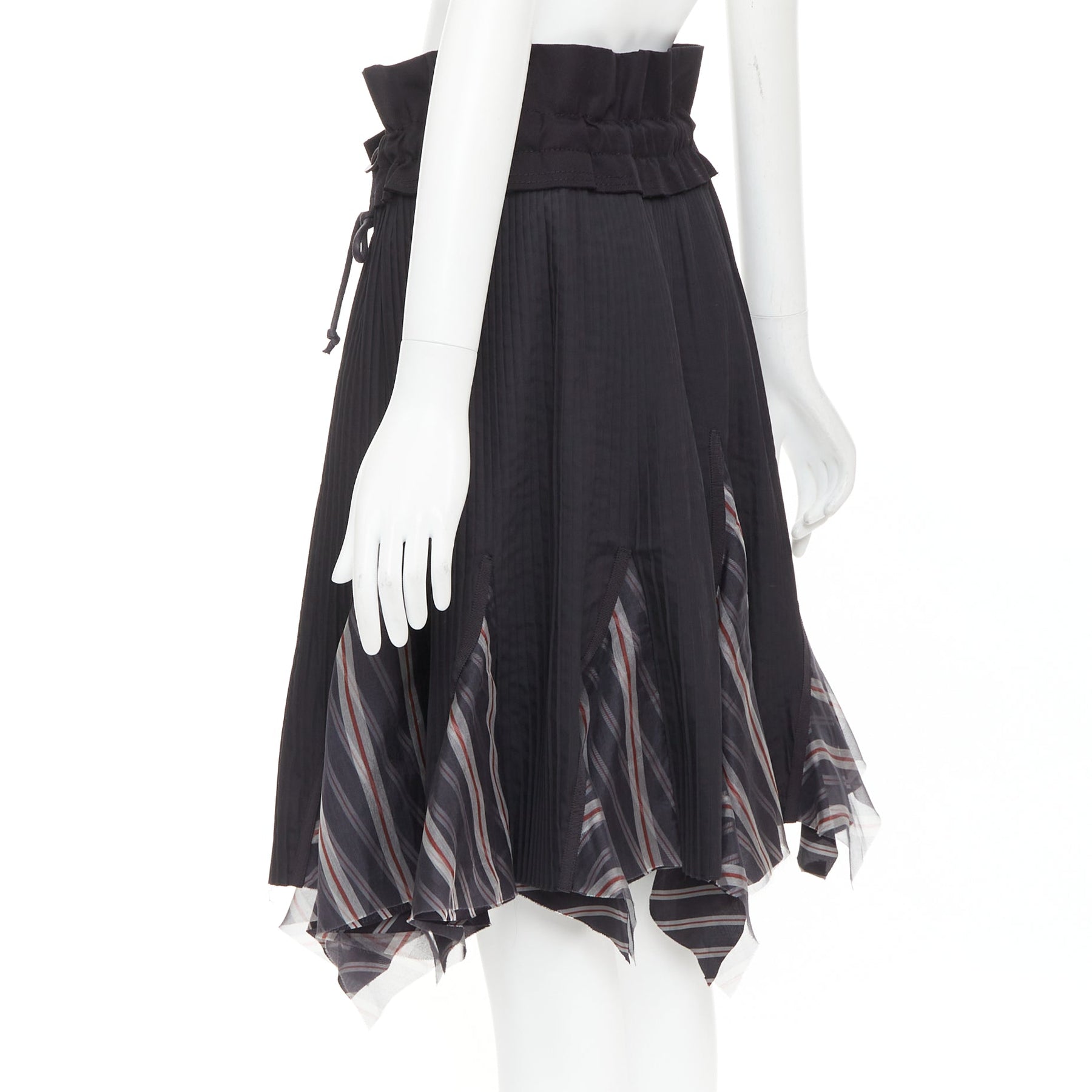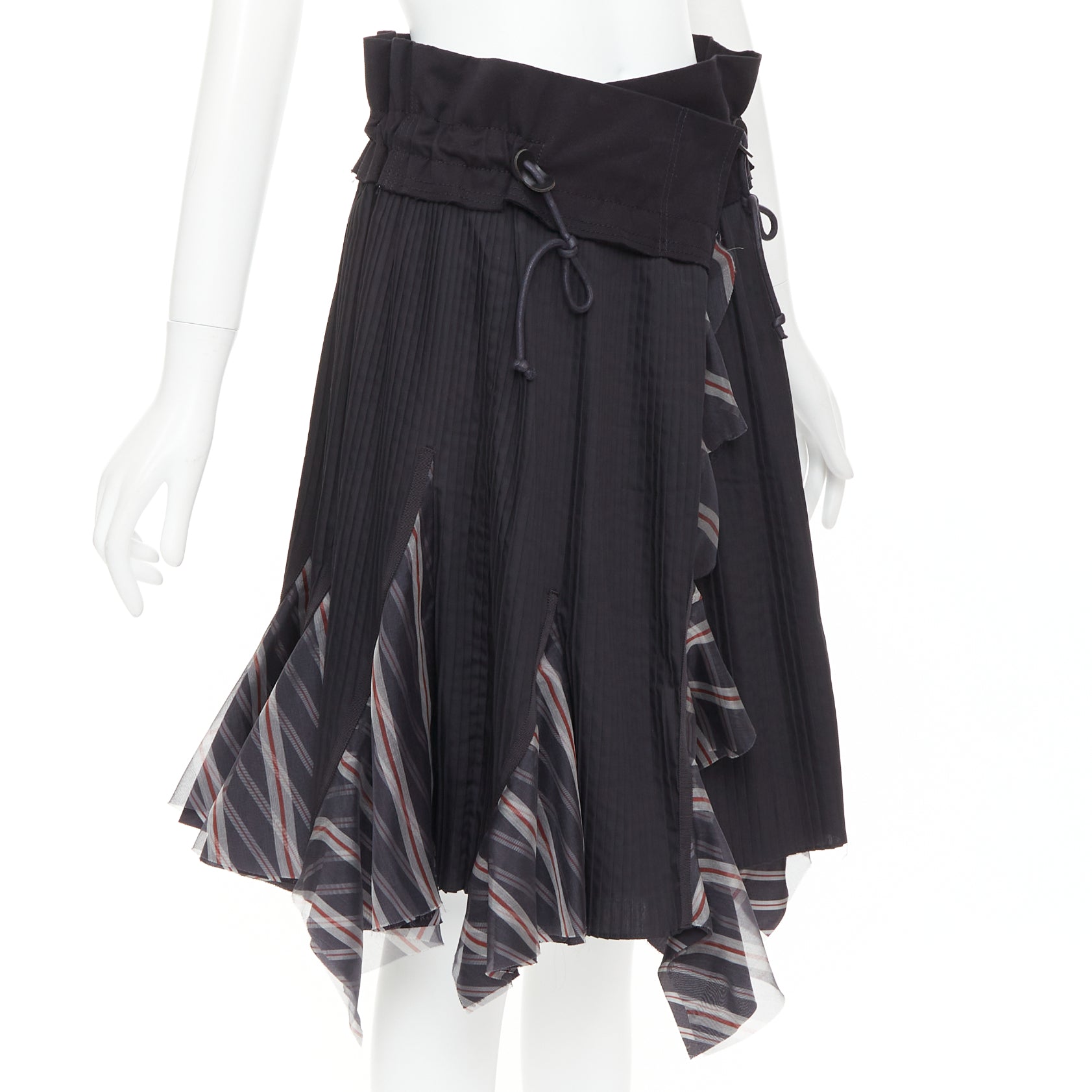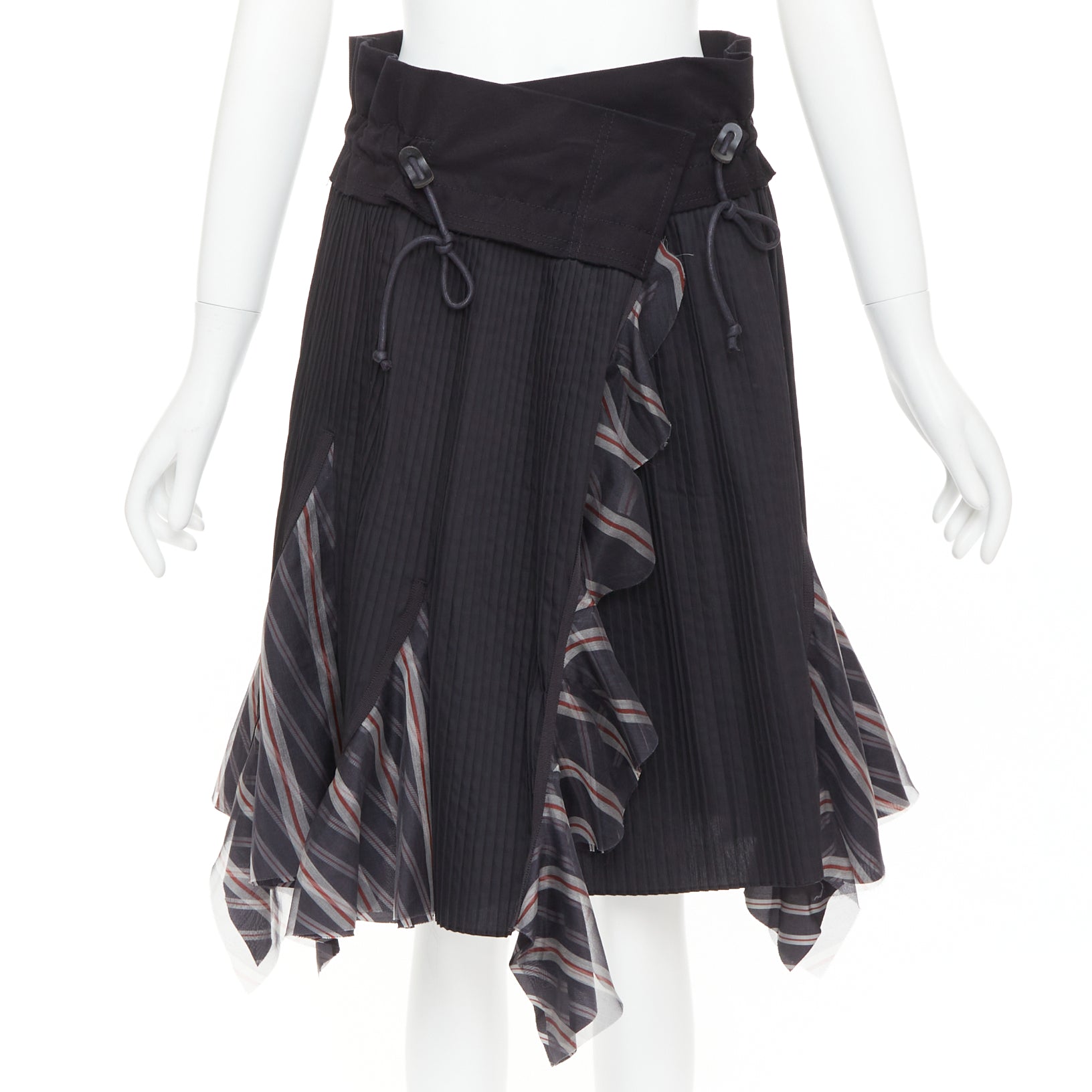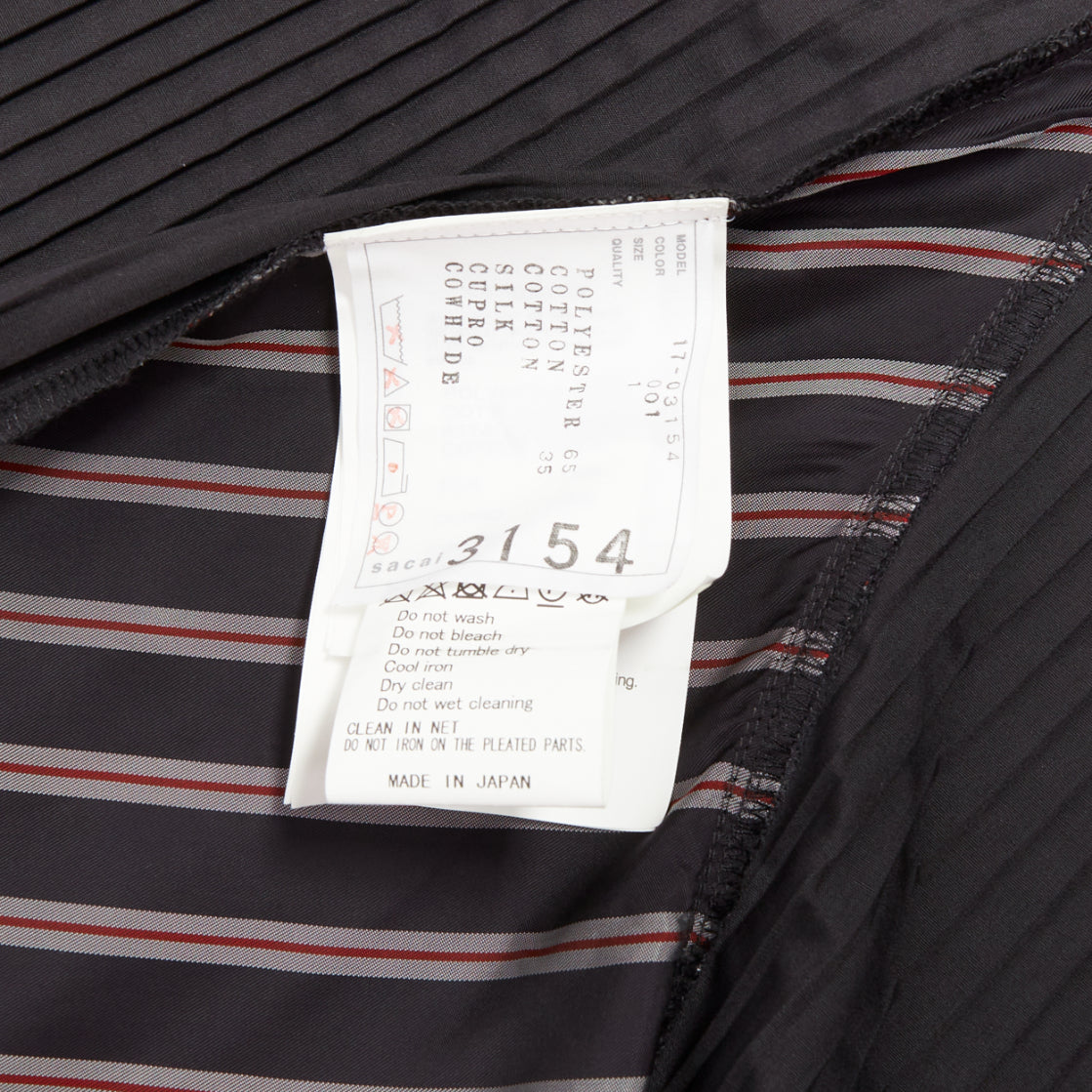 SACAI 2017 black plisse cowhide trim striped flare wrap knee skirt JP1 S