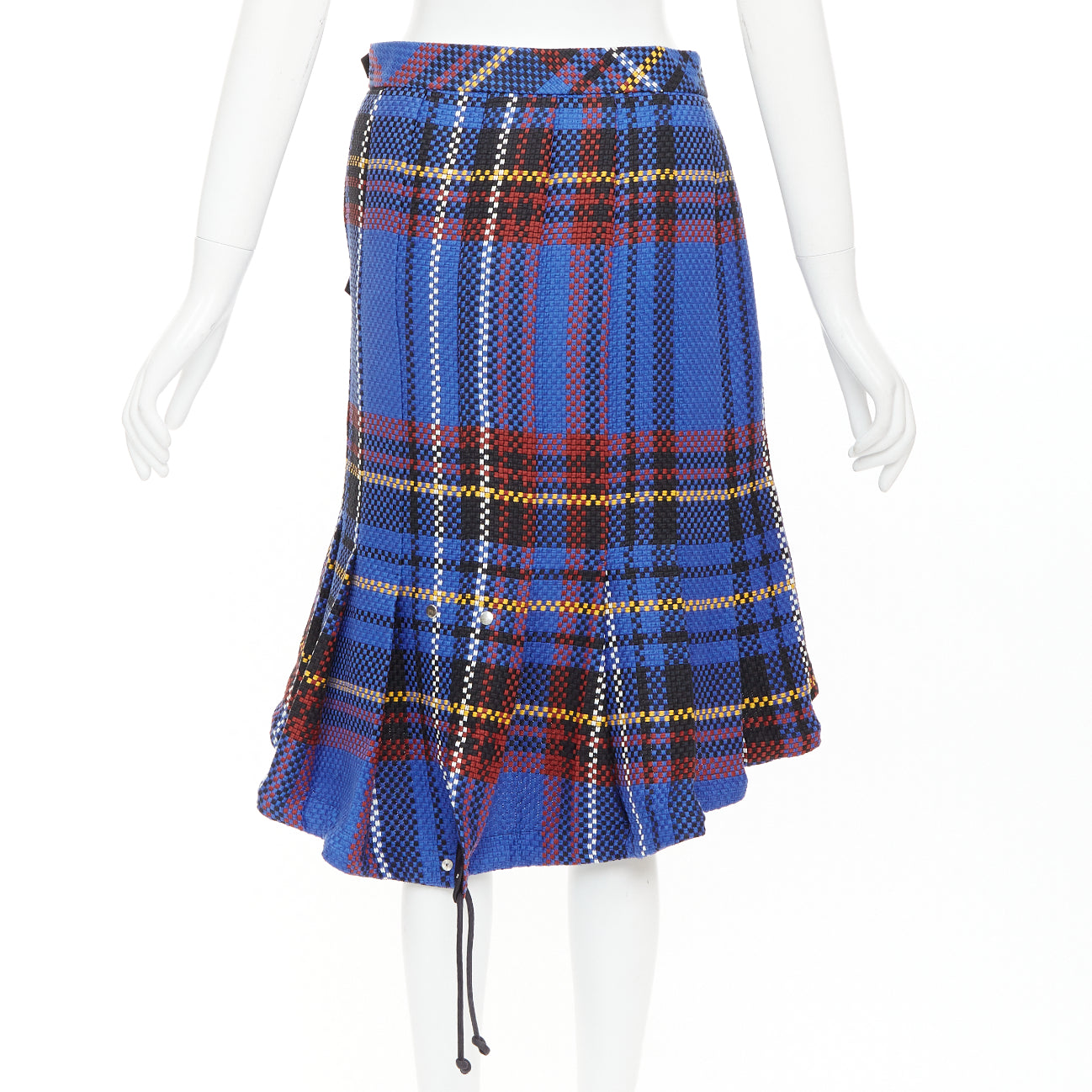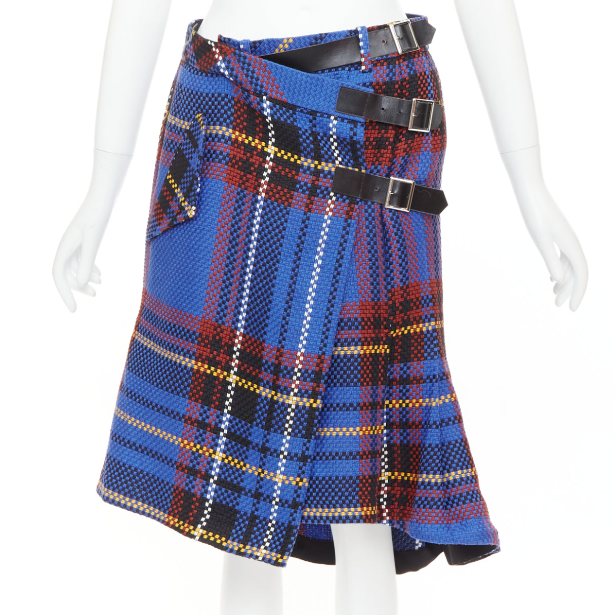 SACAI 2017 blue plaid check cotton blend leather buckle wrap kilt skirt JP2 M