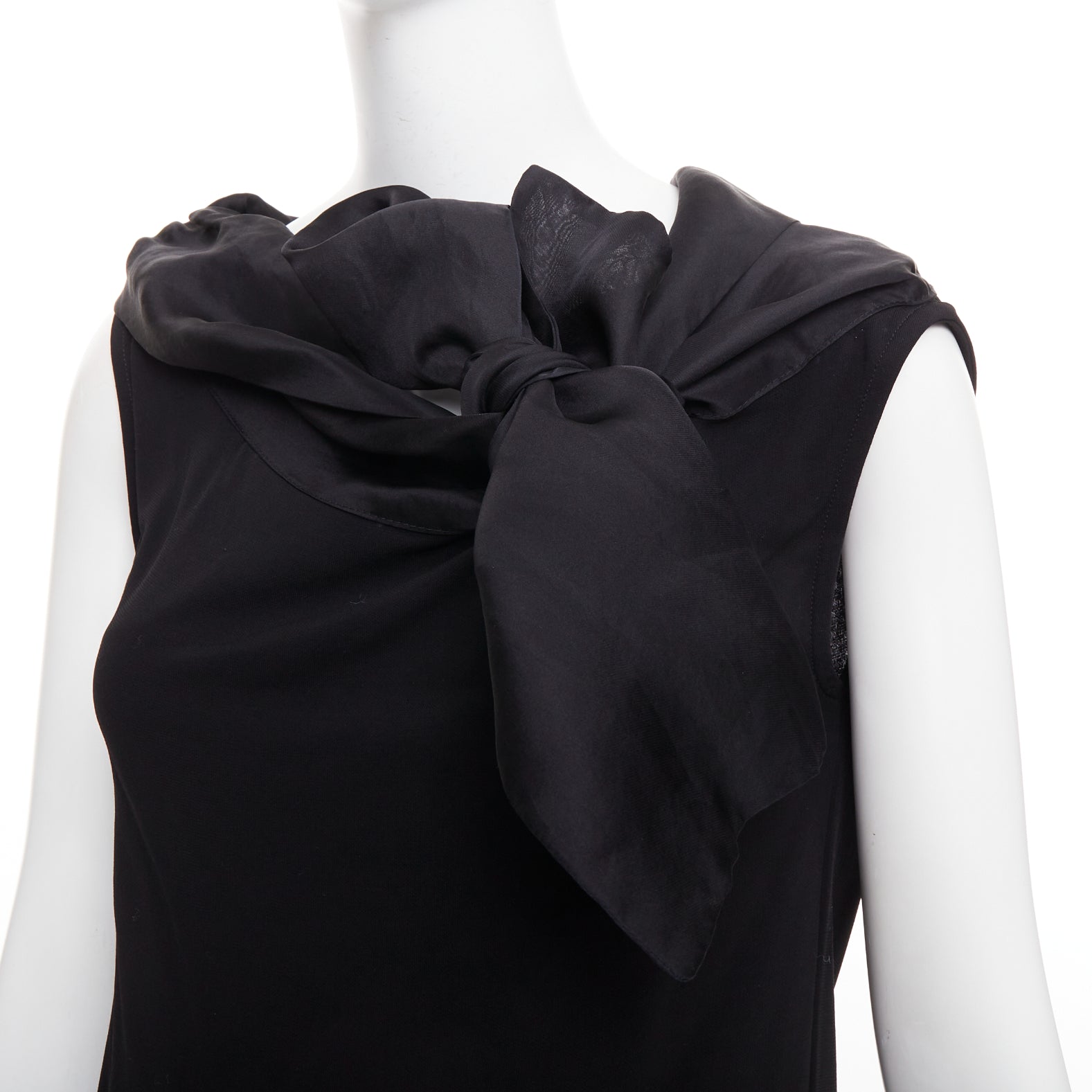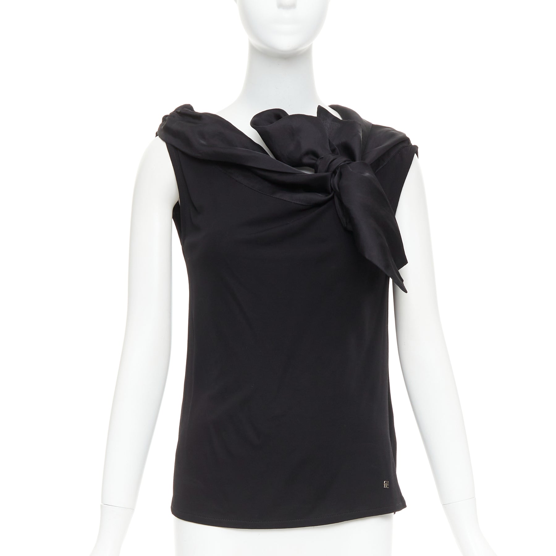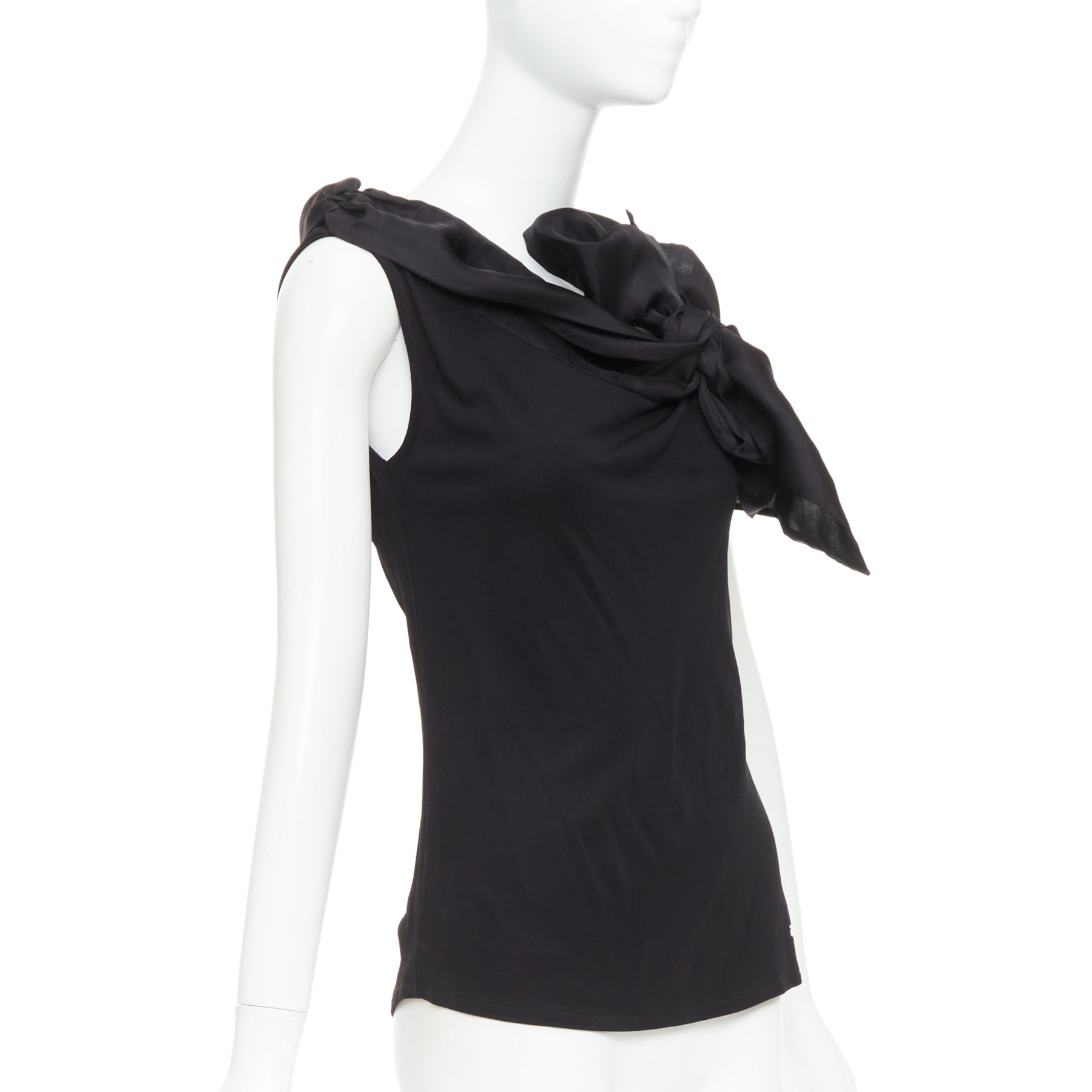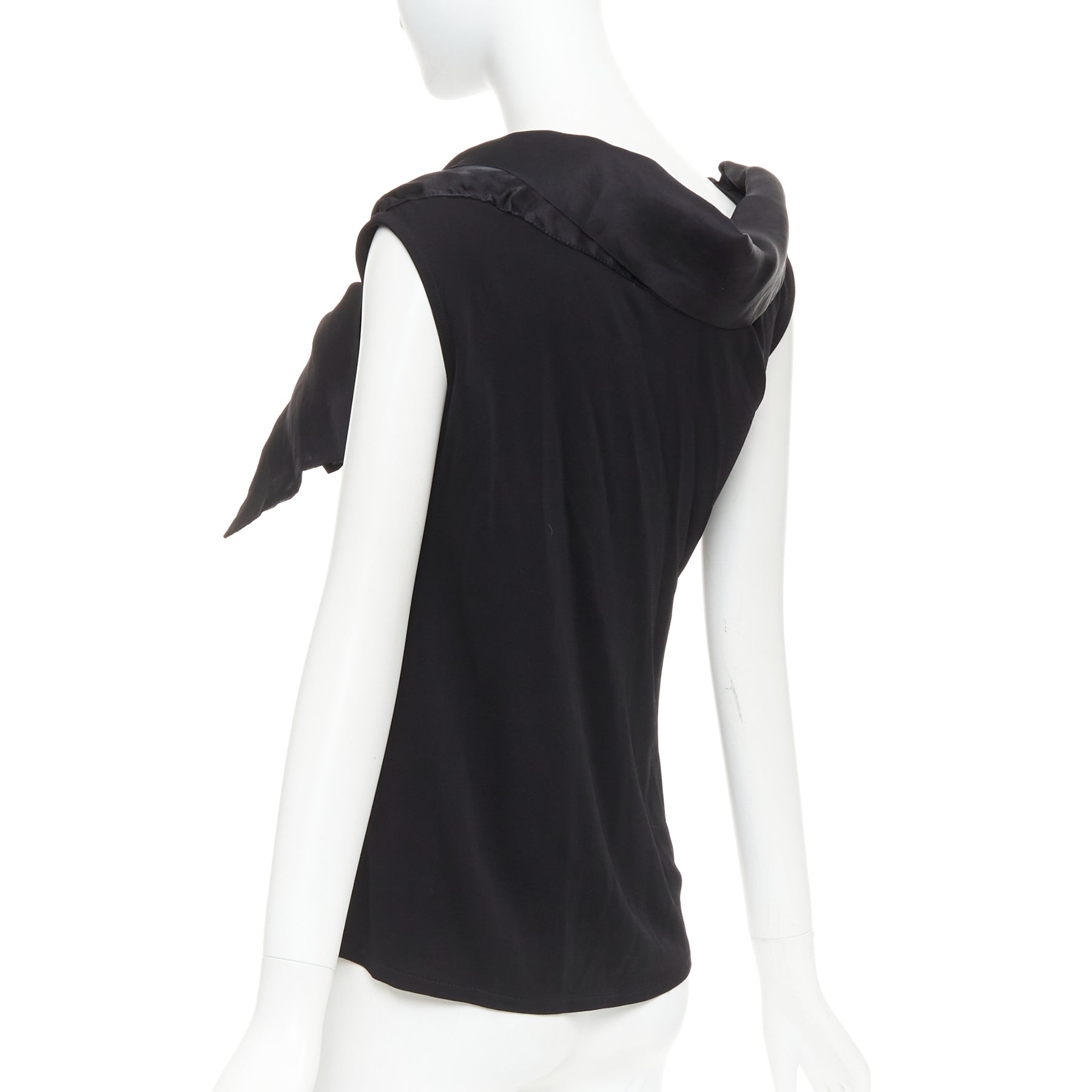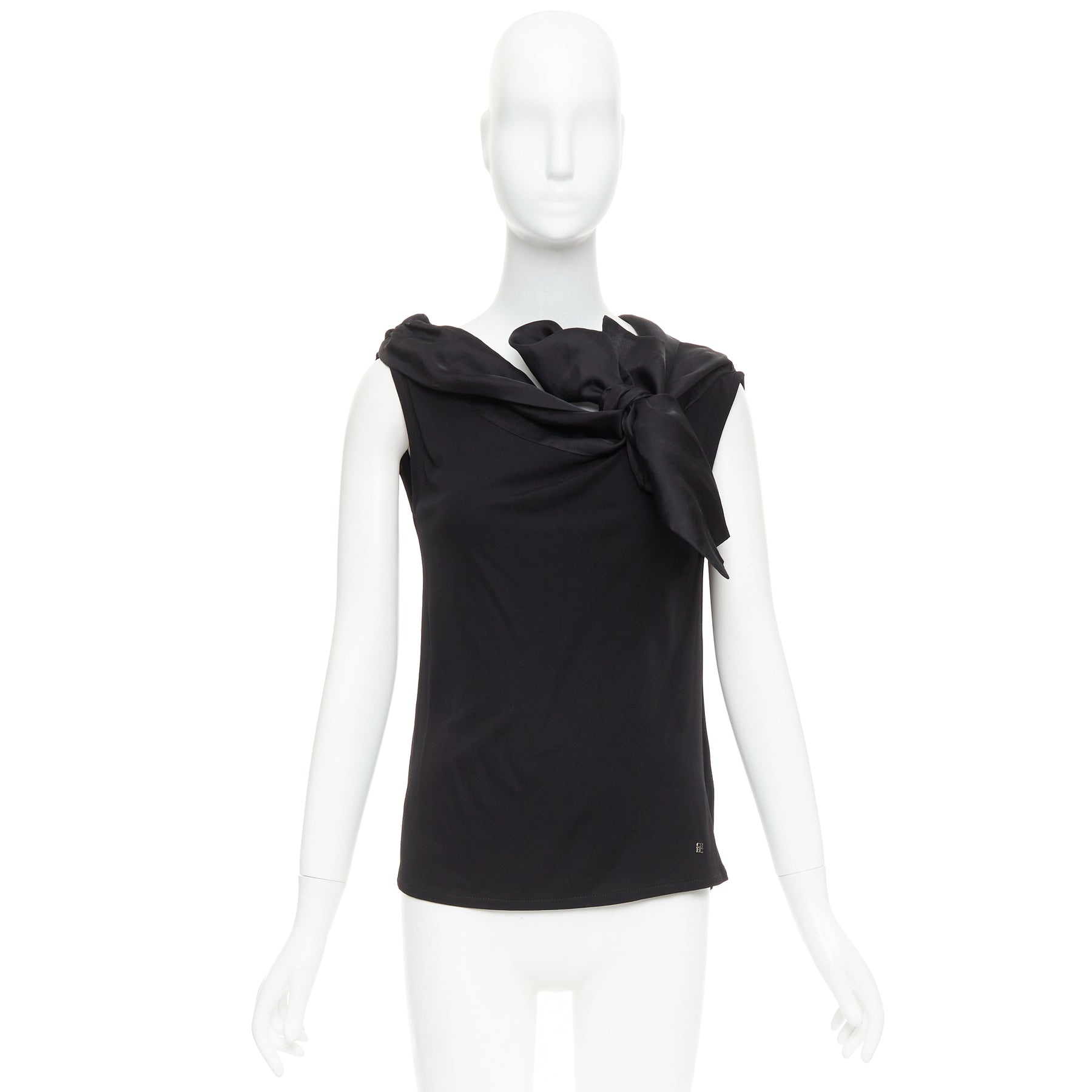 CAROLINA HERRERA black viscose silk bow asymmetric vest top S