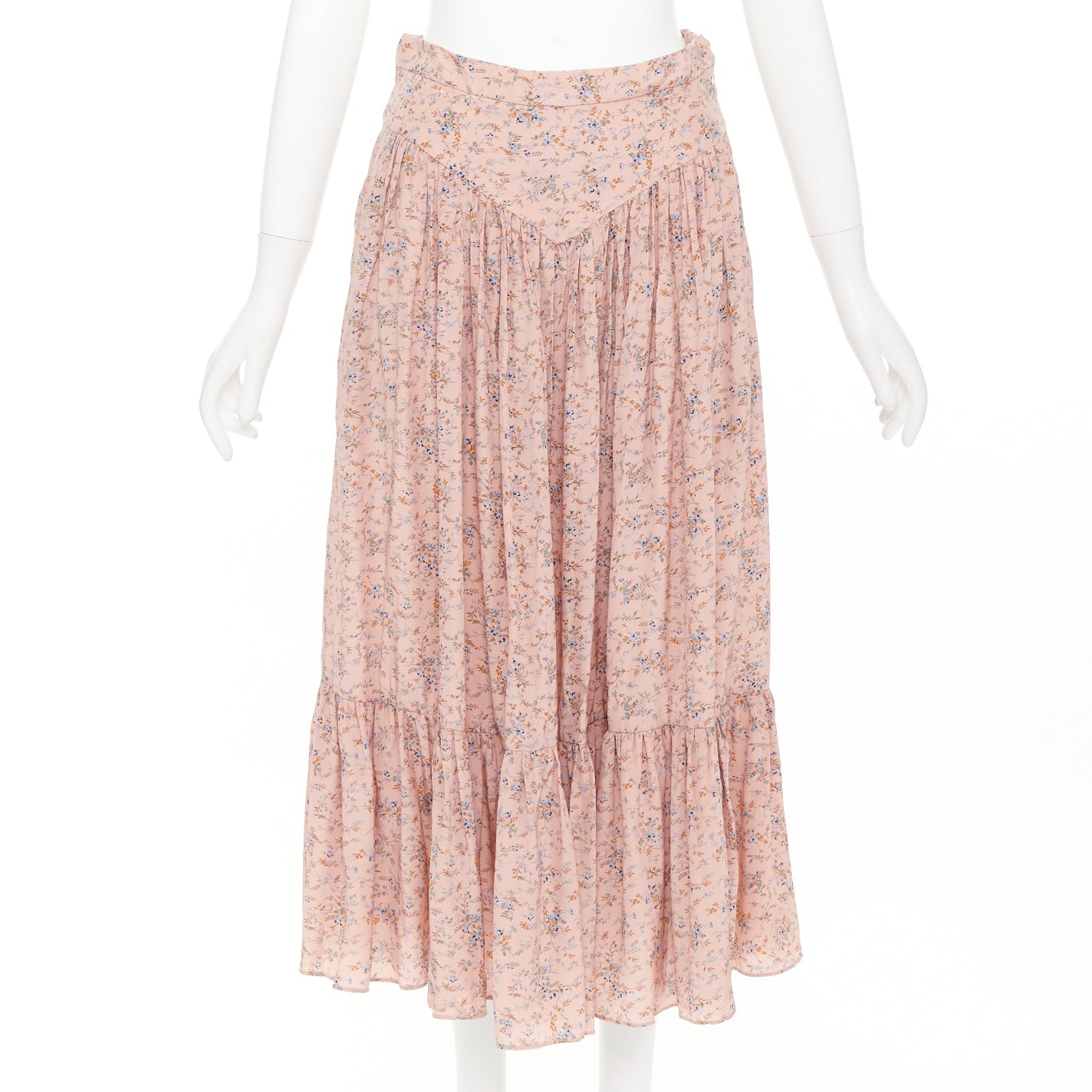 CELINE 100% silk pink blue prairie floral print midi skirt FR38 M