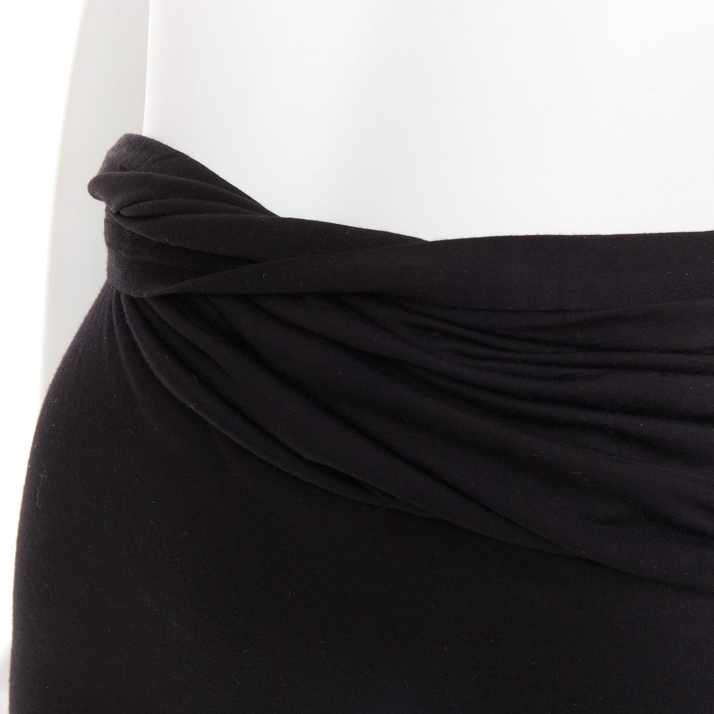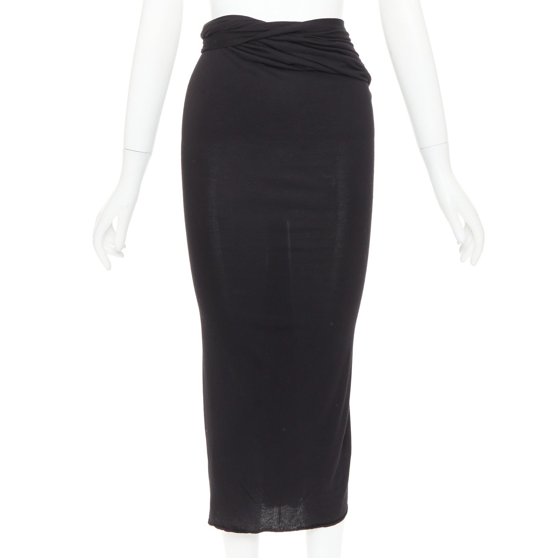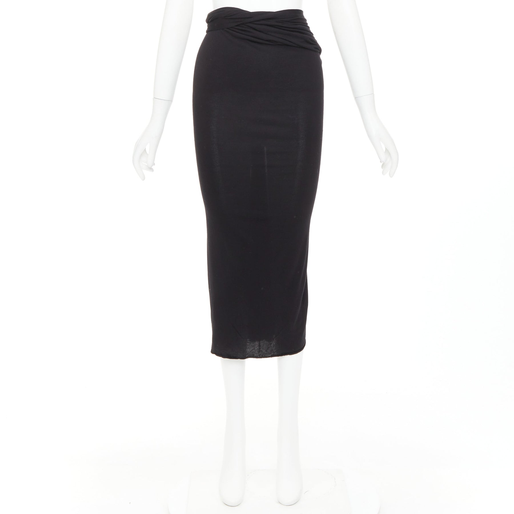 GIVENCHY black twist draped waist jersey high pencil midi skirt XS
