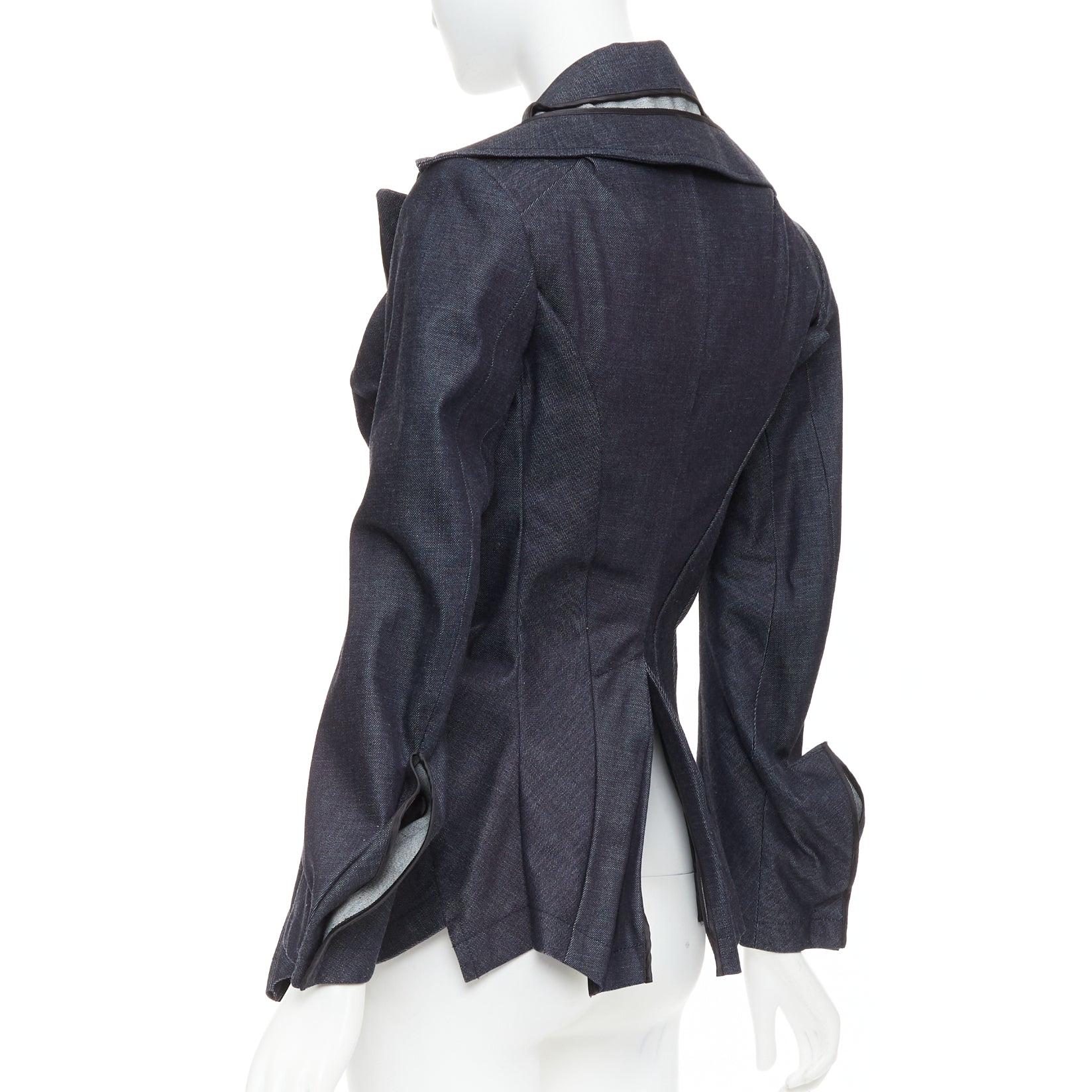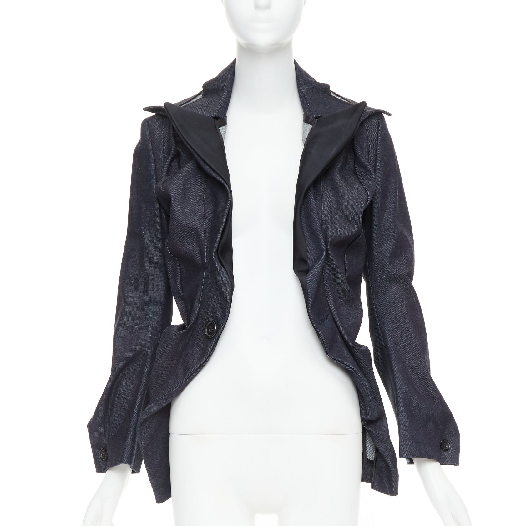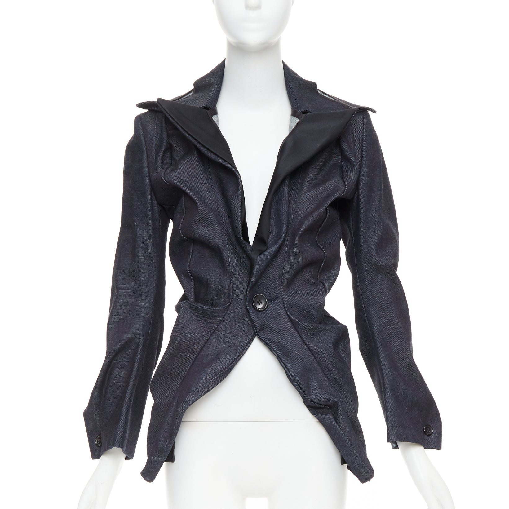 JUNYA WATANABE 2006 indigo blue denim scrunch gathered deconstructed blazer S