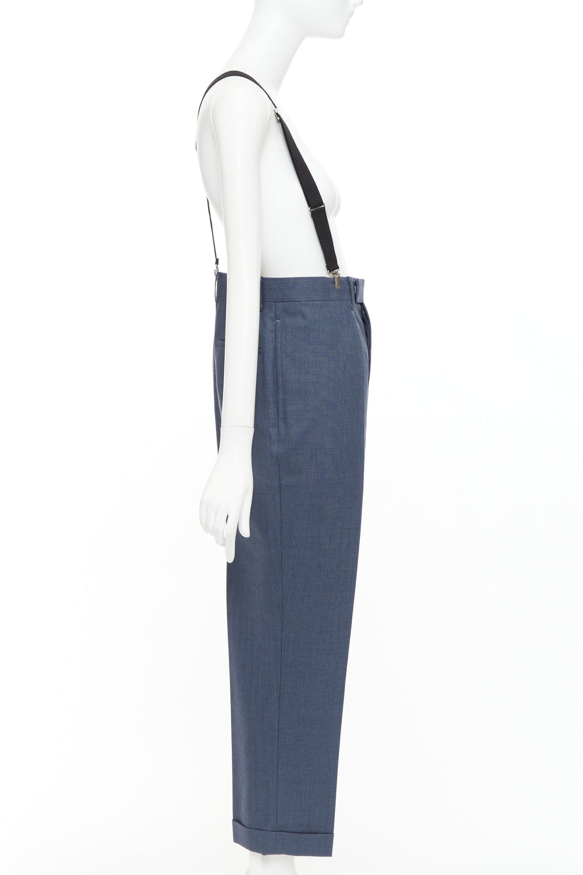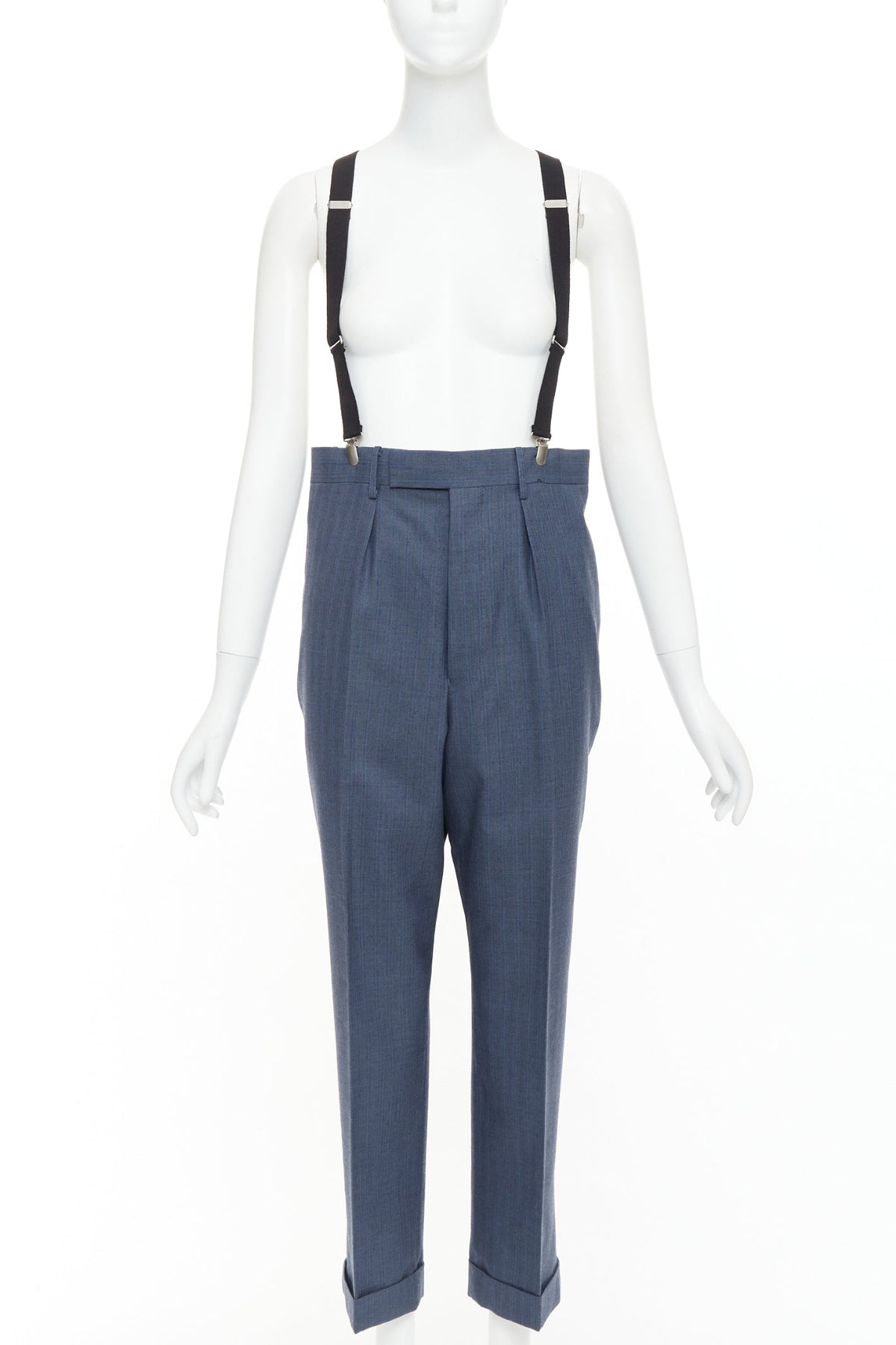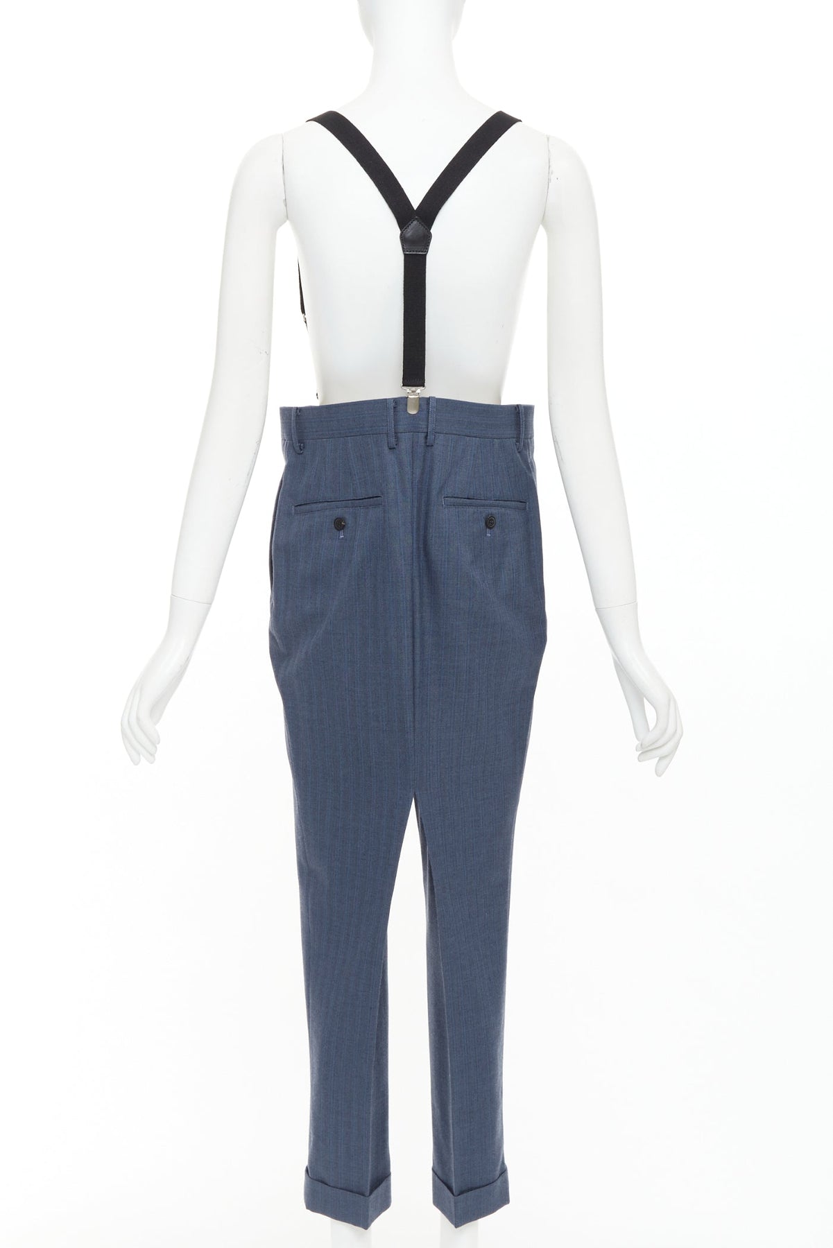 JUNYA WATANABE 2012 blue wool pinstripe black suspender high waisted harem pants M