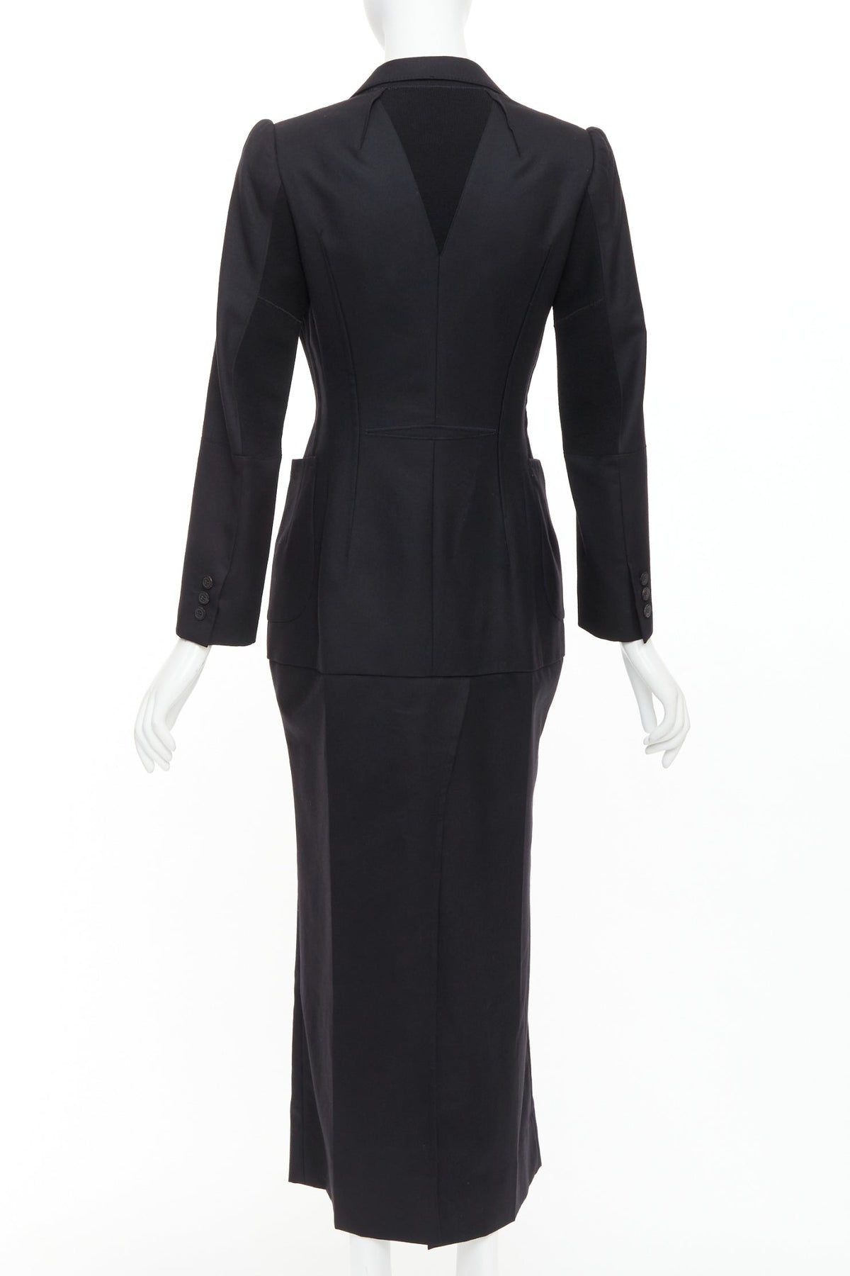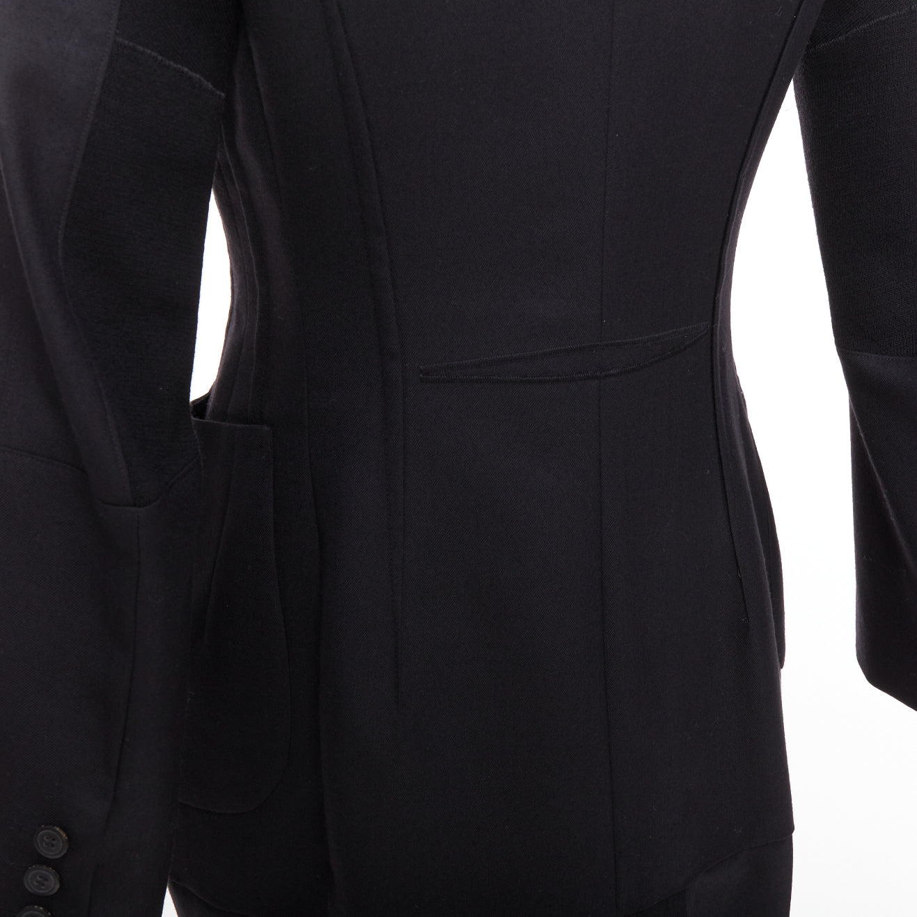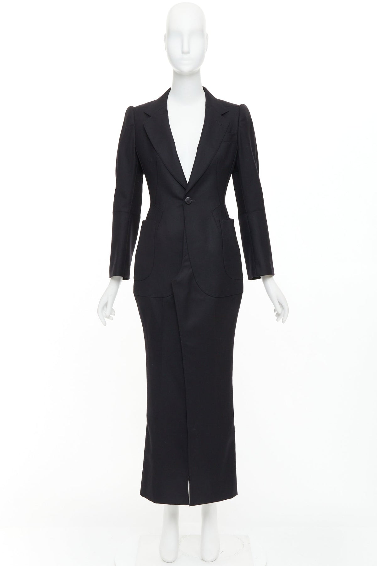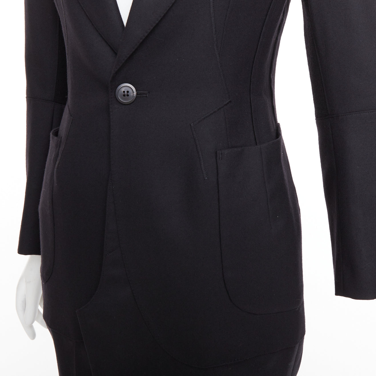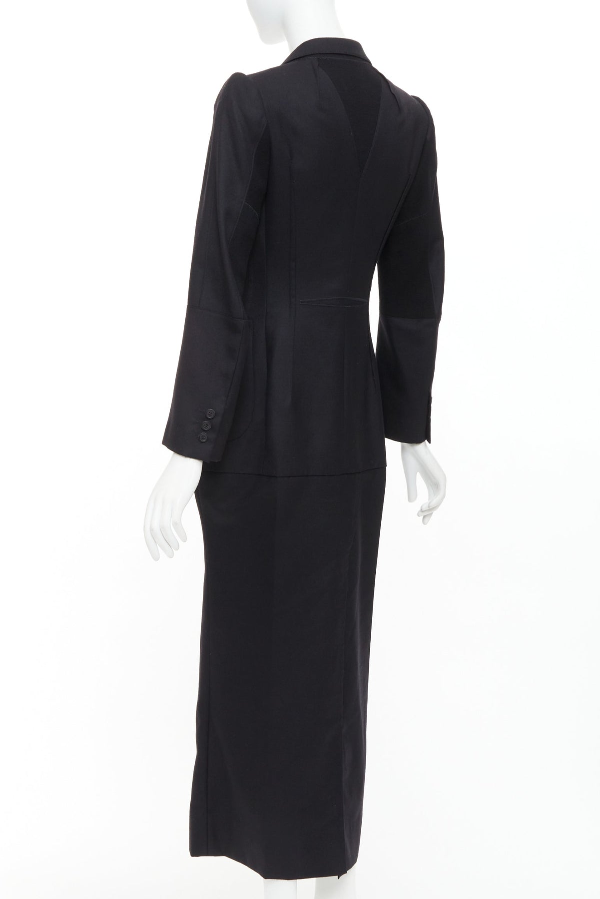 JUNYA WATANABE 2012 Runway black wool deconstruced panelled long fitted coat S
