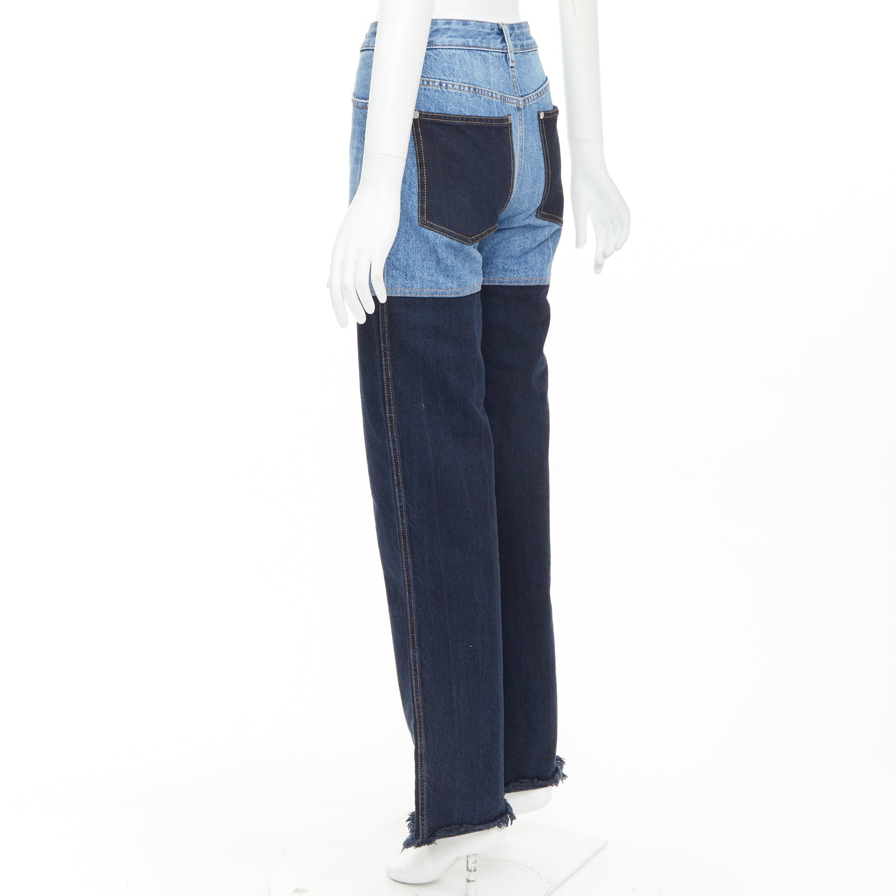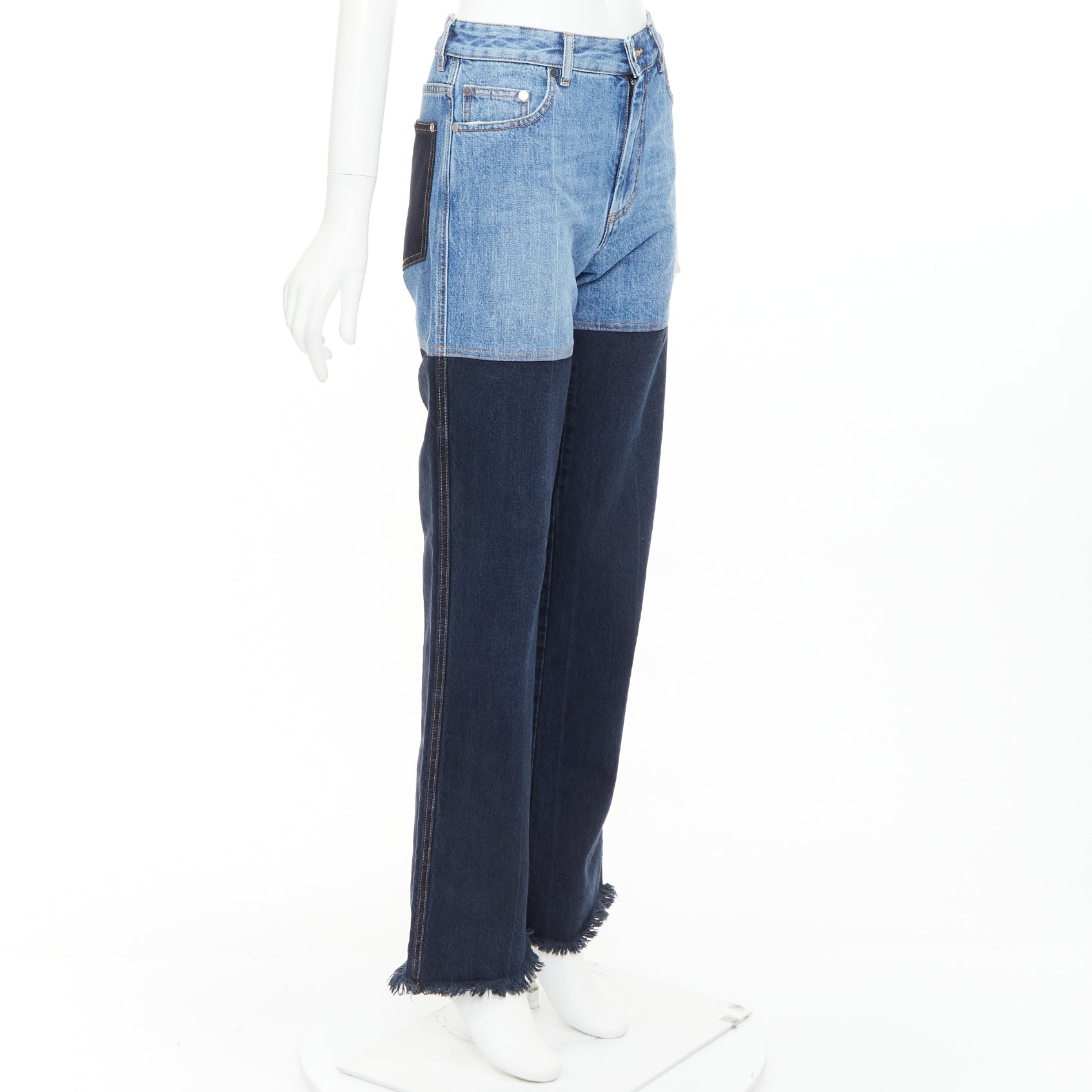 PETER DO 2021 two-tone blue denim high waist fray straight jeans FR36 S