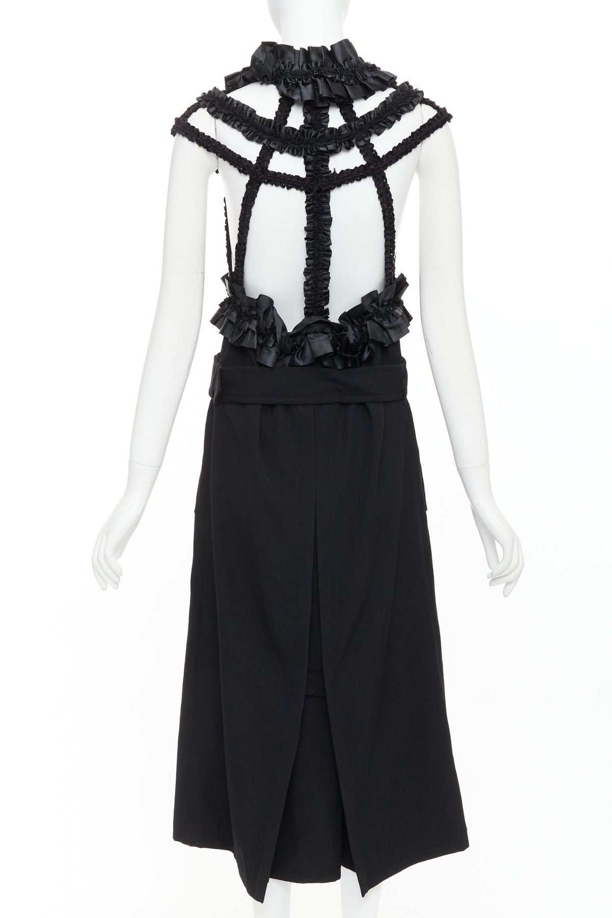 rare COMME DES GARCONS 2008 Runway Bad Taste black ruffle caged deconstructed trench dress M