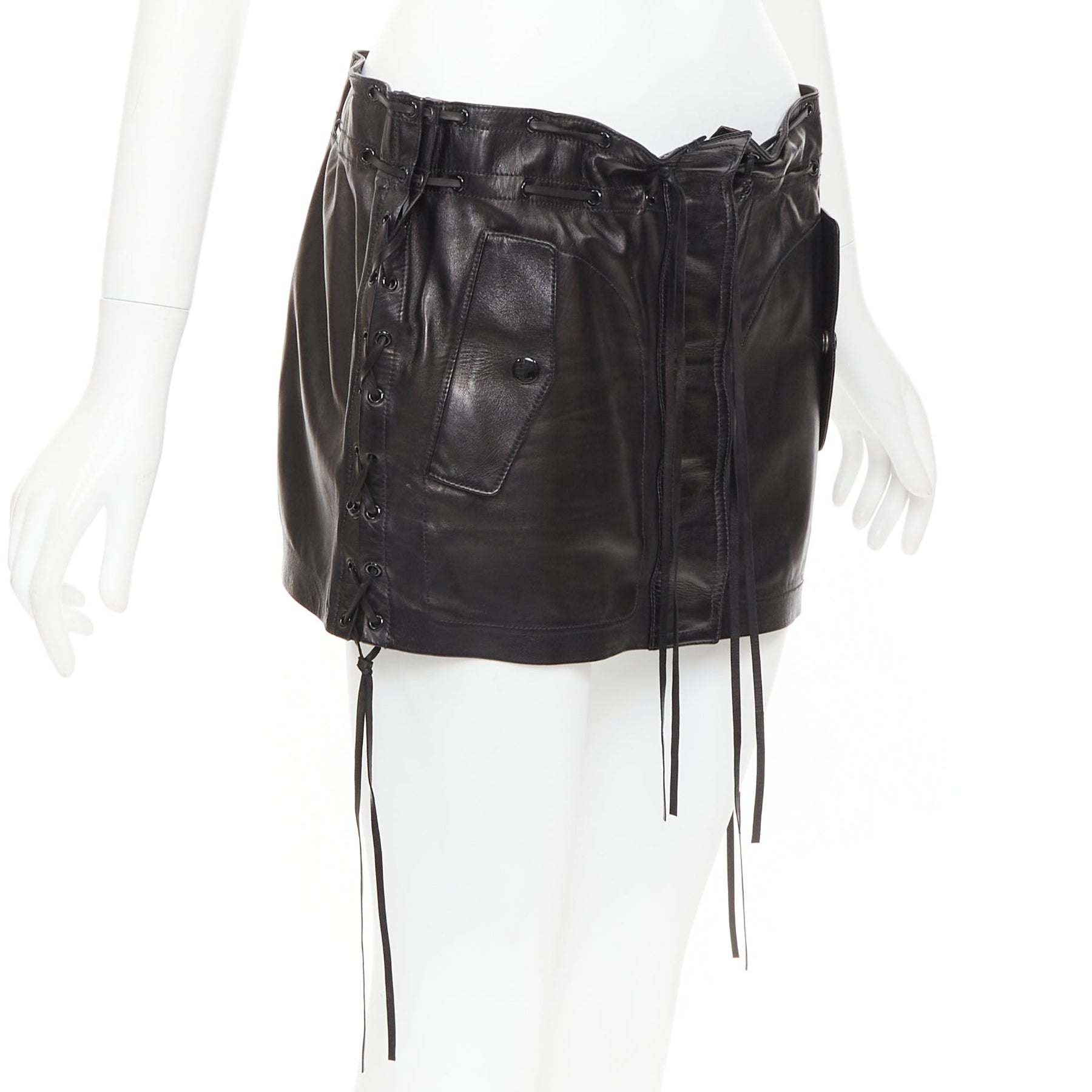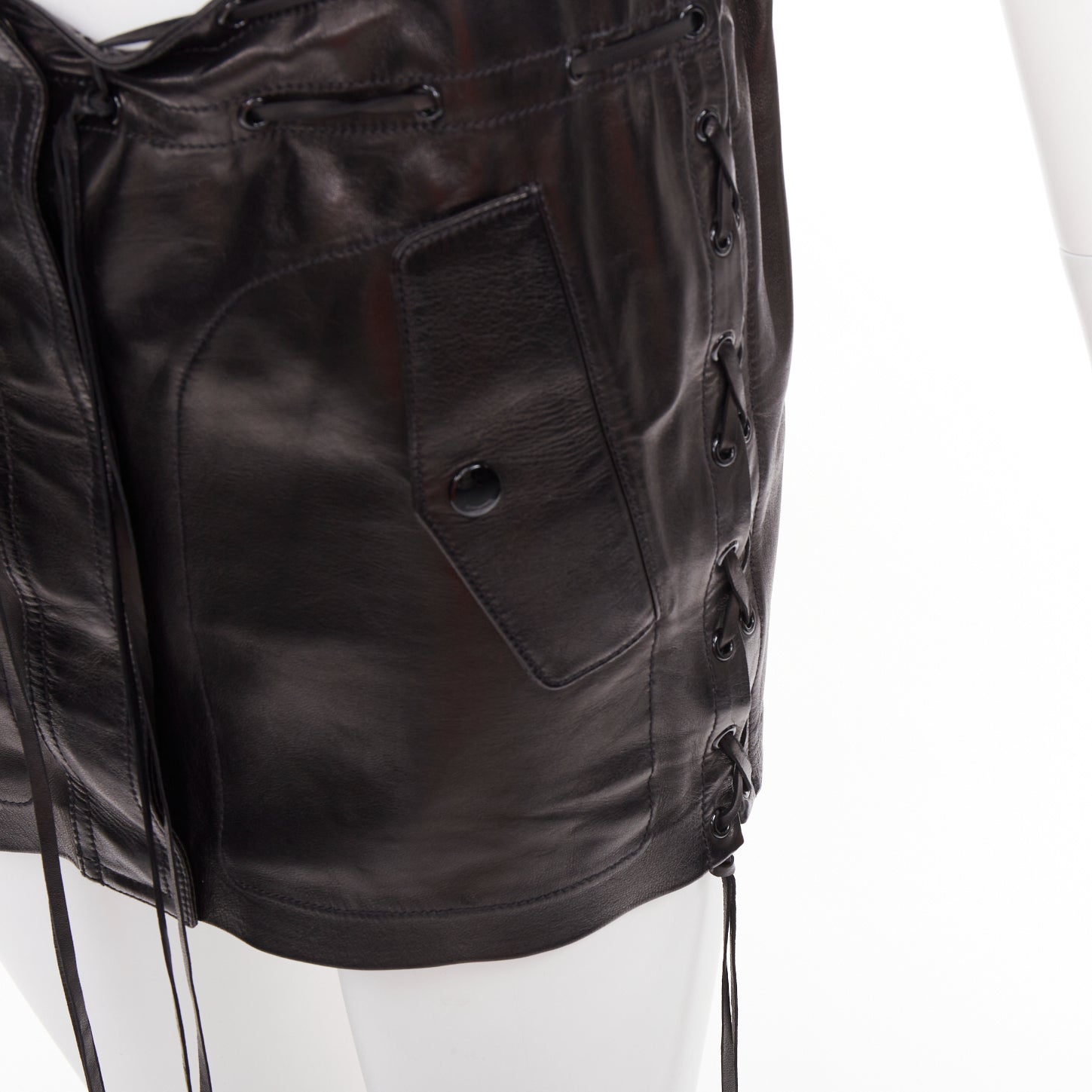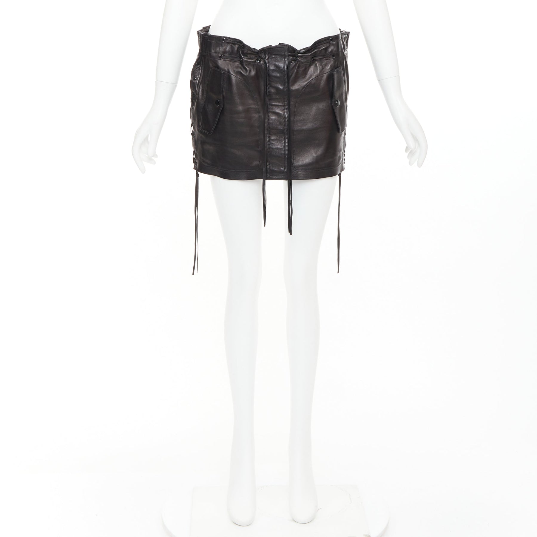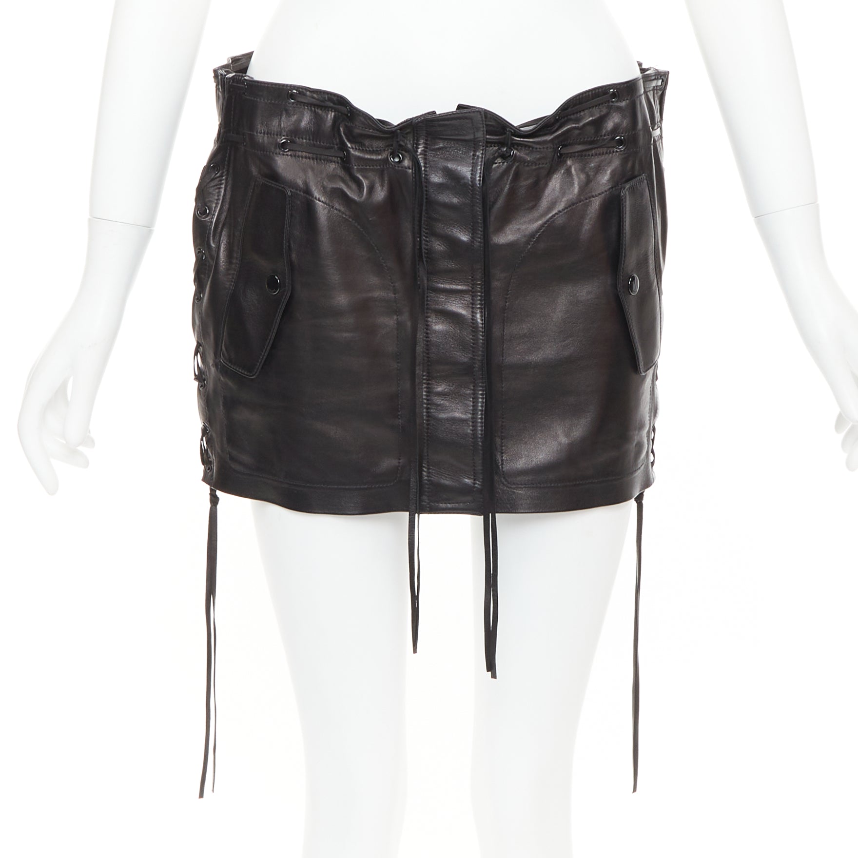 SAINT LAURENT 2018 black lambskin leather drawstring waist mini skirt FR36 S
