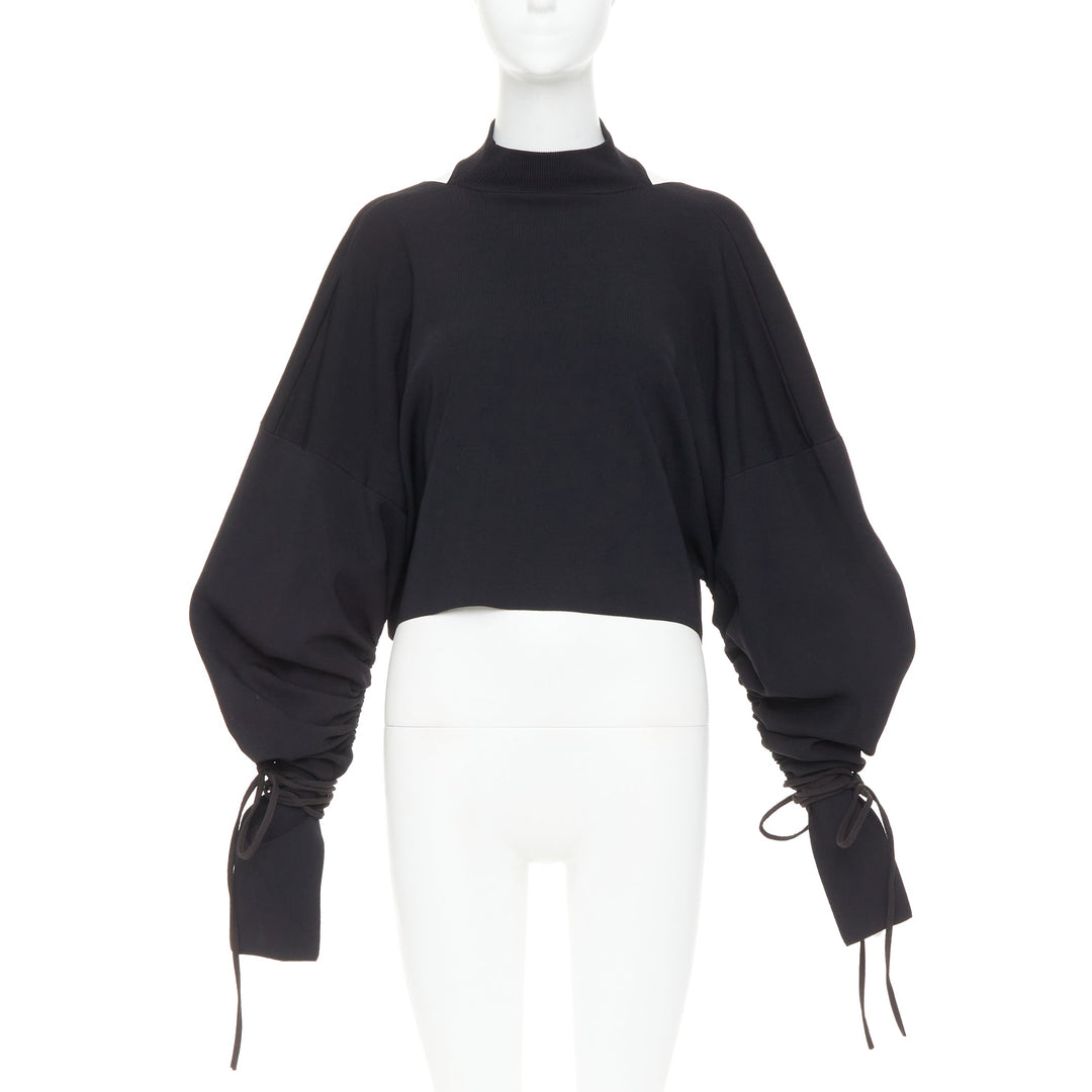 SOLACE LONDON Samara black viscose blend ruched sleeves cropped pullover UK8 S