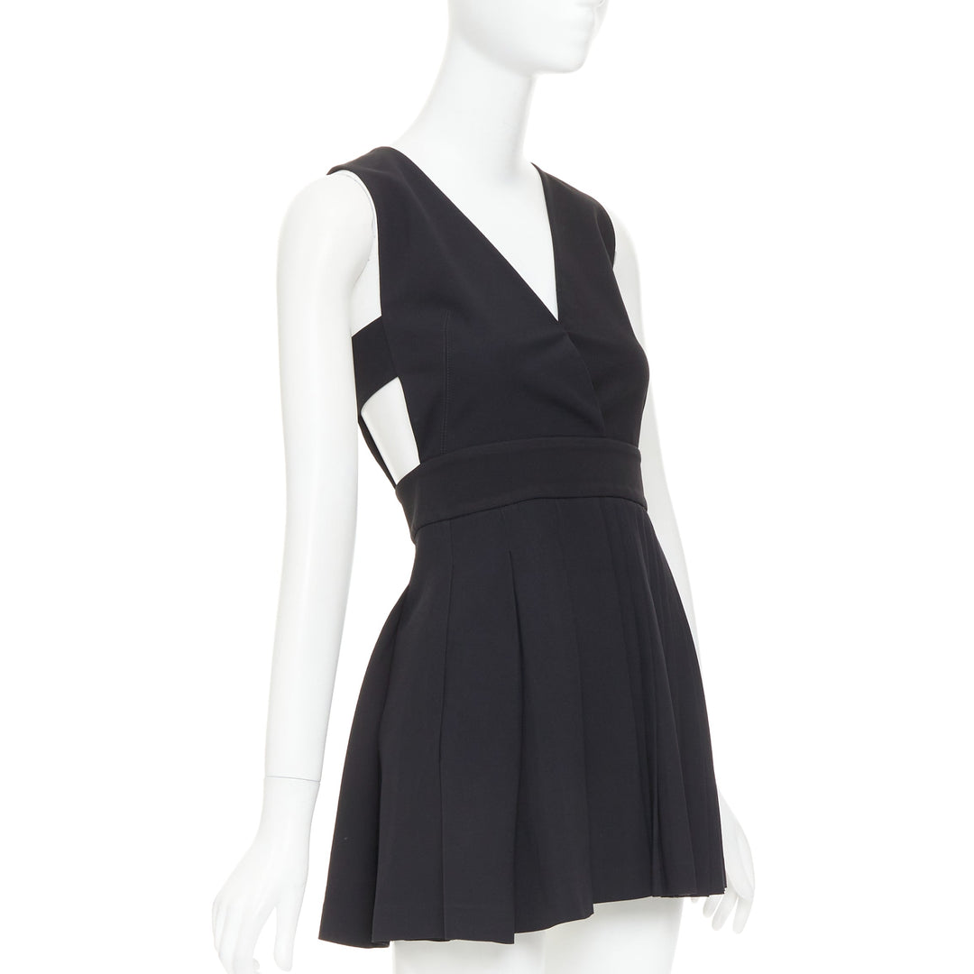 FAUSTO PUGLISI black crepe multi pleated cut out V neck mini dress IT38 XS