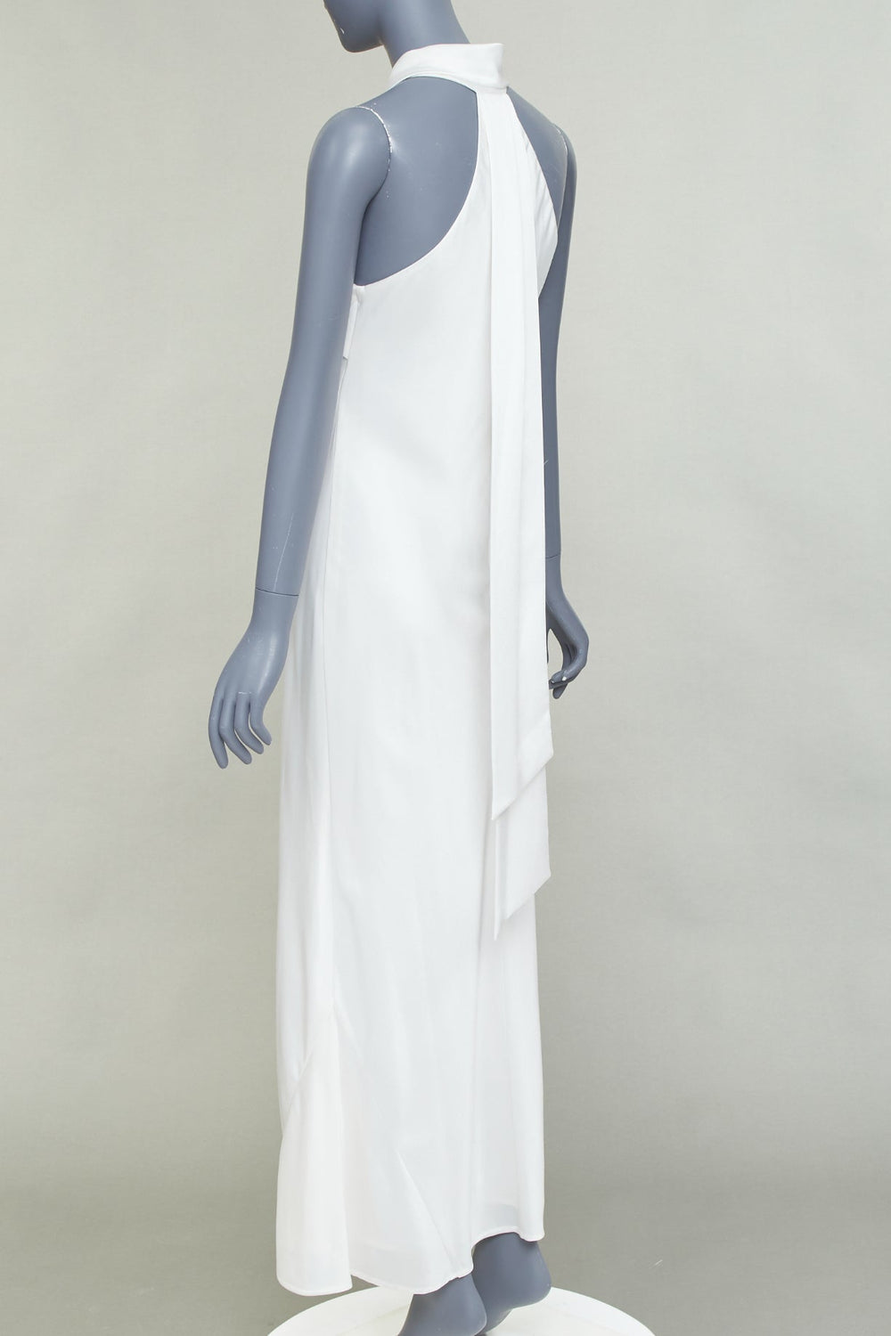 GALVAN Pandora Bridal ivory white satin halter neck drape sash midi dress FR38 S